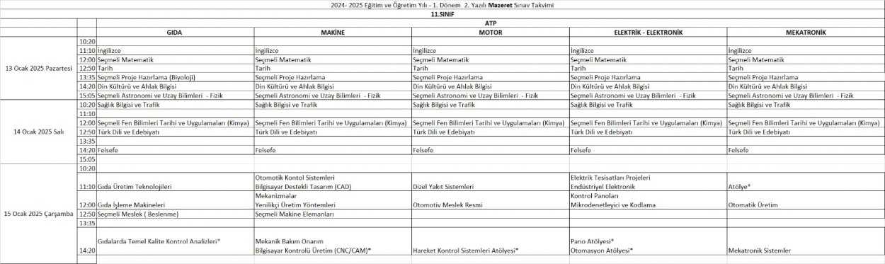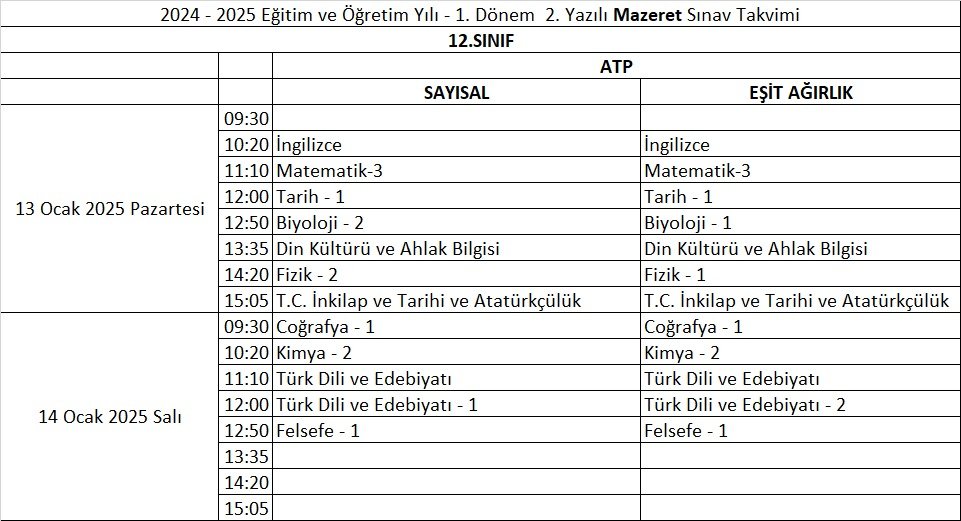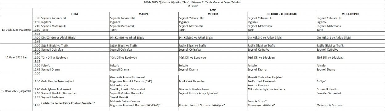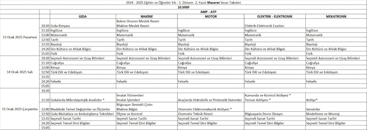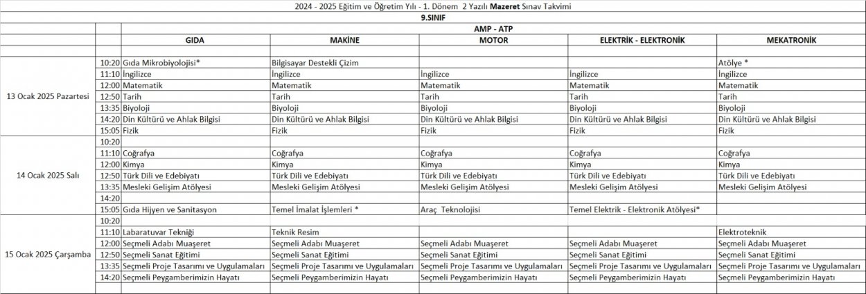 2024 - 2025 Eğitim ve Öğretim Yılı 1. Dönem 2. Mazeret Sınavı Takvimleri Yayınlandı