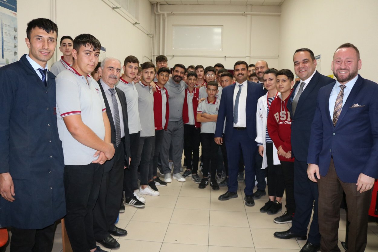 Öncelikle okulun Mekatronik atölyesini gezen sayın Malkoç atölyenin teknolojisi karşısında üniversitelerde bile olmayan bir atölye diyerek beğenisi gösterdi.