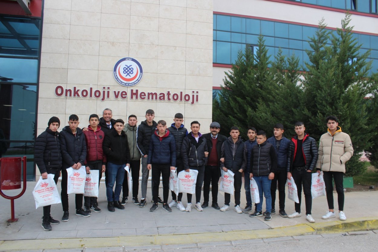 Rahmiye Sare Palalı Teknik Koleji 12. sınıf Motor Bölümü (12 AMP\M) sınıfında eğitim gören 17 öğrenci kendi harçlıklarından biriktirdikleri paralarla aldıkları hediyeleri, Afyonkarahisar Sağlık Bilimleri Üniversitesi (AFSÜ) Çocuk Hematolojisi ve Onkoloji Bölümü'nde tedavi gören çocuklara teslim etti.