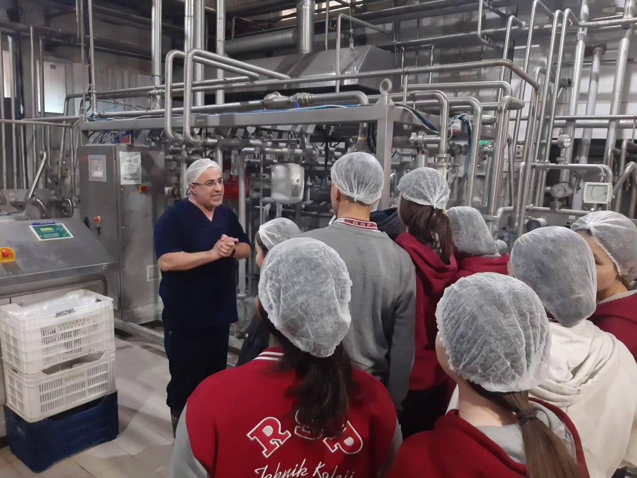 RSP Gıda teknolojisi bölümü 11. sınıf öğrencileri ilimiz İhsaniye ilçesinde faliyet gösteren Sütçüoğlu fabrikasına teknik gezi düzenledi. Gezi de lor peyniri, kaşar peyniri, mozarella peyniri, tereyağı ve yoğurt üretimi akışlarını gözlemleyen öğrencilerimiz ürünler hakkında ayrıntılı bilgiler edindi. Sütün işletmeye gelişi , yapılan kontrolleri ve sonrasındaki tüm aşamaları öğrencilerimize aktaran Gıda mühendisi Ersin KILIÇ bey 'e, işletmeye gezi yapmamızı sağlayan işletme sahibi İbrahim SÜTÇÜ bey'e ve tüm personellerine teşekkür ederiz.