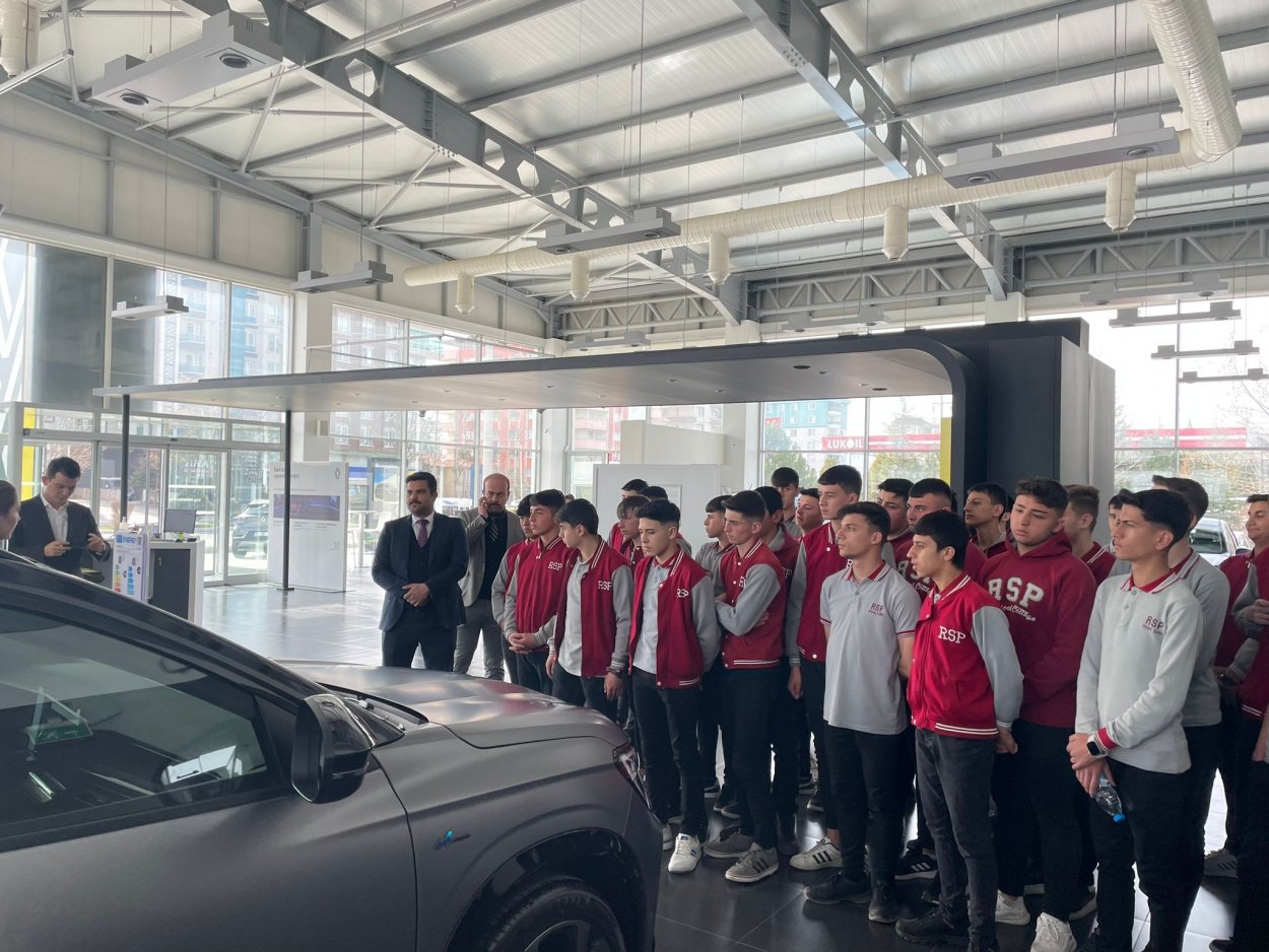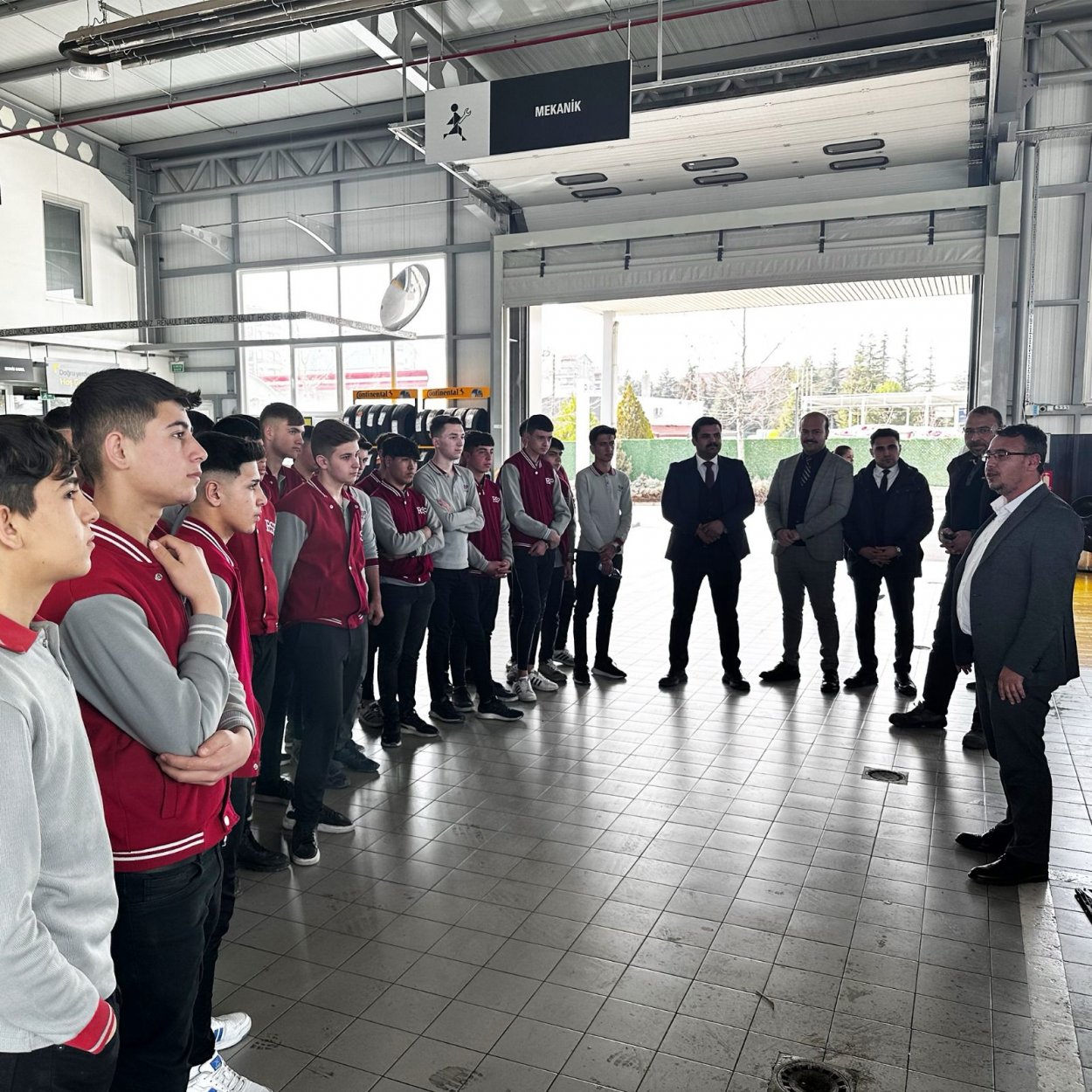 Özel AOSB Rahmiye Sare Palalı Koleji Motorlu Araçlar Teknolojisi Alanı 11. Sınıf öğrencileri teknik gezilerine devam ediyor… Öğrenciler Alan şefi İsmail Yasin KAŞKAR, Alan öğretmenleri Yılmaz BEYPAZAR ve Halil ÖZ eşliğinde DEMİRELLER bünyesinde bulunan yetkili servisleri ziyaret ettiler. Renault, Dacia otomobil grubu ve Massey Ferguson tarım araçları yetkili servislerine giden öğrencilerimizi Servis Müdürü Gökhan İN karşıladı. Servisin müşteri kabul kısmından başlayarak bir aracın nasıl kabul edildiğini Servis Danışmanı Ayşegül KUYTU uygulamalı bir şekilde anlattı. Merak edilen soruları cevaplayan servis yetkilileri öğrencileri mezun olduktan sonra bu sektörde çalışmaya teşvik etti. Mezun öğrencilerimizden Alper ŞİMŞEK isimli öğrencimiz staj uygulaması bittiği andan itibaren firmada çalışmaya başladığını sürecin nasıl ilerlediğini çalışma ortamının verimliliğini öğrencilerimizle paylaştı. Massey Ferguson tarım araçları atölye şefi Gökhan ÖZKAN traktör ve otomobiller üzerindeki farkları uygulamalı olarak öğrencilerimizle paylaştı. Öğrencilerimizin merak ettiği soruları cevaplayan Gökhan ÖZKAN eski ve yeni nesil yakıt sistemlerinide öğrencilerimize uygulamalı olarak gösterdi. Gezi boyunca bizleri en iyi şekilde ağırlayan başta DEMIRELLER firmasına yine bizlerle en iyi şekilde ilgilenen Servis Müdürü Gökhan İN’e ve tüm servis yetkililerine misafirperverliklerinden dolayı teşekkür ederiz.
