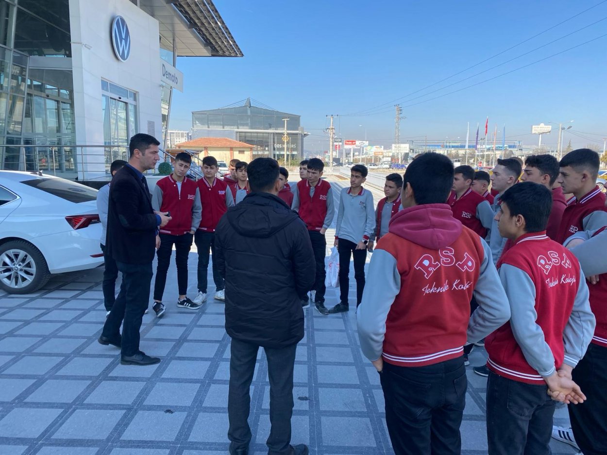 Daha sonra Volkswagen DEMOTO’ ya giden öğrencilerimizi Servis Müdürü Gökhan TELLİ karşıladı. Servisin müşteri kabul kısmından başlayarak bir aracın nasıl kabul edildiğini Servis Danışmanı Muhammed Ali DEMİREL uygulamalı bir şekilde anlattı. Merak edilen soruları cevaplayan servis yetkilileri öğrencileri mezun olduktan sonra bu sektörde çalışmaya teşvik etti. Kaporta-Boya atölye şefi Mevlüt ALTUNTAŞ Kaporta ve Boya atölyelerini tanıttı ve hasarlı bir aracın işlemlerinin sırasıyla nasıl yapıldığını anlattı. Geziden sonra öğrencilerimize öğle yemeği ikram eden Volkswagen DEMOTO şirketine ve bizleri en iyi şekilde ağırlayan Servis Müdürü Gökhan TELLİ’ ye misafirperverliklerinden dolayı teşekkür ederiz.