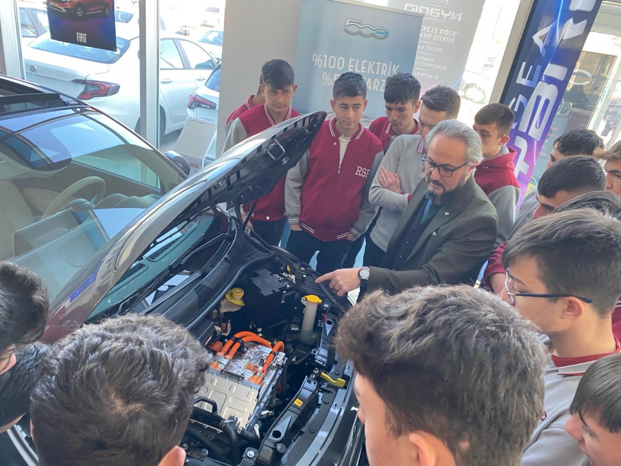 Özel AOSB Rahmiye Sare Palalı Koleji Motorlu Araçlar Teknolojisi Alanı 11. Sınıf öğrencileri Alan Şefi İsmail Yasin KAŞKAR, Alan öğretmenleri Yılmaz BEYPAZAR ve Halil ÖZ eşliğinde yetkili servisleri ziyaret ettiler. İlk olarak Fiat GÜRSES’ e giden öğrencilerimize Servis Müdürü Özgür KIZILBUĞA servisin tüm alanlarının tanıtımını yaptı. Fiat’ın yeni çıkardığı elektrikli aracı bayide inceleme fırsatı bulan öğrenciler elektrikli araçların gelecekte önemli bir yere sahip olacağını yerinde öğrendi. Okulumuz öğrencileri ile ilgilenen başta Servis Müdürü Özgür KIZILBUĞA olmak üzere tüm servis yetkililerine teşekkür ederiz.