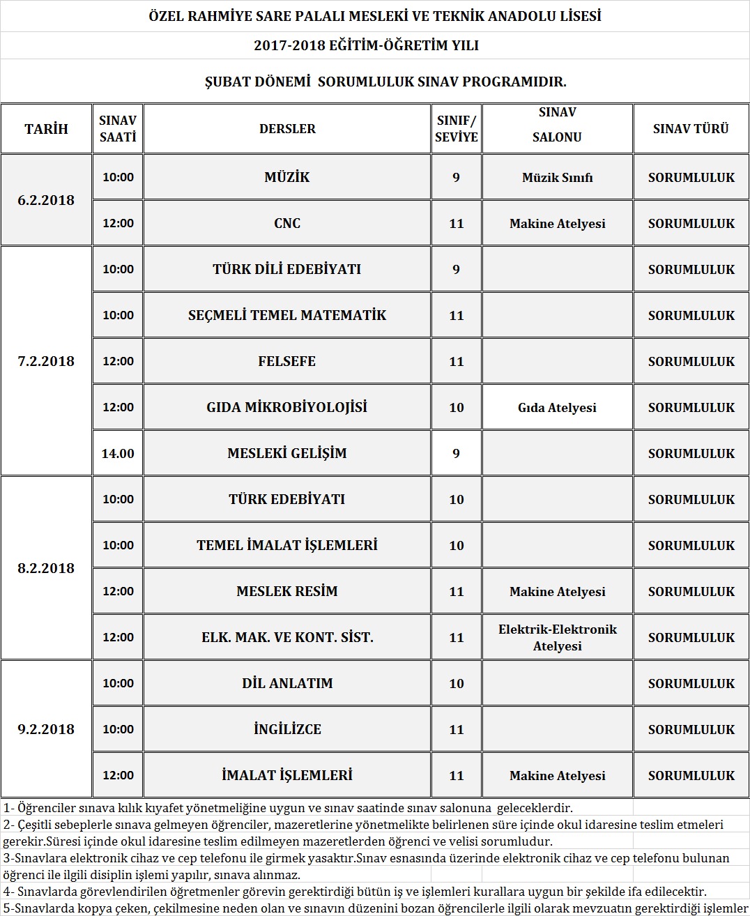 *YENİ* 2017 – 2018 Yılı 2. Dönem Şubat Ayı Sorumluluk Sınav Tarihleri Açıklandı