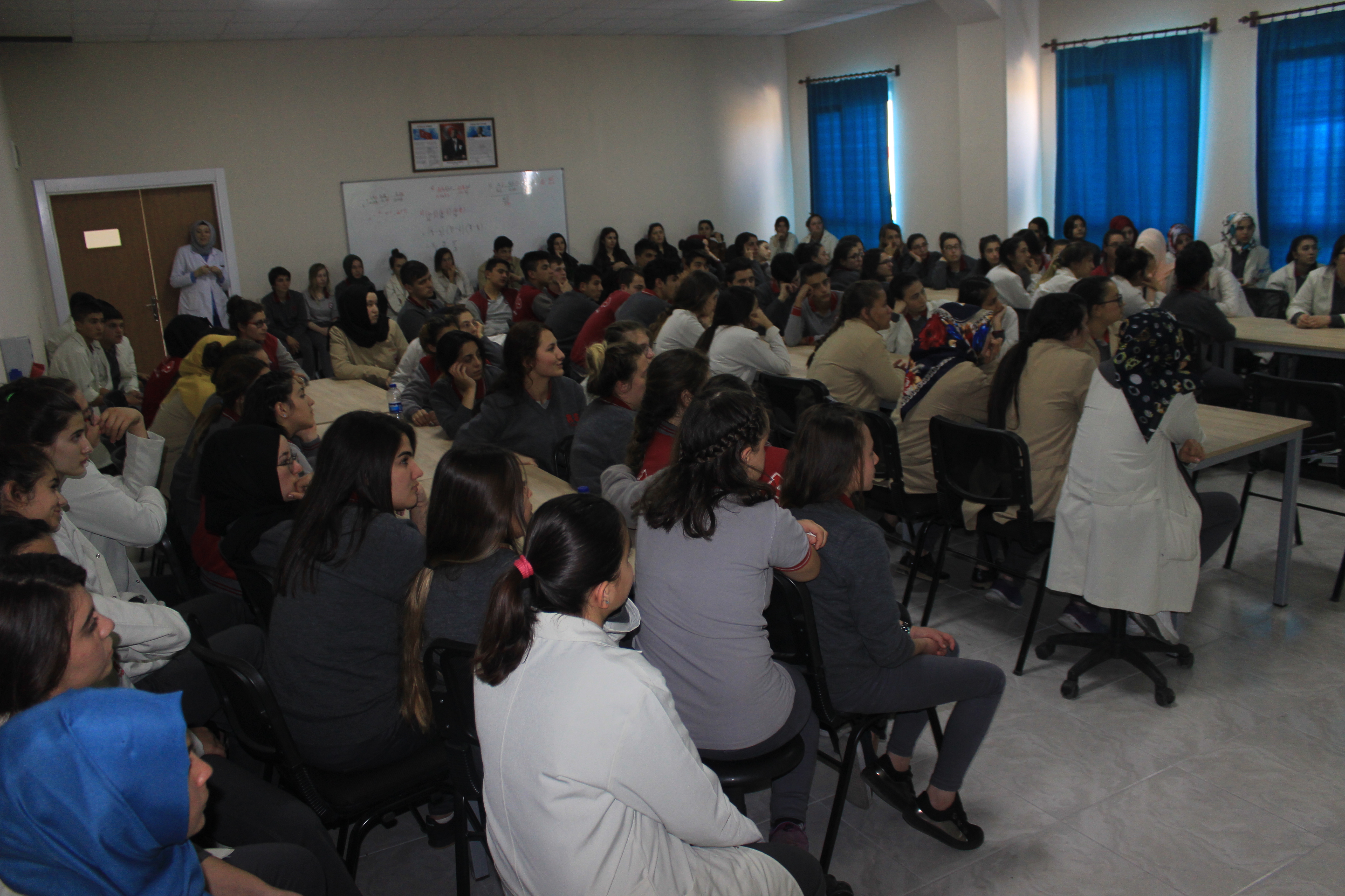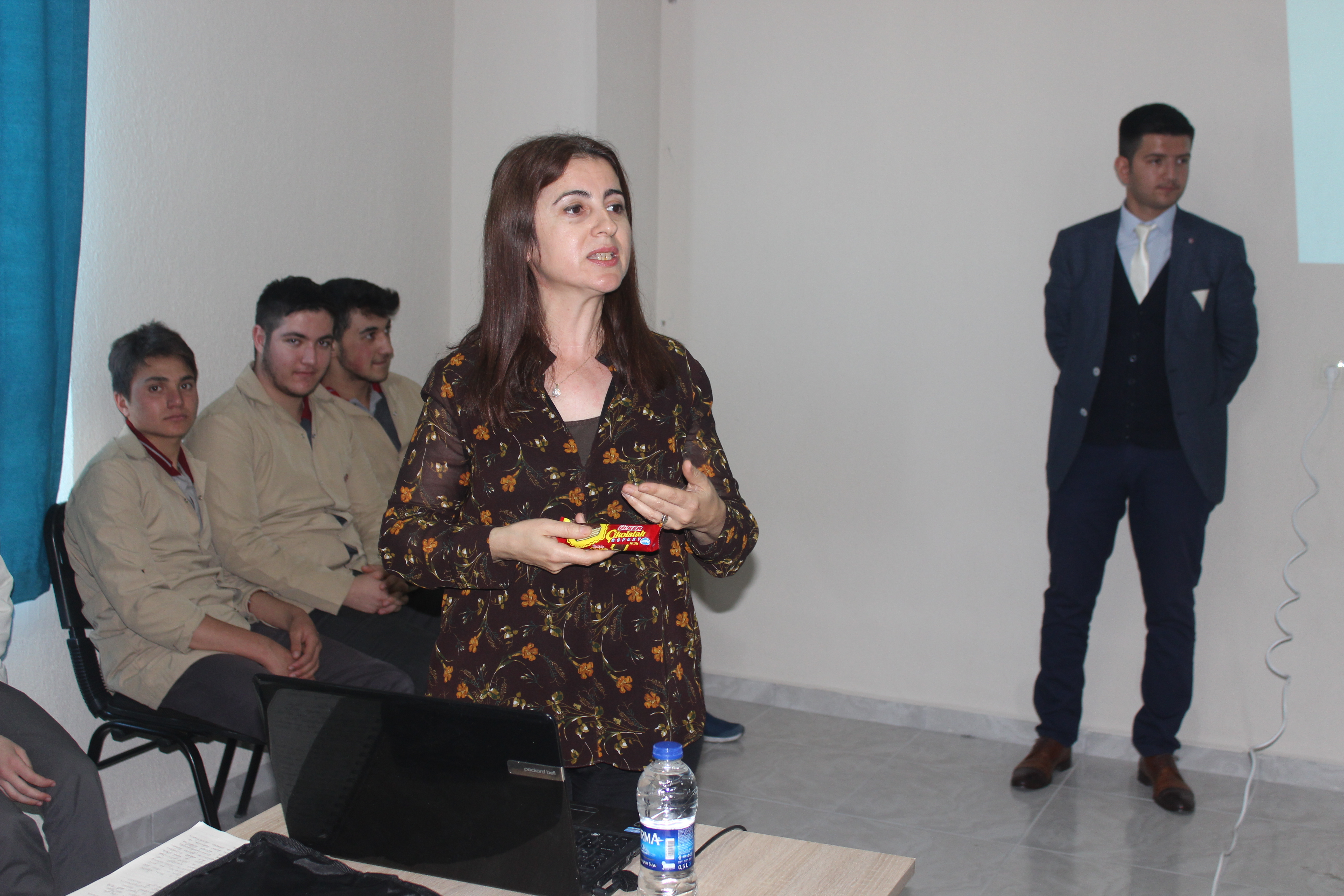 Birleşmiş Milletler’e bağlı Gıda Tarım örgütü (FAO) tarafından her yıl 16 ekim bir tema belirlenerek kutlanmaktadır. Bu yıl ki konusu ‘ Göçün geleceğini değiştirin.Gıda Güvenliği ve kırsal kalkınmaya yatırım yapın’ temasıyla bizde okulumuz Gıda Teknolojisi Alanı olarak öğrencilerimize bu konuyla ilgili program düzenledik. Düzenlenen bu programa Afyonkarahisar İl Gıda Tarım ve Hayvancılık Müdürlüğü Gıda Yem Şubesi Müdürü Elif TOPALOĞLU ve Gıda Denetimcileri Güldüray KOCAMAN, Güler ÖNERAL katılım gerçekleştirdi. Programımızda konuşma yapan Elif TOPALOĞLU bu yıl ki belirlenen temanın öneminden, Güvenli Gıda konularından bahsederek öğrencilerimizin sorularını cevapladı.