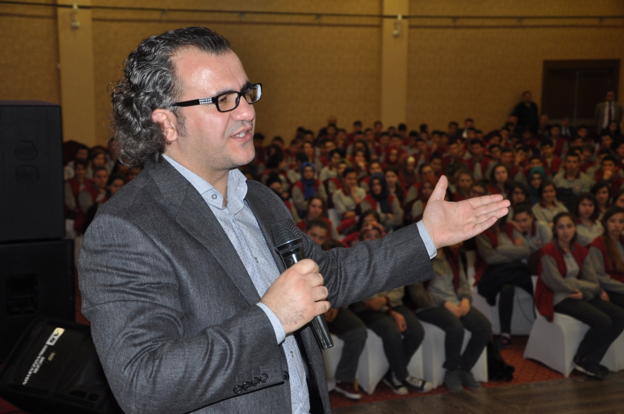 Eğlenceli esprileriyle, öğrencilere ders çalışma metotlarını anlatan Aslanhan Öğrencilere okulda gördükleri dersleri muhakkak evde tekrar etmeleri gerektiğini söyledi. Aile içi iletişimin çocukların hayatlarında büyük önem taşıdığını anımsatan Aslanhan, “Anne ve babanın çocukla iletişime geçmesi onun sorunlarını dinleyerek sohbet etmesi büyük önem taşımaktadır. Çocuk evdeyken anne ve babasıyla sohbet edemeyince sorunlarını anlatamayınca çareyi internete girmekte sanal arkadaşlar edinmekte buluyor. Bu da gençlerimiz için tehlikeli bir hale geliyor” ifadelerini kullandı.