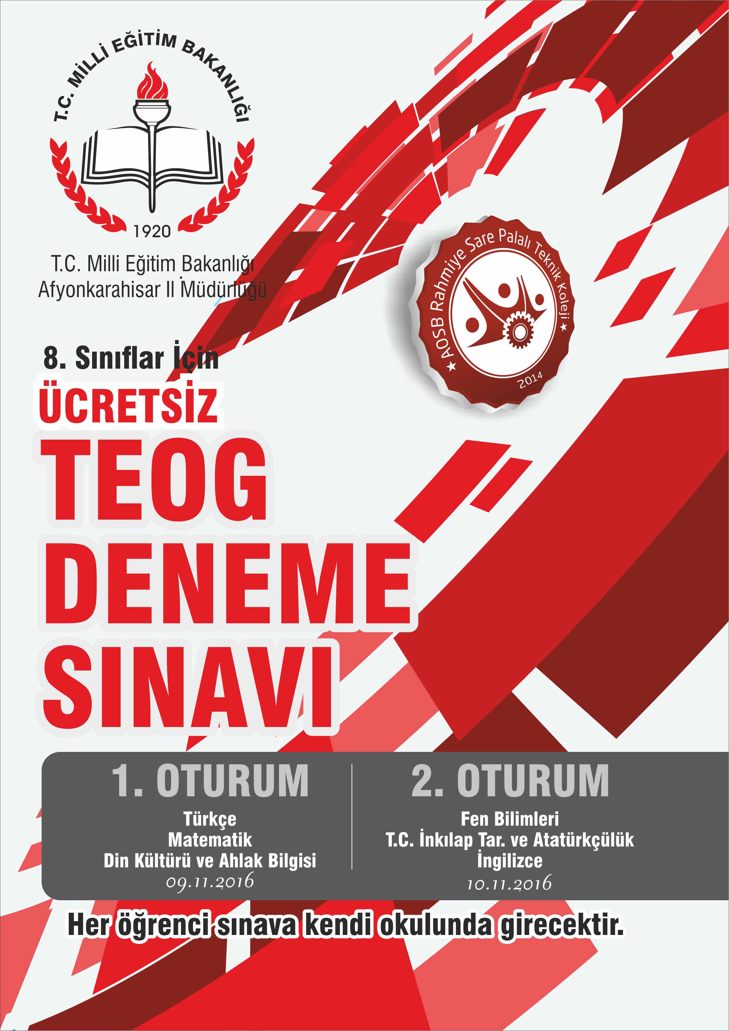 Afyon Genelinde İl Milli Eğitim Müdürlüğü ile ortaklaşa yapılan ve 9-10 Kasım tarihlerinde tüm 8.sınıf öğrencilerine uygulanacak TEOG Deneme Sınavı Cevap anahtarı yayınlanmıştır.