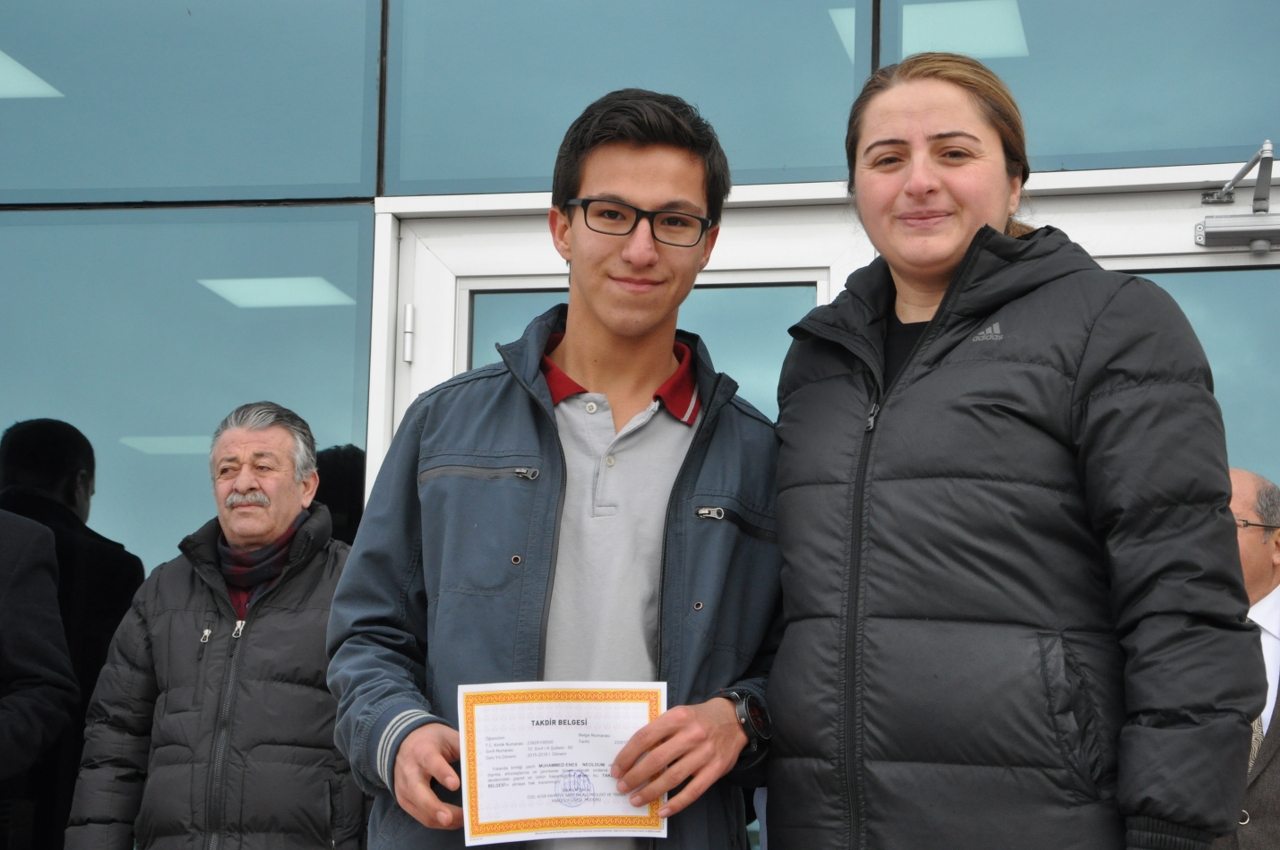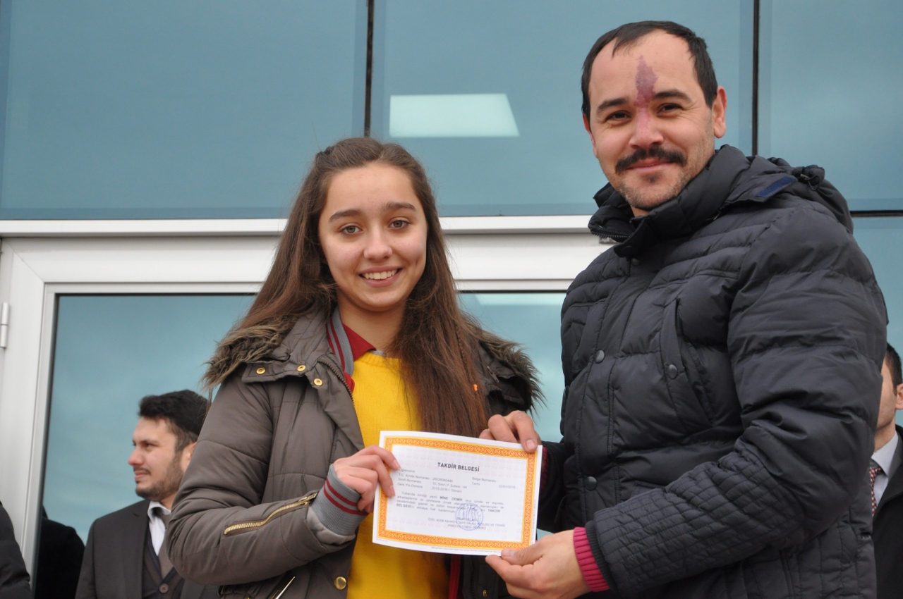 OSB Rahmiye & Sare Palalı Teknik Koleji’nde düzenlenen karne töreninde konuşan Okul Müdürü İbrahim Çakal, yorucu ama bir o kadar da keyifli bir 4 ayı geride bıraktıklarını, bu süre zarfında öğrencilerin okula adaptasyonu ve derslerindeki başarılarının kendilerini mutlu ettiğini söyledi. Öğrencilere ‘Peygamber Efendimizin Hayatı’ adlı bir de kitap dağıttıklarını belirten Okul Müdürü İbrahim Çakal; “Sizlere dağıttığımız kitabı okuyun çünkü ikinci dönemde bu kitaptan sınav olacaksınız. Sınavda en başarılı olan 3 sponsor bulabilirsek 5 öğrencimizi umreye götüreceğiz. Bu sınav aynı zamanda Din Kültürü ve Ahlak Bilgisi Dersi’nde de sizin için ders notu niteliği taşıyacak” dedi.