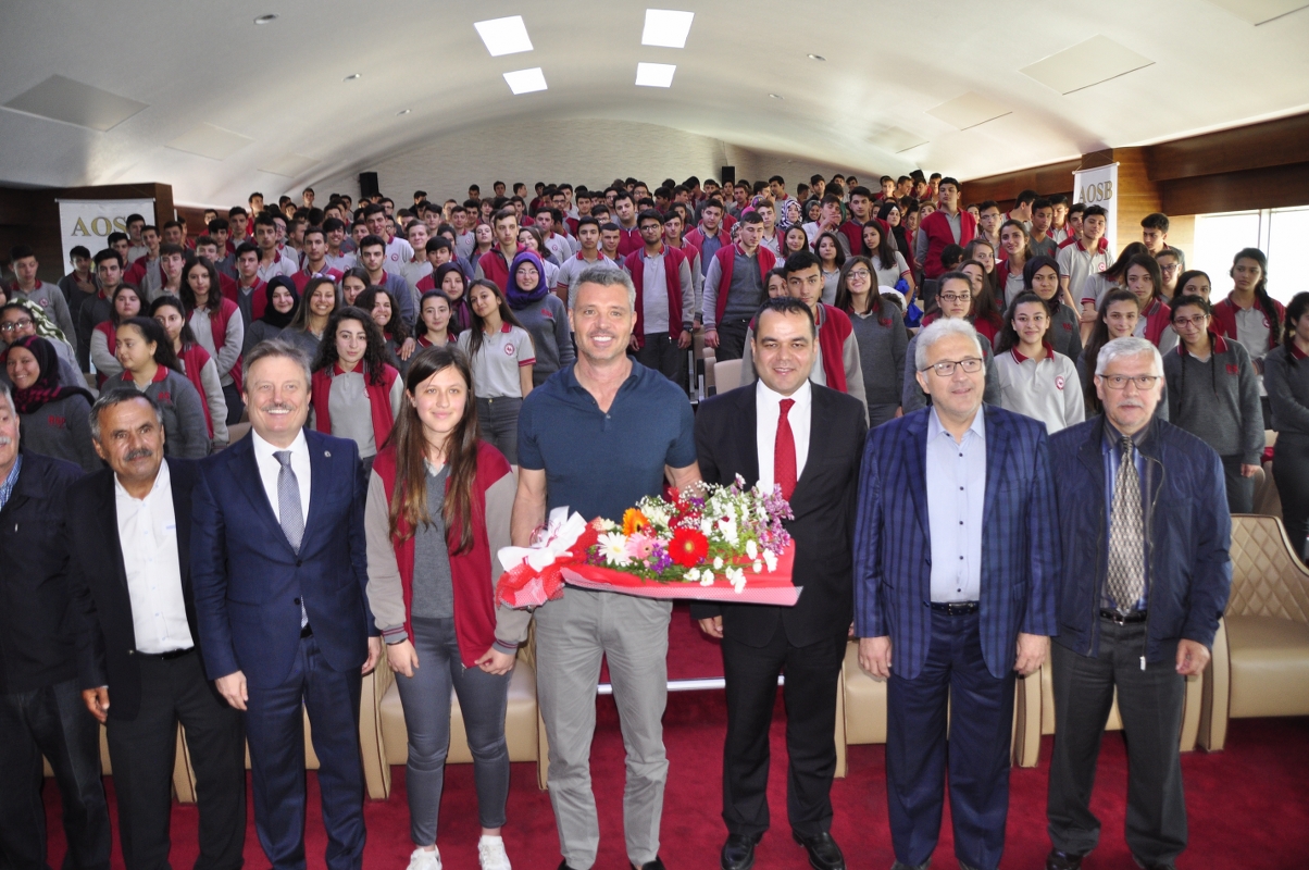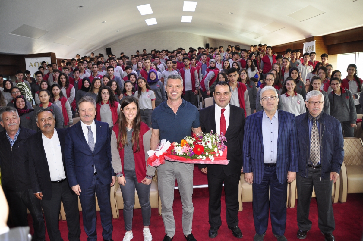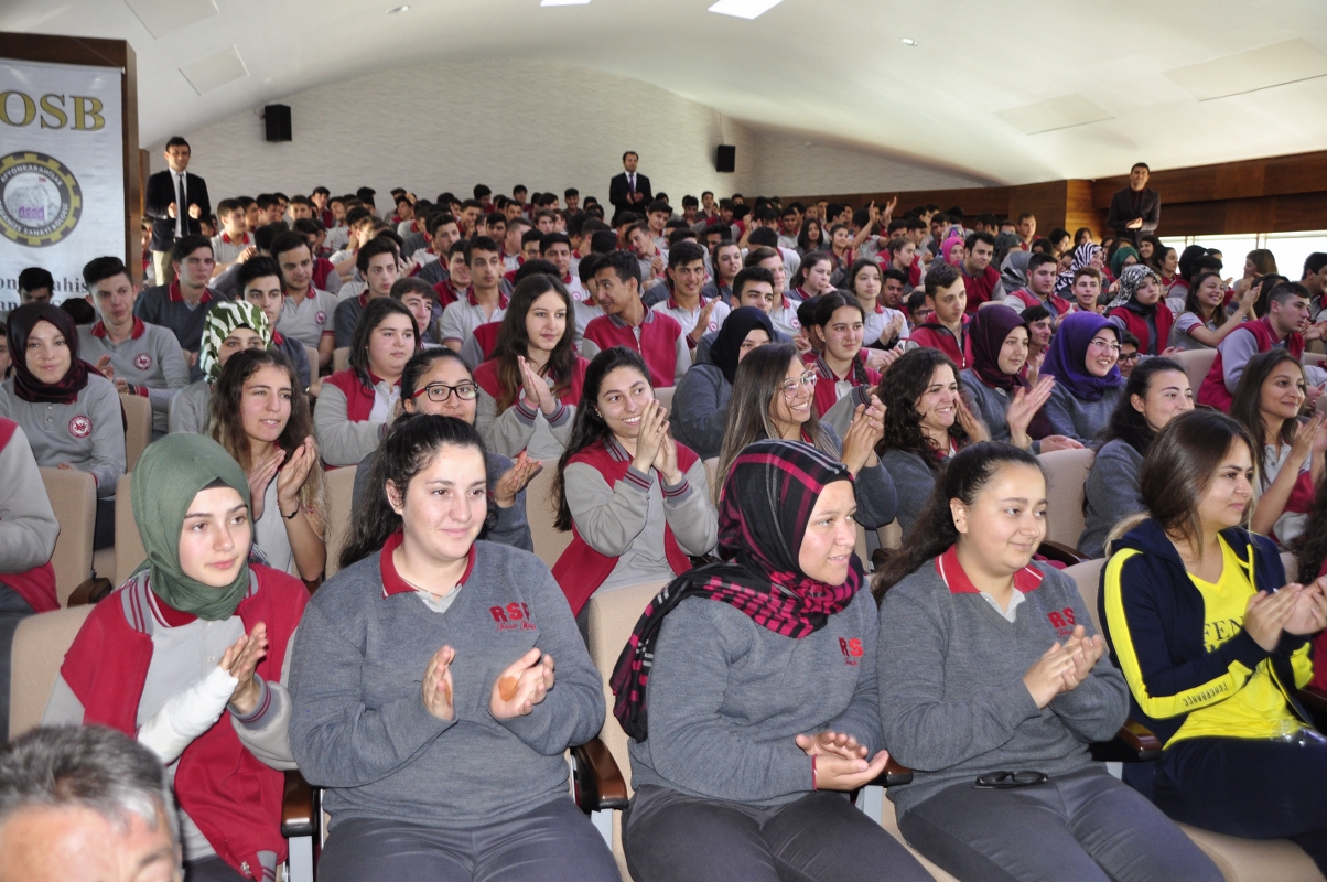 OSB konferans salonunda gerçekleştirilen etkinlikte başarı hikayesini anlatan Saran, lise öğrencilerine tavsiyelerde bulundu.