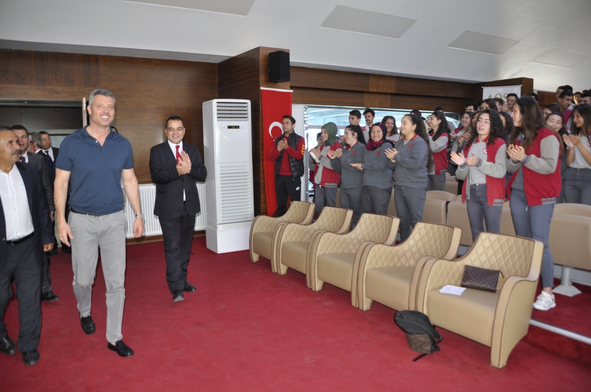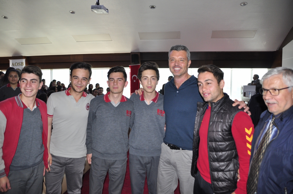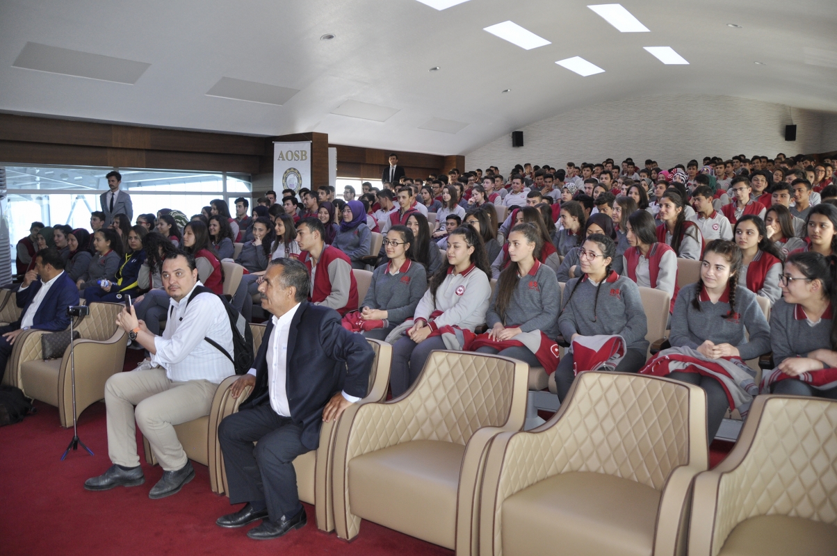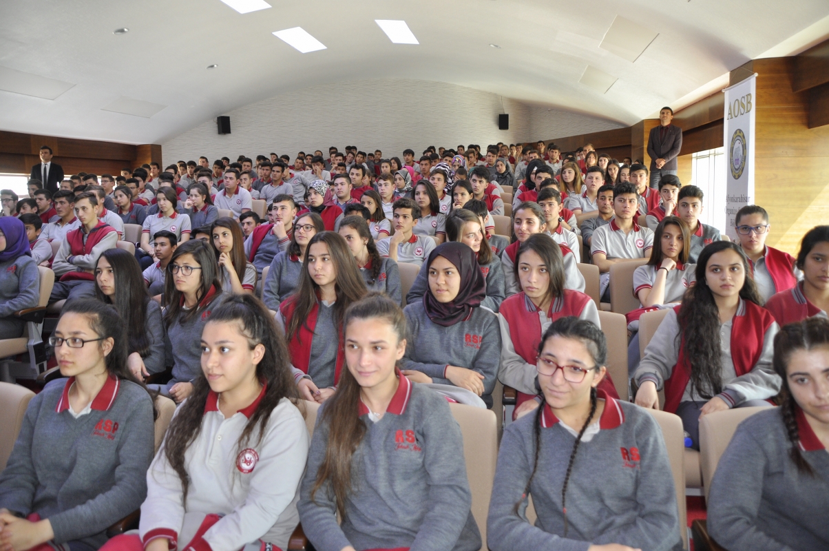 OSB konferans salonunda gerçekleştirilen etkinlikte başarı hikayesini anlatan Saran, lise öğrencilerine tavsiyelerde bulundu.