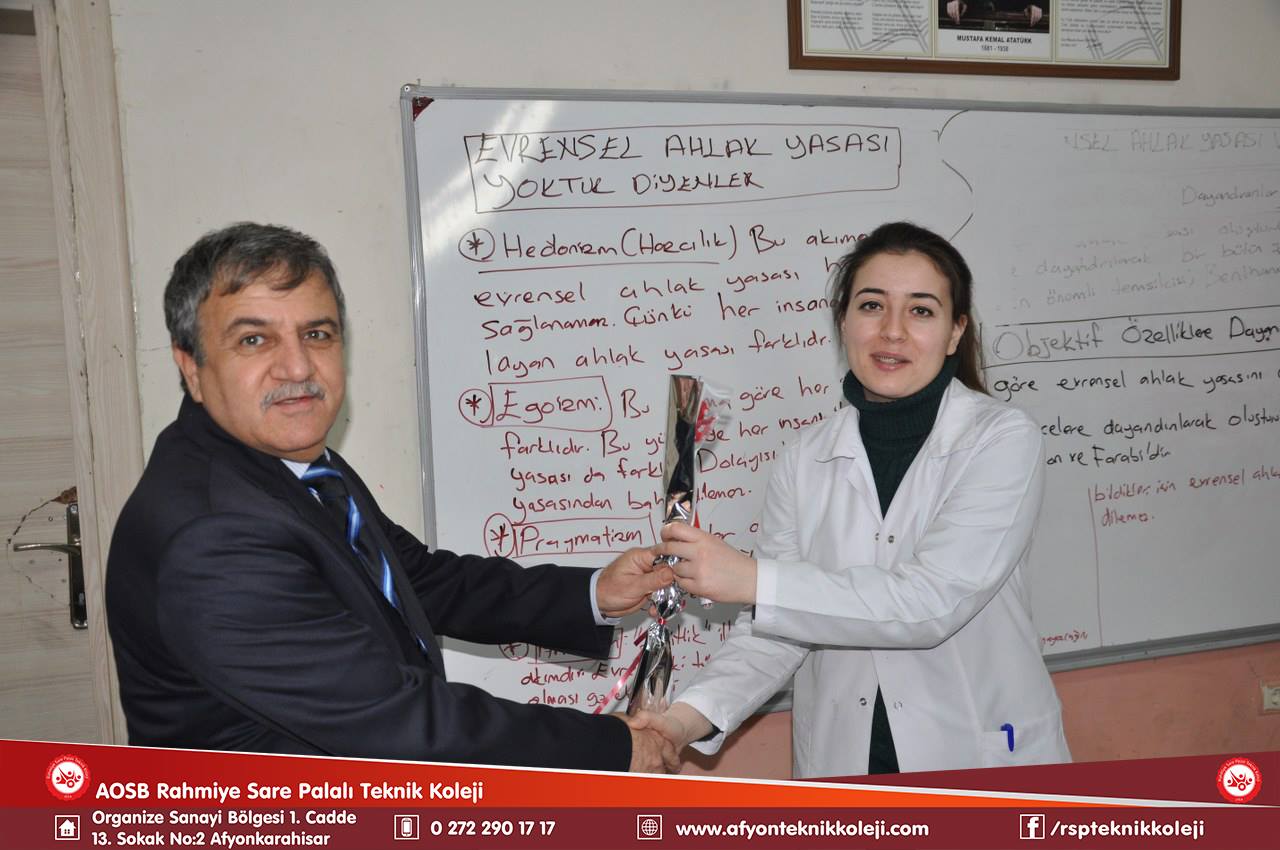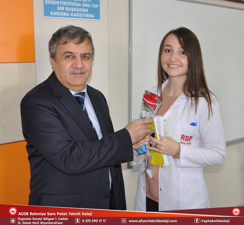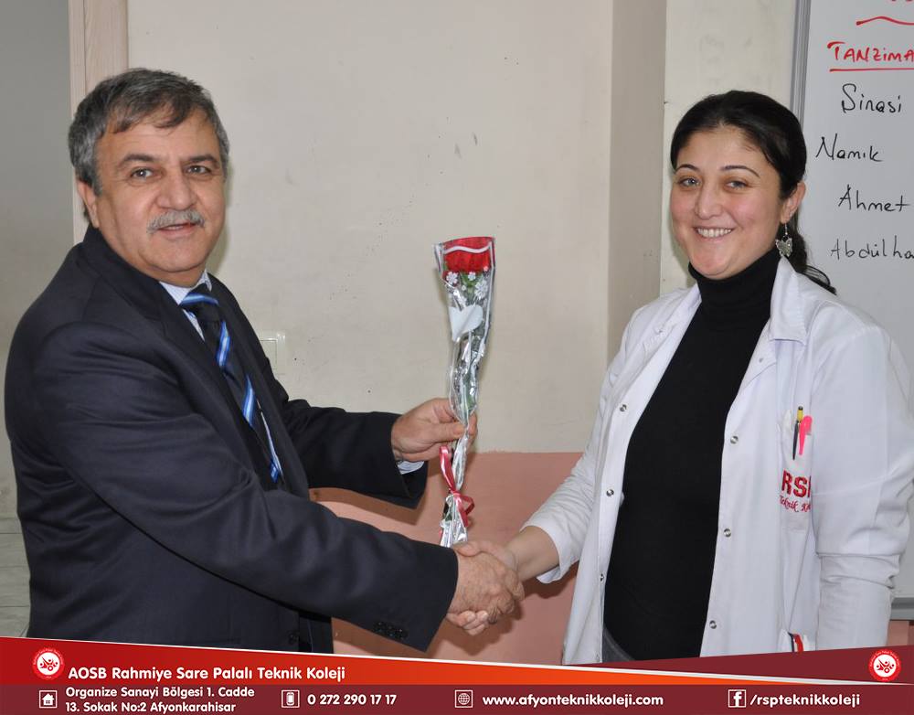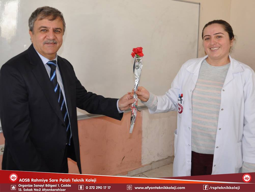 8 Mart Dünya Kadınlar Günü münasebetiyle sınıflarda ders anlatan bayan öğretmenlere sürpriz yaparak karanfil hediye etti. Afyon Rahimye Sare Palalı Teknik Kolej kurucusu Önder Artuk, Okul Müdürü İbrahim Çakal, Müdür yarımcıları İsmail Hakkı Çolaker ve Ömer Mürsel Bilik 41 bayan öğretmen ve 6 yardımcı personellerin 8 Mart Dünya Kadınlar Gününü kutlamak için karanfil dağıttı.