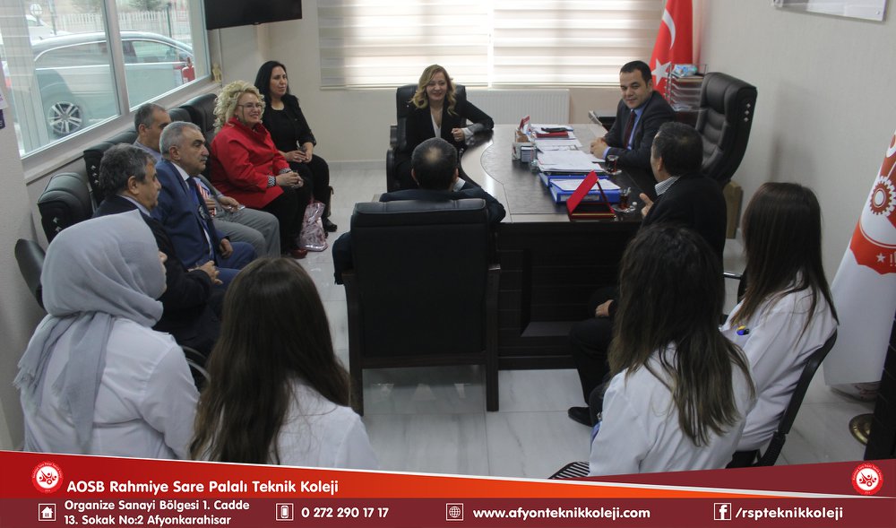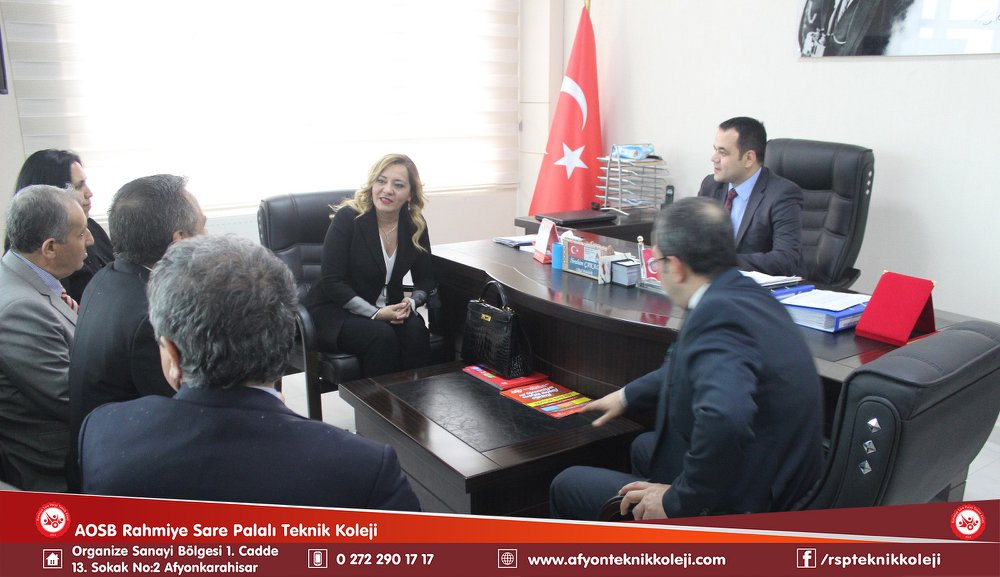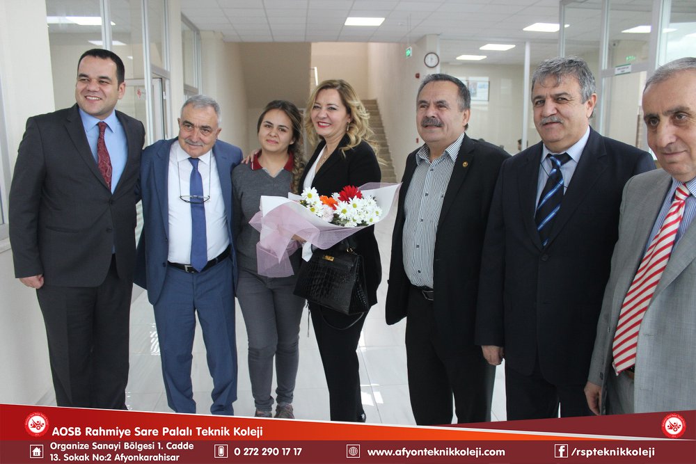 Afyon OSB Rahmiye Sare Palalı Teknik Koleji, 9. Cumhurbaşkanı merhum Süleyman Demirel'in Başdanışmanı ve özel doktoru olan Doktoru Aylin Cesur ile Koruma Müdürü Selçuk Atak’ı kabul etti. Atatürkçü Düşünce Derneği Afyonkarahisar Şube Başkanı Veli Cengiz ile birlikte Kolej kurucumuz Önder Artuk okul yönetimi ve öğrencilerimizle bir araya gelerek karşılıklı görüş alışverişinde bulundu.