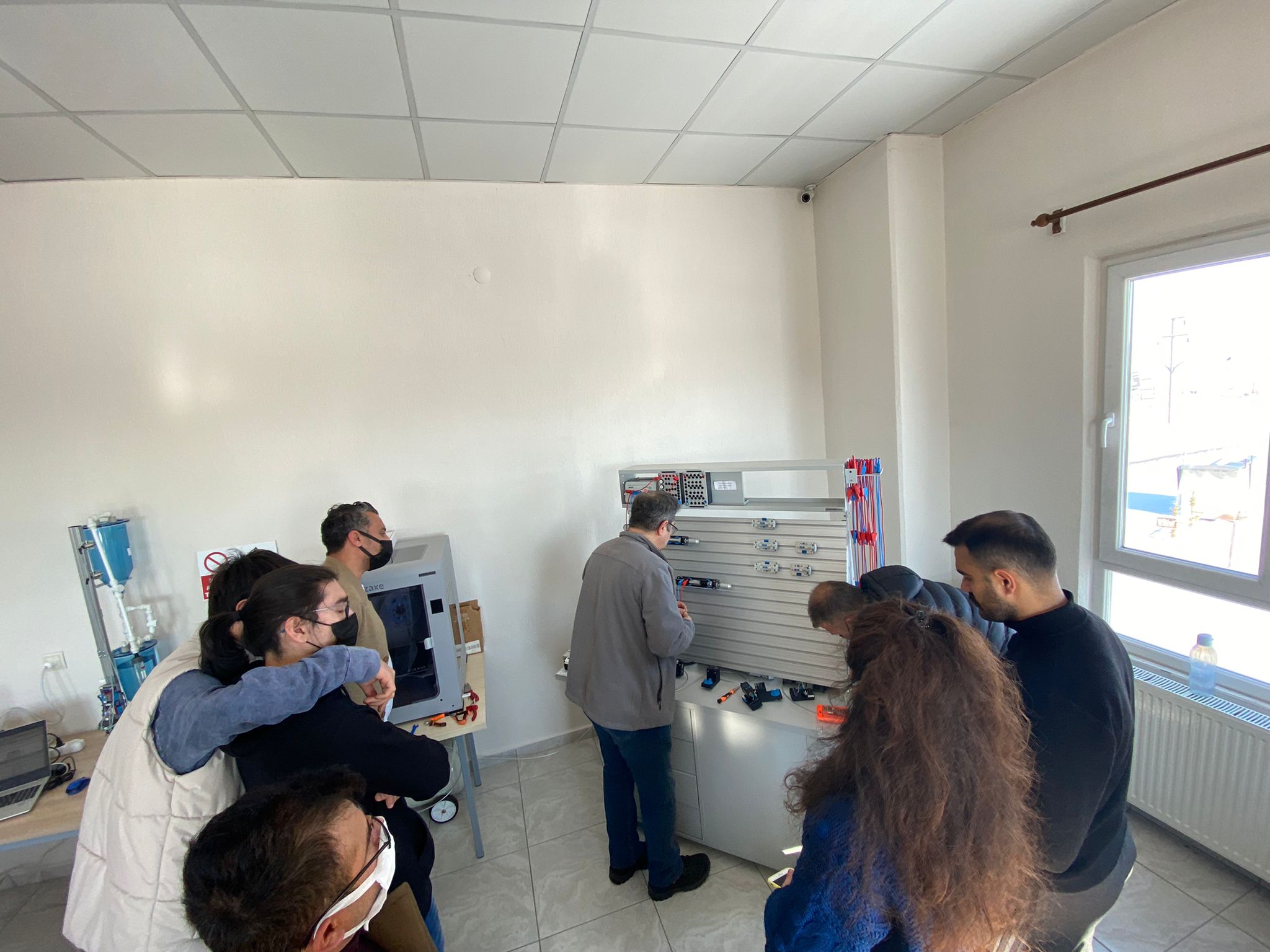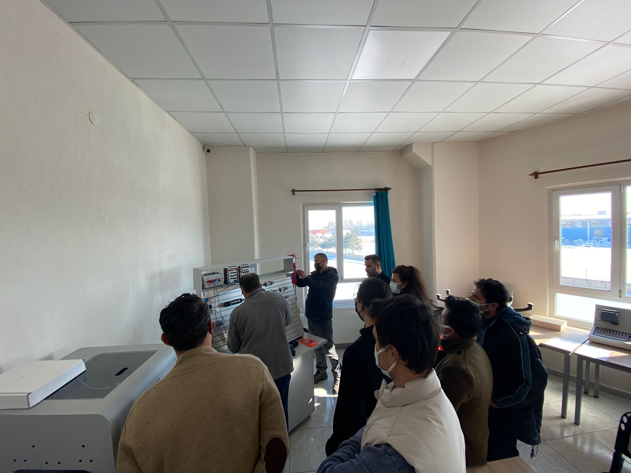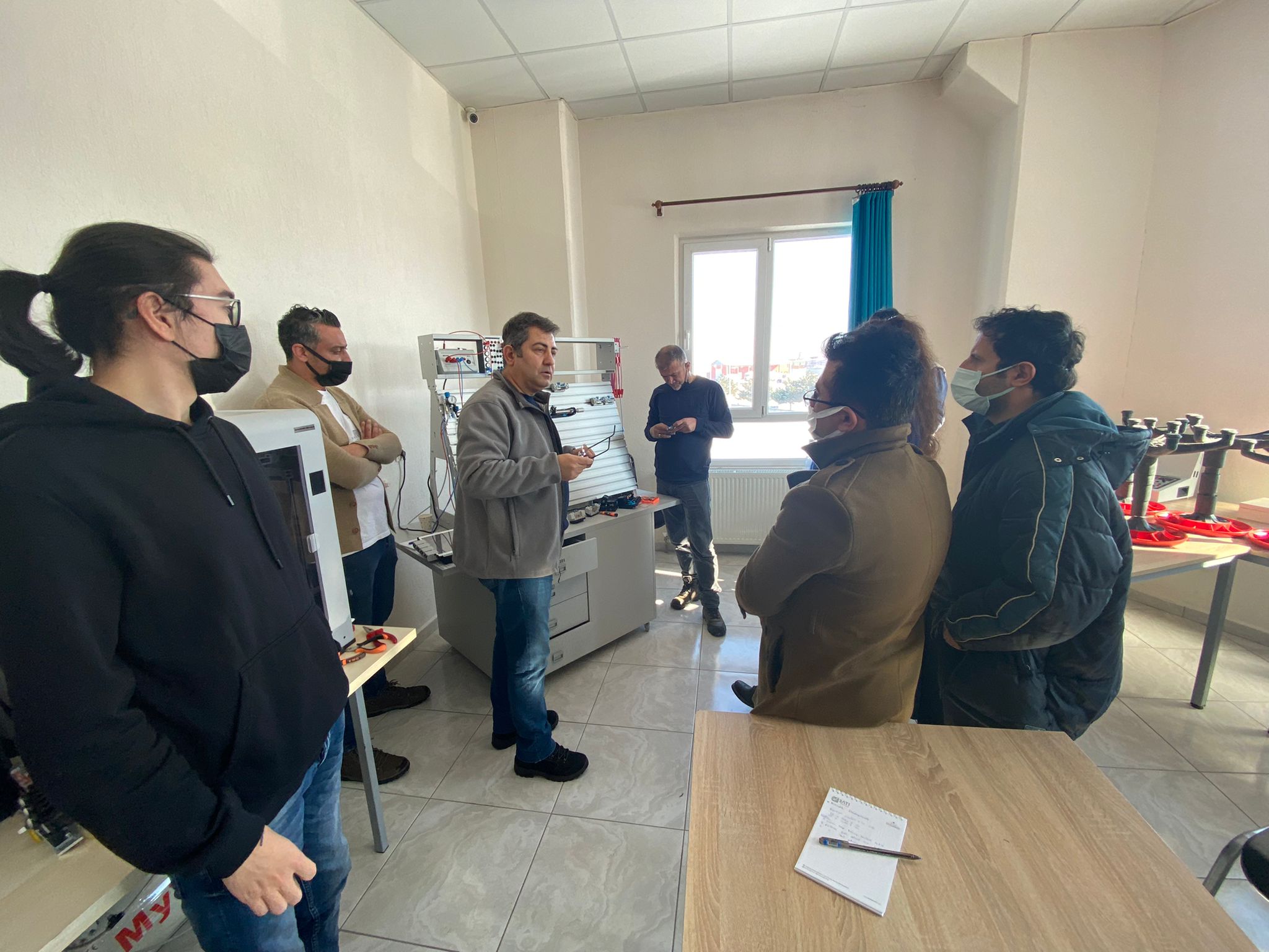 İçerisinde Robot Kol ve Montaj İstasyonu Eğitim Setleri, Endüstri 4.0 Simülasyon Üniteleri, Pnömatik-Elektropnömatik Eğitim Setleri, Proses Kontrol Eğitim Setleri, PLC Eğitim Setleri, Operatör Panelleri, Mikro Denetleyici Eğitim Setleri, 3 Boyutlu Yazıcıların bulunduğu atölye de öğretmenlerin eğitimi son eğitim ile bitti.