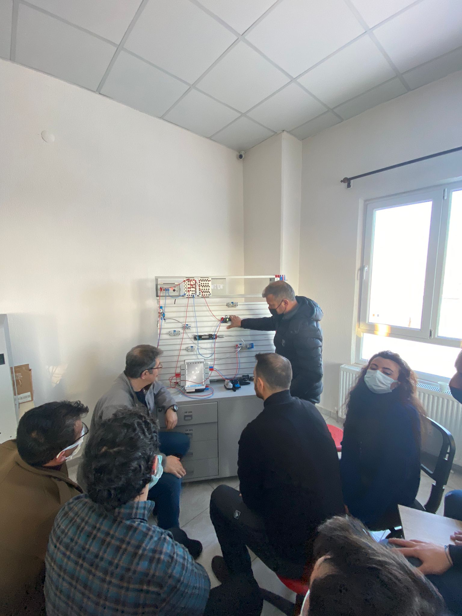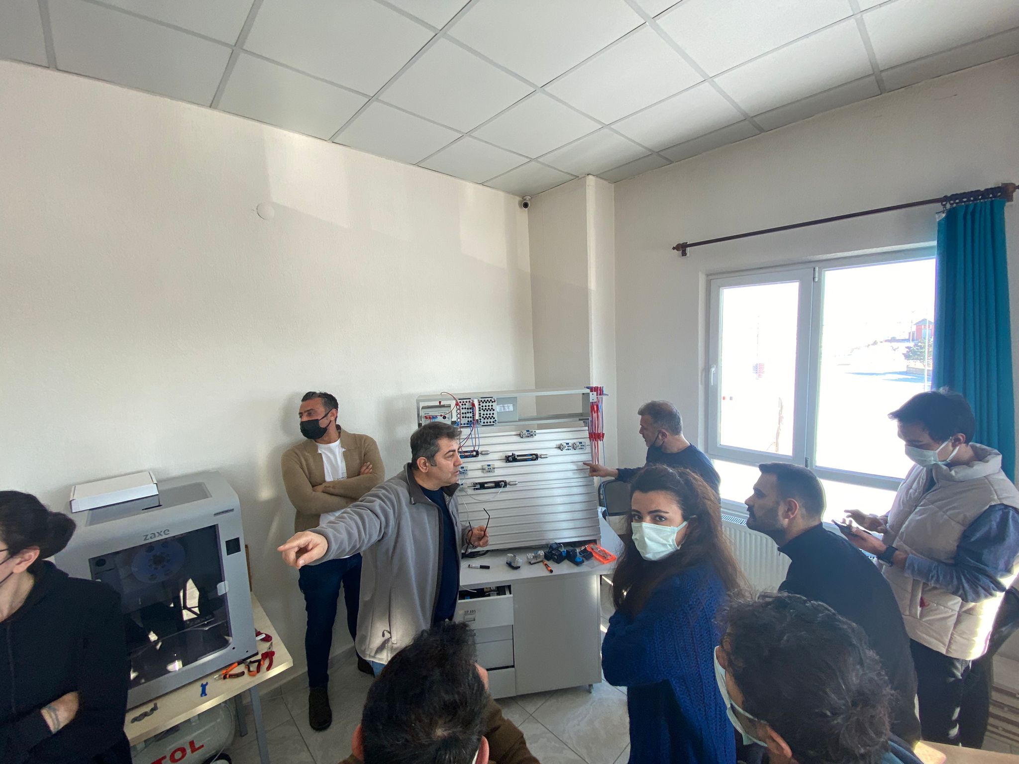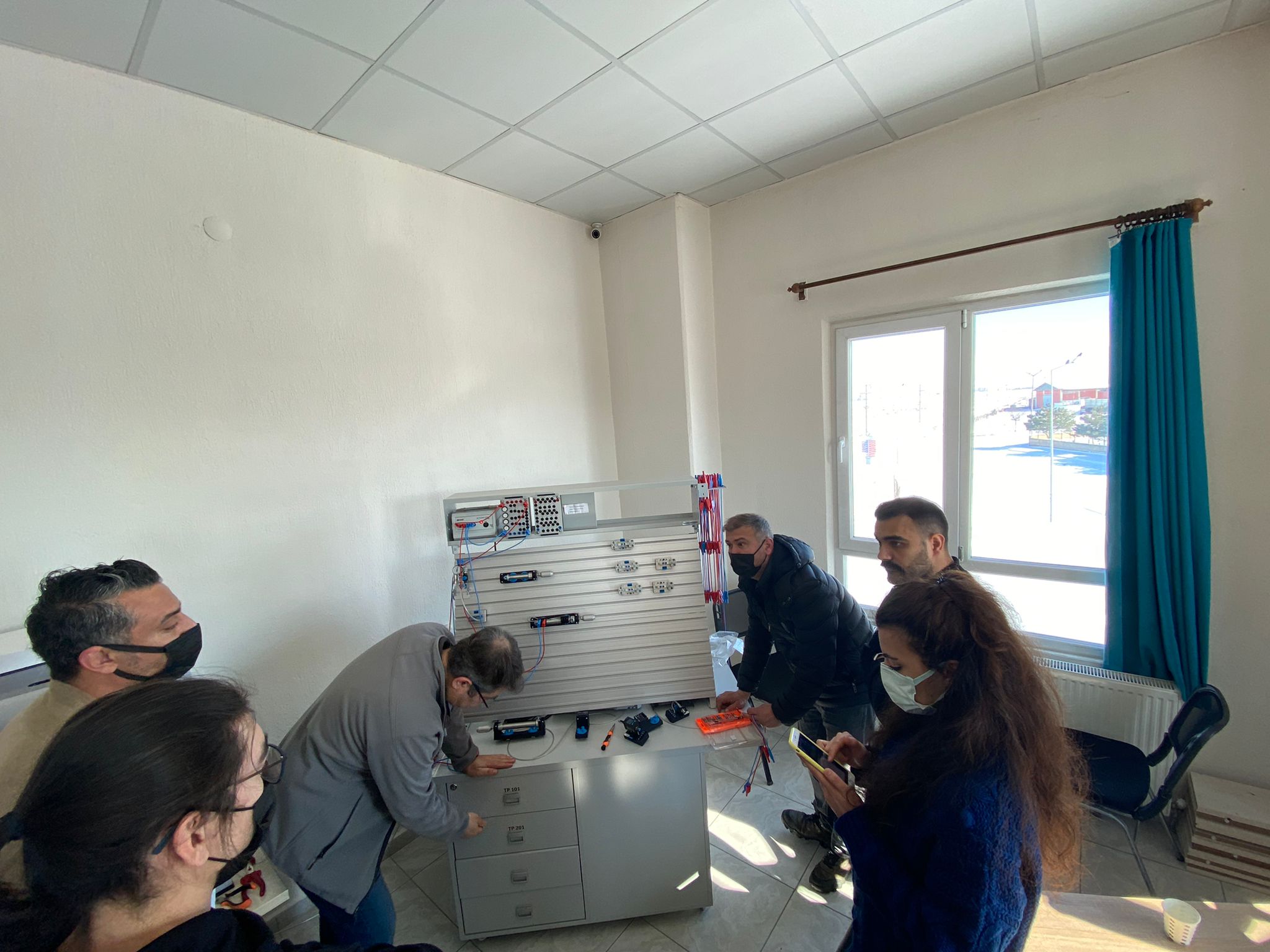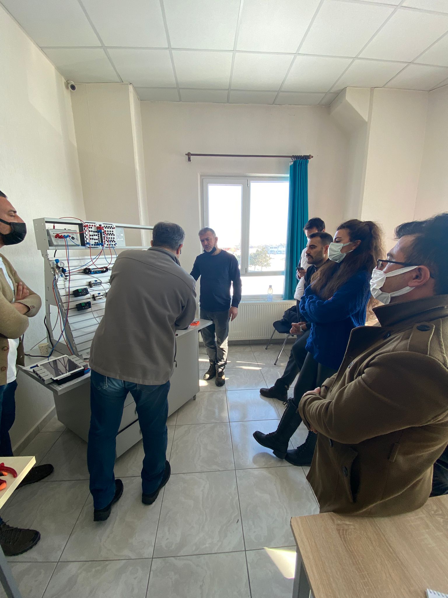 İçerisinde Robot Kol ve Montaj İstasyonu Eğitim Setleri, Endüstri 4.0 Simülasyon Üniteleri, Pnömatik-Elektropnömatik Eğitim Setleri, Proses Kontrol Eğitim Setleri, PLC Eğitim Setleri, Operatör Panelleri, Mikro Denetleyici Eğitim Setleri, 3 Boyutlu Yazıcıların bulunduğu atölye de öğretmenlerin eğitimi son eğitim ile bitti.