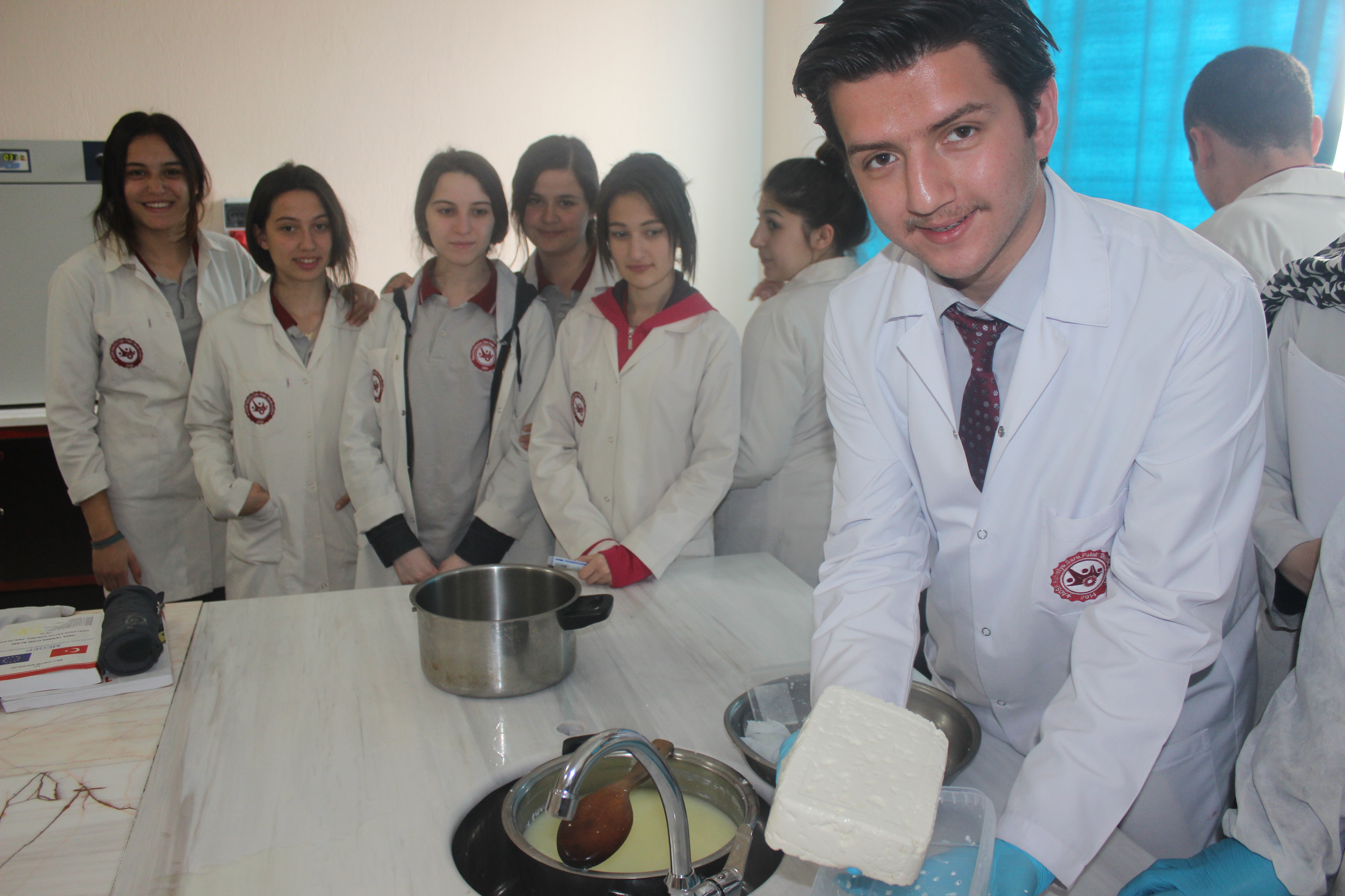 En iyi şartlarda, her geçen gün kendilerini geliştirmeye devam eden teknik okulumuzun Gıda Teknolojisi Bölümü öğrencilerinden 11 ATP / G ve 11 ATP / F sınıfları, Gıda derslerinde kaşar peyniri, beyaz peynir, örgü peyniri ve lor peyniri yapmayı öğrendi.