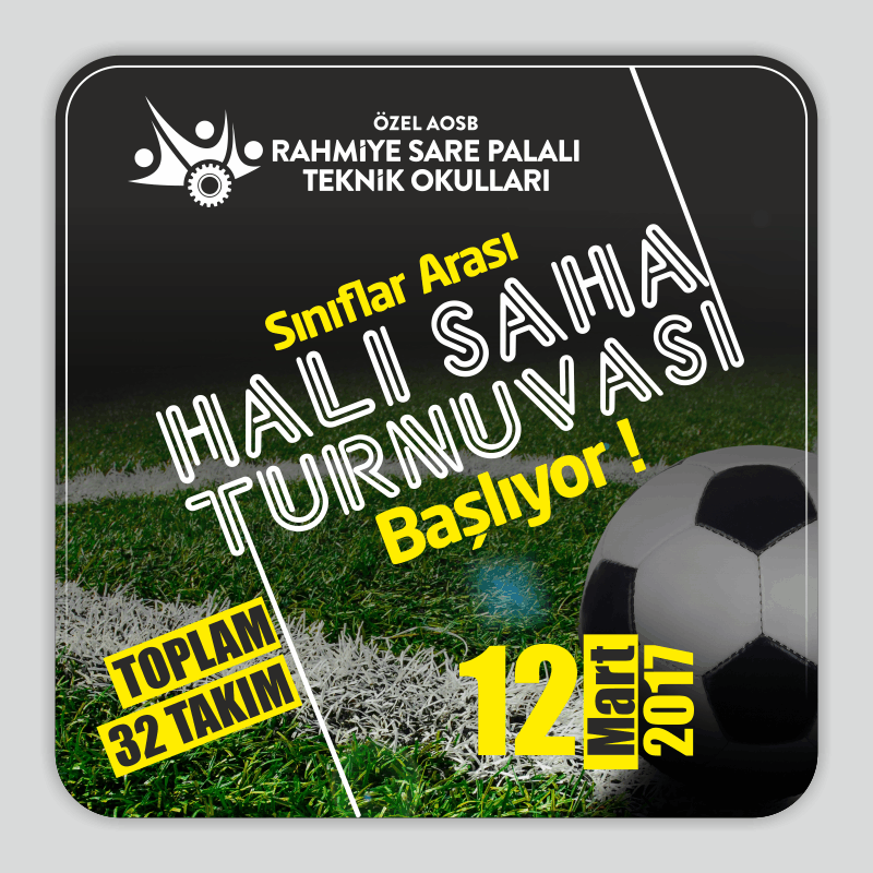 Geleneksel 3. Halı saha turnuvamız bu yılda başlıyor. 12 Mart 2017 Pazar Günü YGS olmasından dolayı maçlar 5 Mart 2017 tarihinde başlayacaktır. [gallery link="file" size="full" ids="5543"]