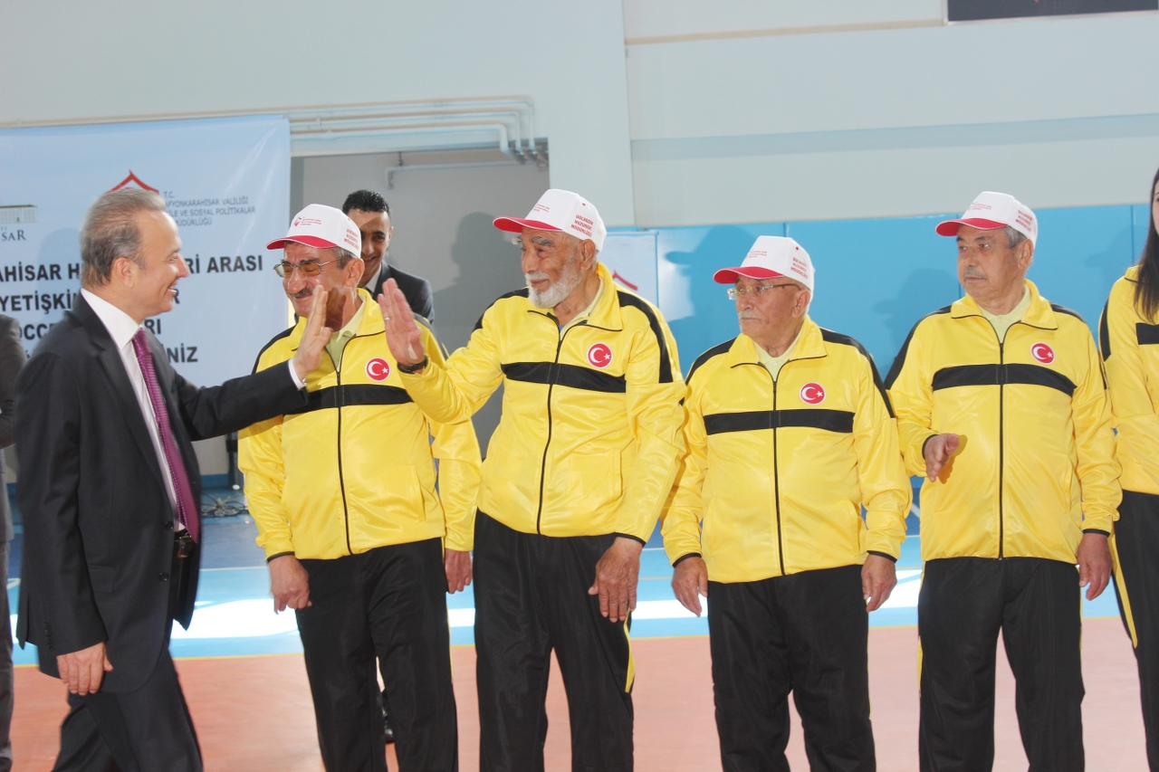 Gençlik Hizmetleri ve Spor İl Müdürlüğü kapalı spor salonunda gerçekleştirilen şenliğe Vali Hakan Yusuf Güner’in yanı sıra Vali Yardımcısı Erhan Günay, Aile ve Sosyal Politikalar İl Müdürü Alper Sezer, Gençlik Hizmetleri ve Spor İl Müdürü Yunus Tortop, ilimiz merkez ve ilçelerinde bulunan huzur evleri müdürleri, huzurevi sakinleri ve Afyon OSB Rahmiye Sare Palalı Teknik Okulu öğrenciler katıldı. Turnuvada müsabakalara katılacak olan Afyon Yaşlı Bakım ve Rehabilitasyon Merkezi, Bolvadin Huzurevi, Emirdağ Huzurevi, Sandıklı Hüseyin Develi Huzurevi sakinlerinin salonda yerlerini alması, saygı duruşunda bulunulması ve istiklal marşının okunmasıyla program başladı.