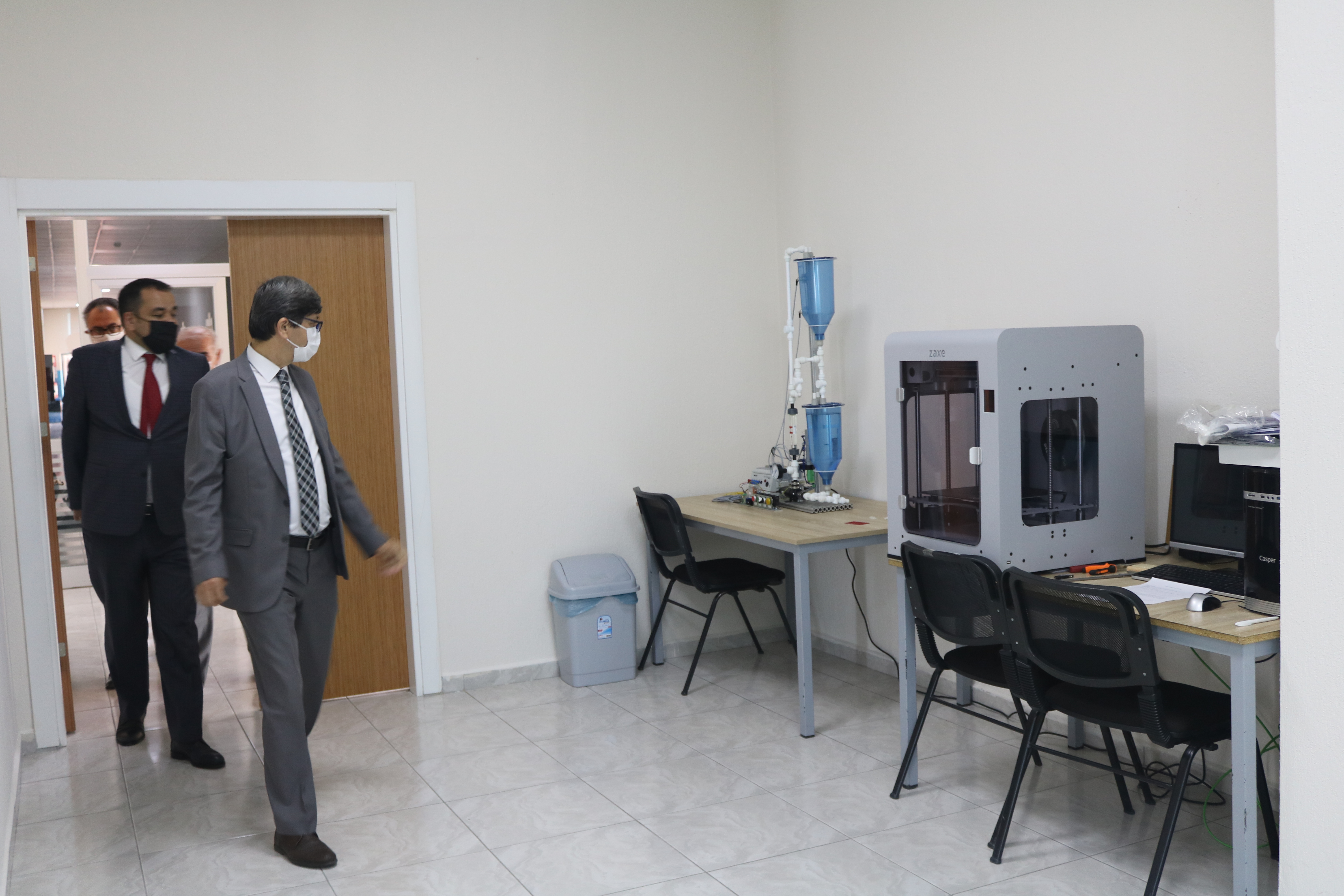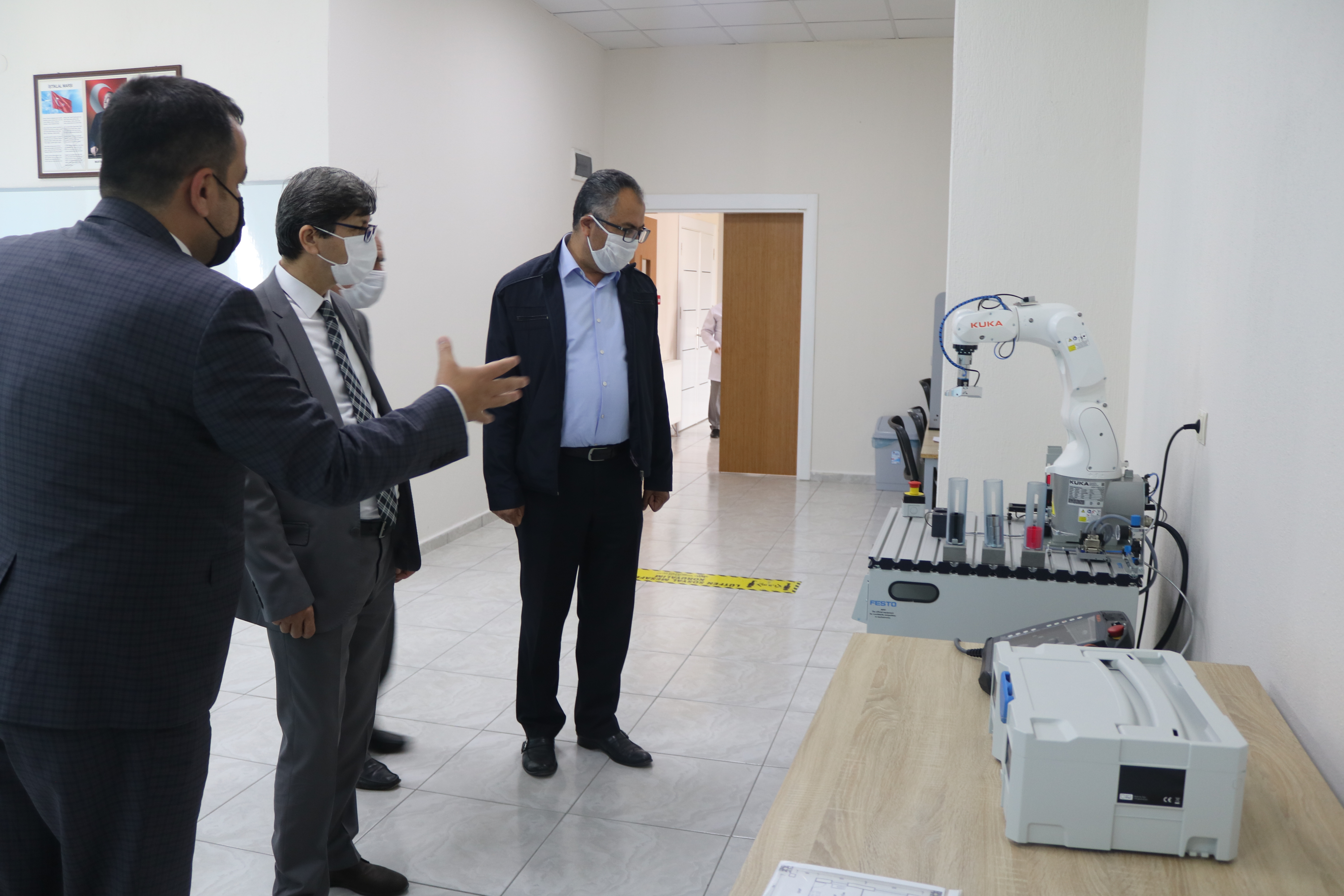 Zafer Kalkınma Ajansı ile birlikte kurulan Endüstri 4.0 atölyesini gezen Sn. Metin YALÇIN ve Sn. FATİH AKÇİL Robotik Kollardan PLC’ye kadar bir fabrikada olması gereken her şeyin bulunduğu atölye için okulu tebrik etti.