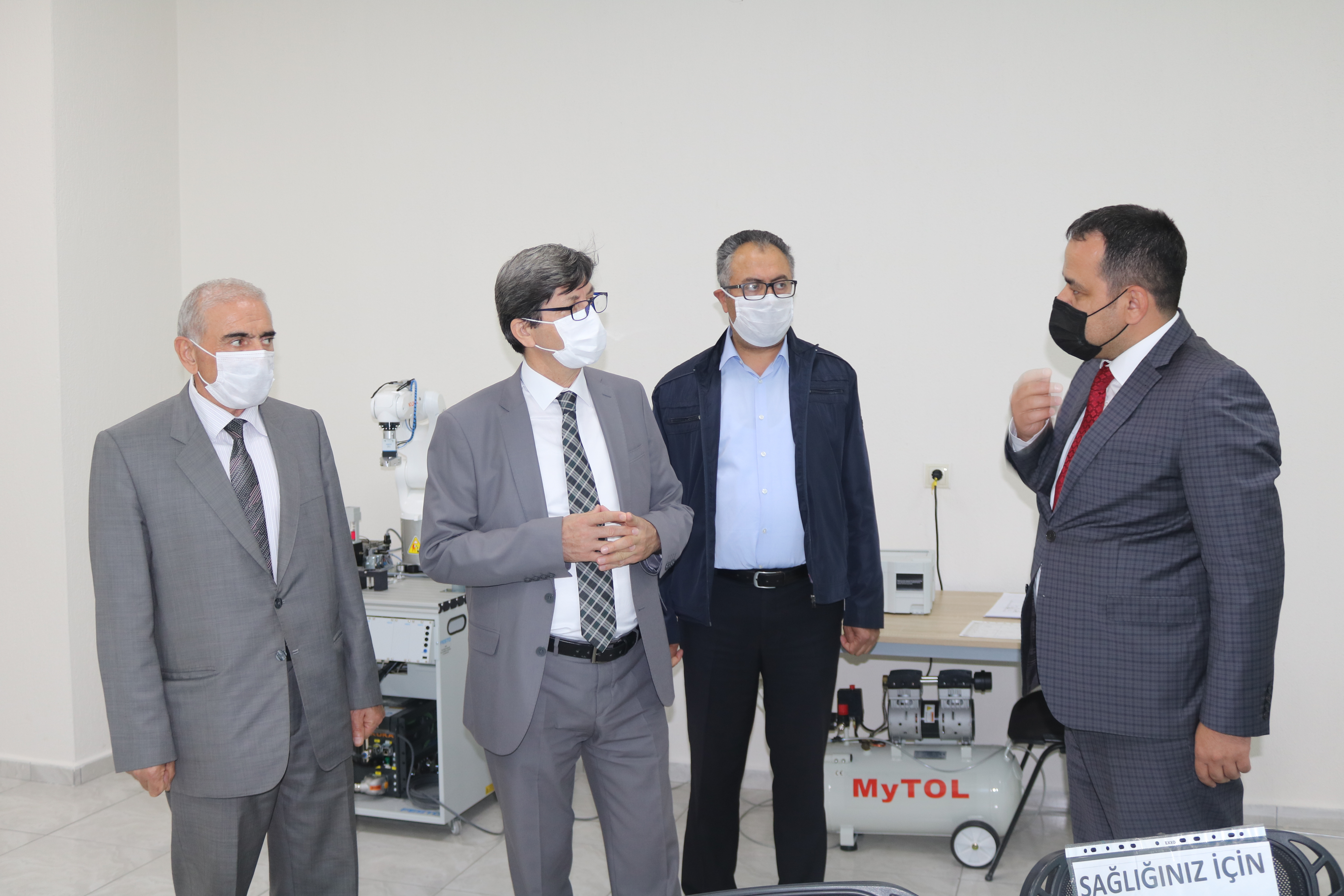 Zafer Kalkınma Ajansı ile birlikte kurulan Endüstri 4.0 atölyesini gezen Sn. Metin YALÇIN ve Sn. FATİH AKÇİL Robotik Kollardan PLC’ye kadar bir fabrikada olması gereken her şeyin bulunduğu atölye için okulu tebrik etti.