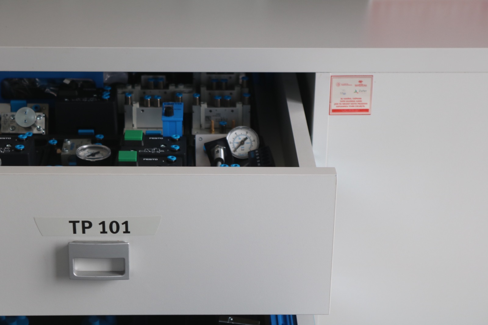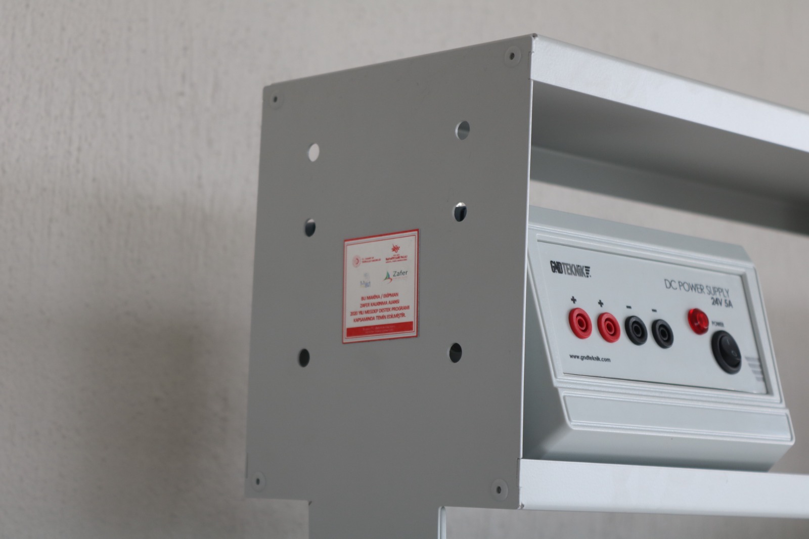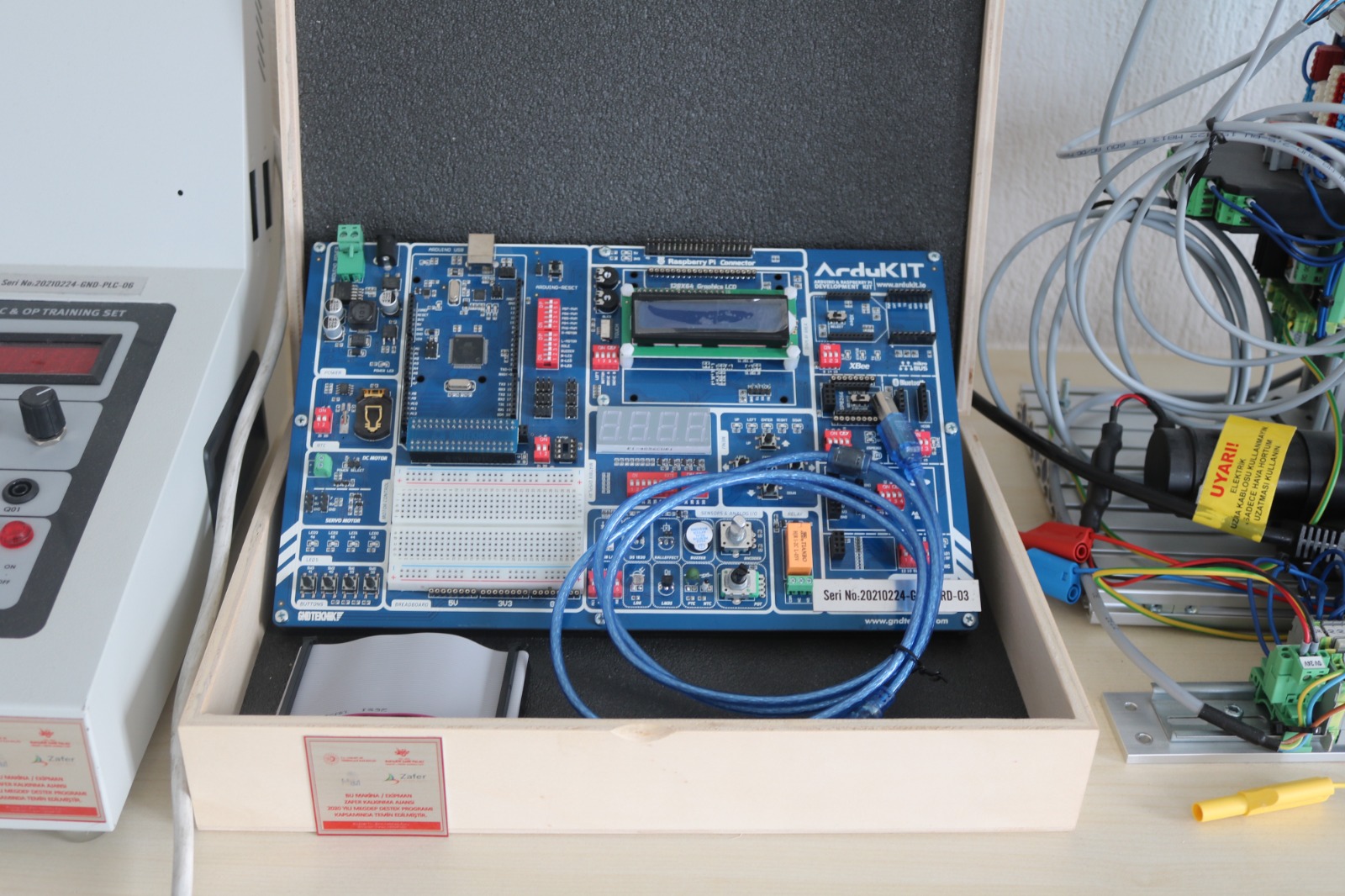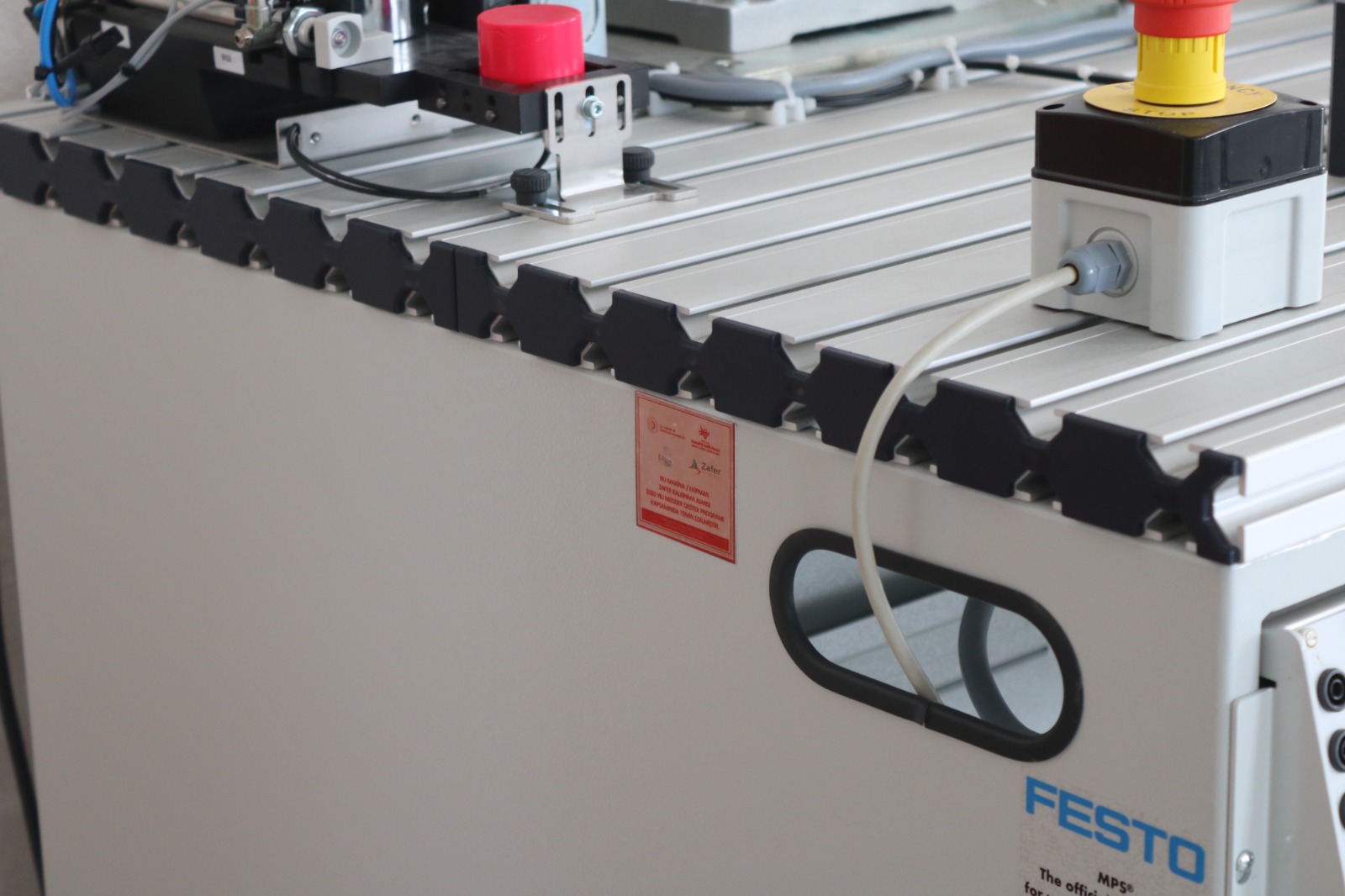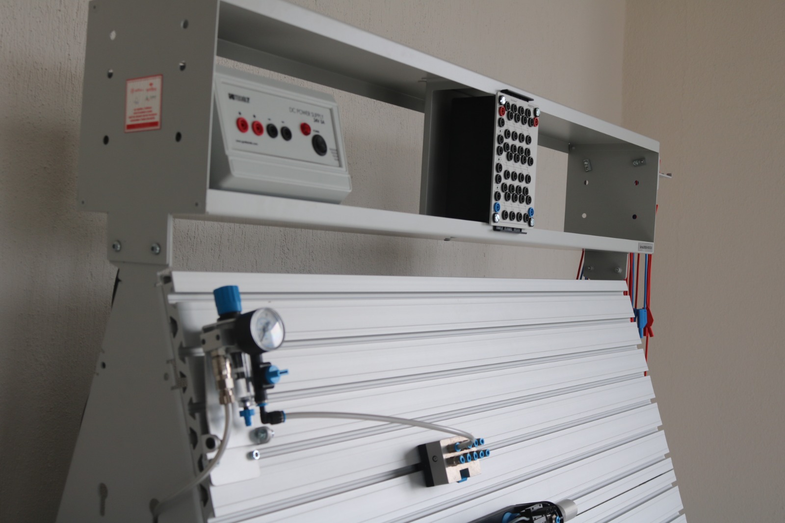 İçerisinde Robot Kol ve Montaj İstasyonu Eğitim Setleri, Endüstri 4.0 Simülasyon Üniteleri, Pnömatik-Elektropnömatik Eğitim Setleri, Proses Kontrol Eğitim Setleri, PLC Eğitim Setleri, Operatör Panelleri, Mikro Denetleyici Eğitim Setleri, 3 Boyutlu Yazıcıların bulunduğu atölyenin tüm iş ve işlemleri biterek makine ve ekipmanlara metal plakaları takıldı.