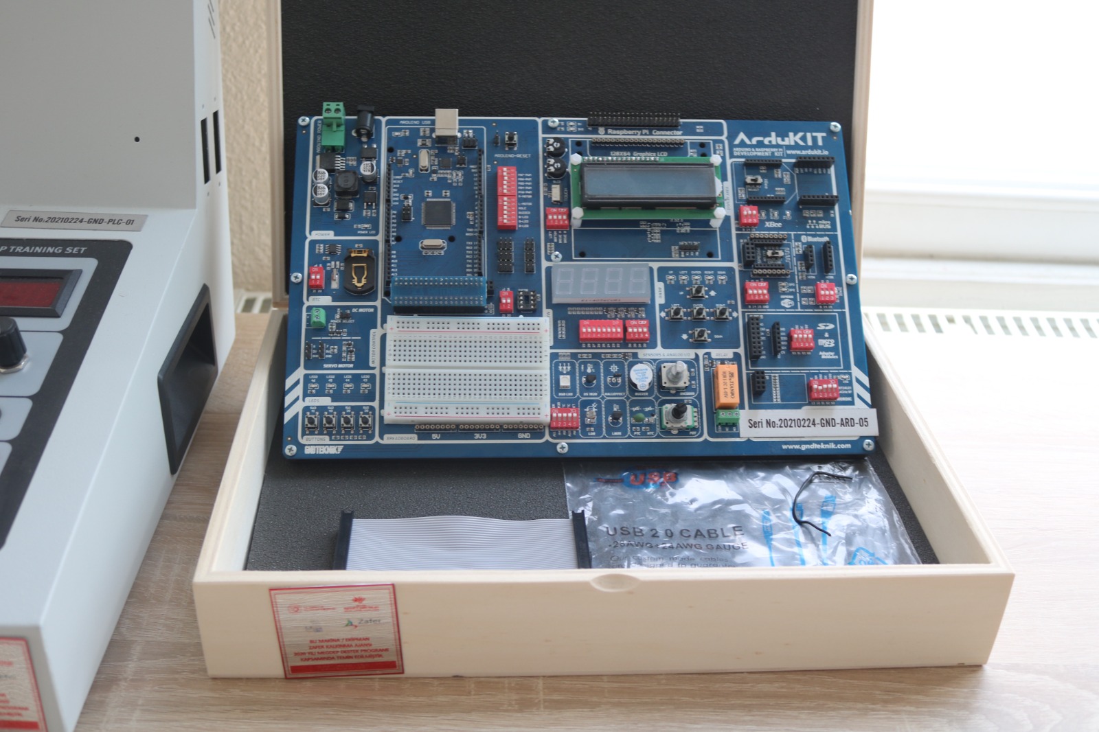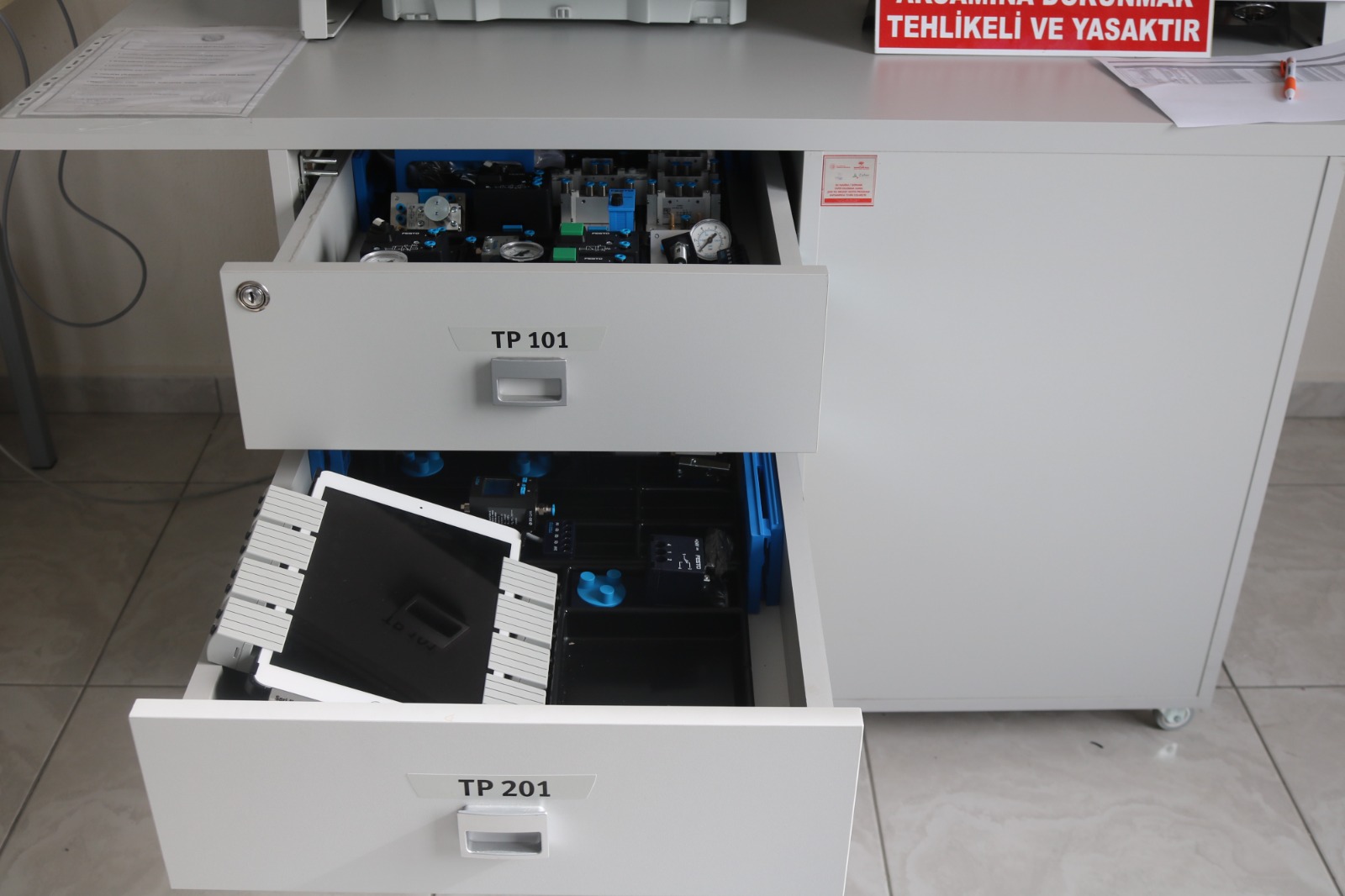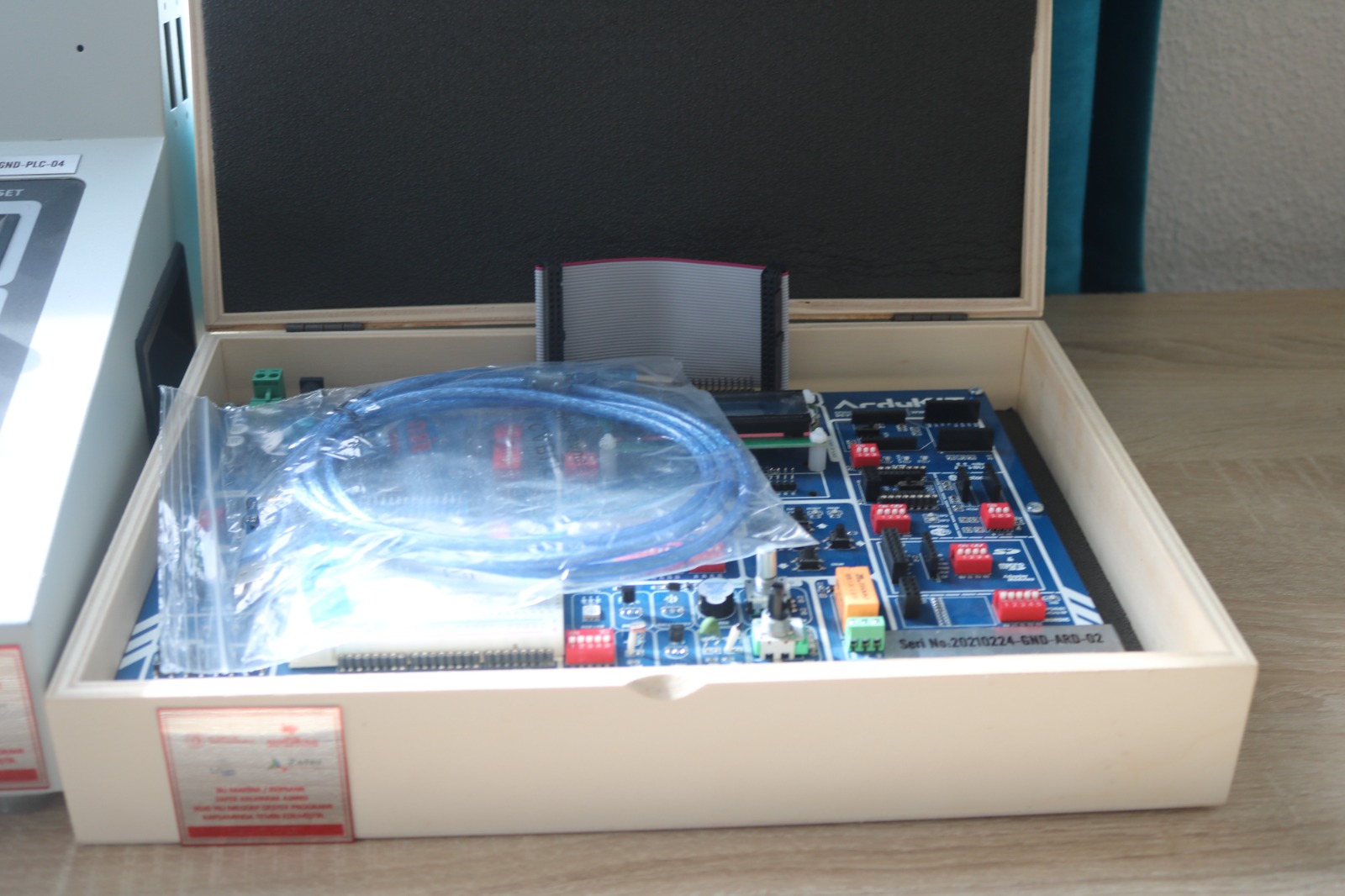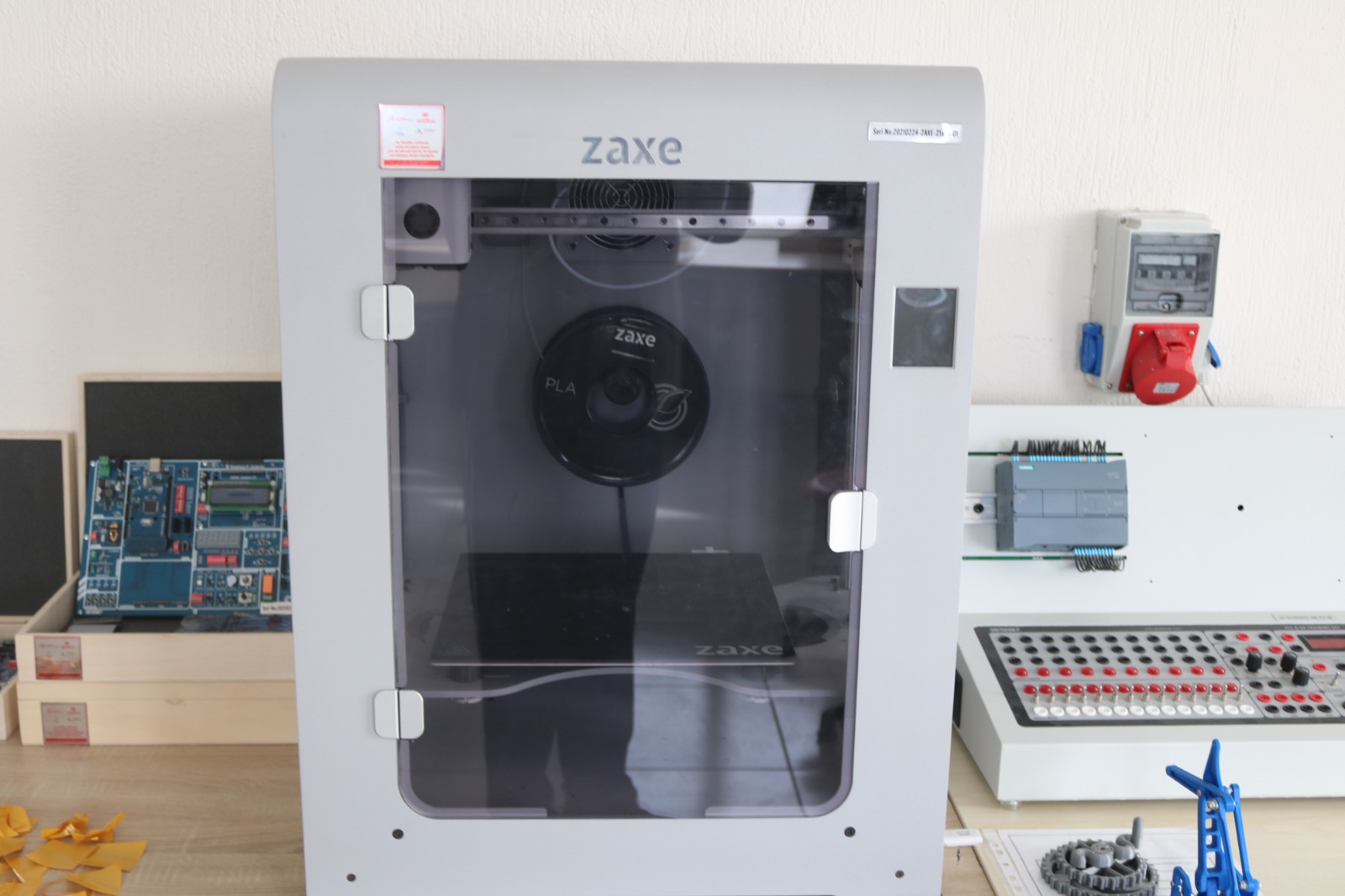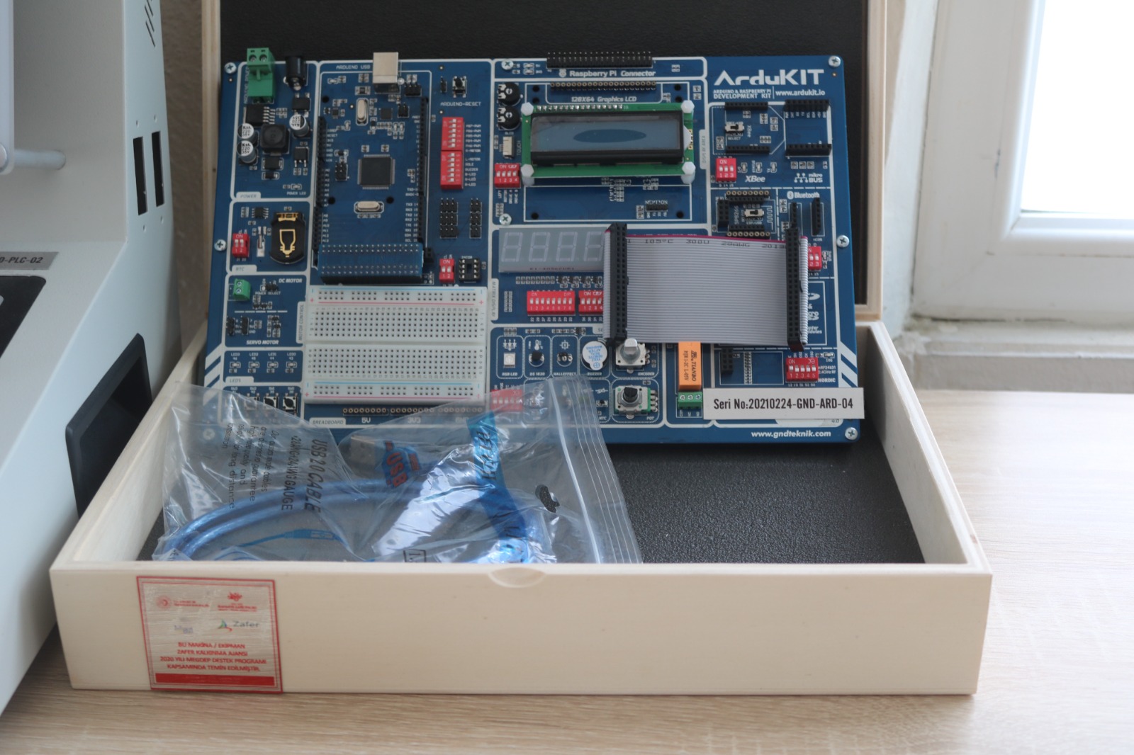 İçerisinde Robot Kol ve Montaj İstasyonu Eğitim Setleri, Endüstri 4.0 Simülasyon Üniteleri, Pnömatik-Elektropnömatik Eğitim Setleri, Proses Kontrol Eğitim Setleri, PLC Eğitim Setleri, Operatör Panelleri, Mikro Denetleyici Eğitim Setleri, 3 Boyutlu Yazıcıların bulunduğu atölyenin tüm iş ve işlemleri biterek makine ve ekipmanlara metal plakaları takıldı.