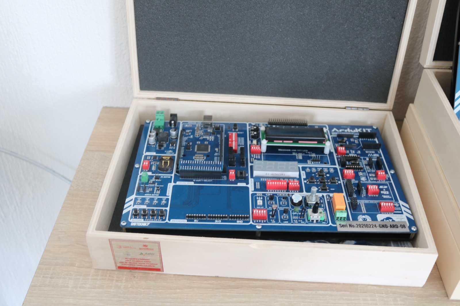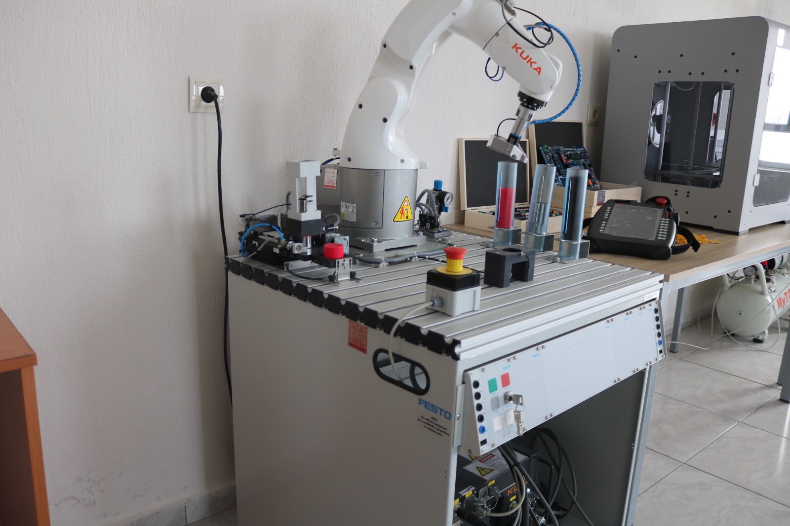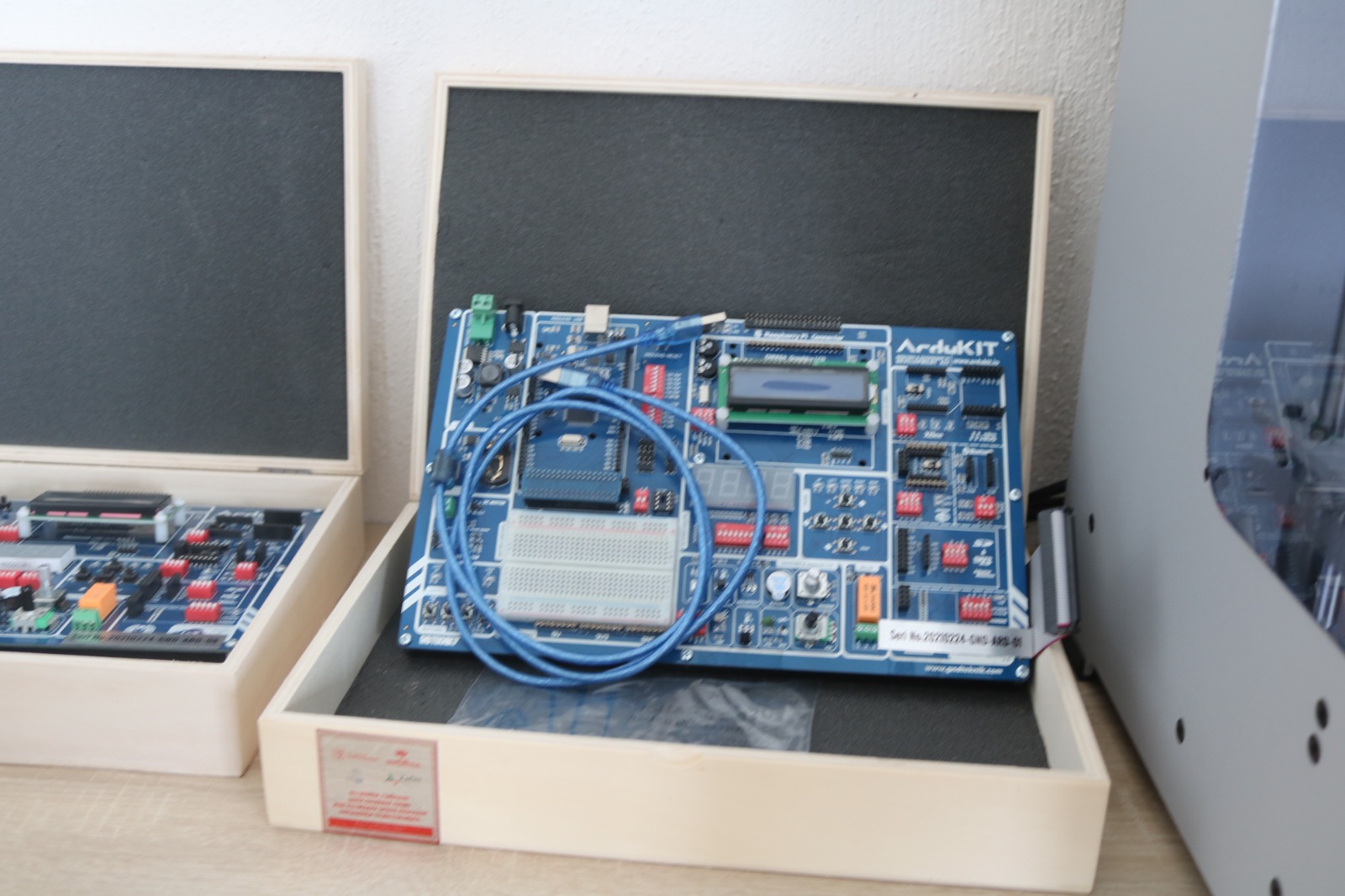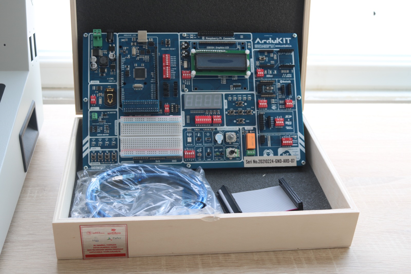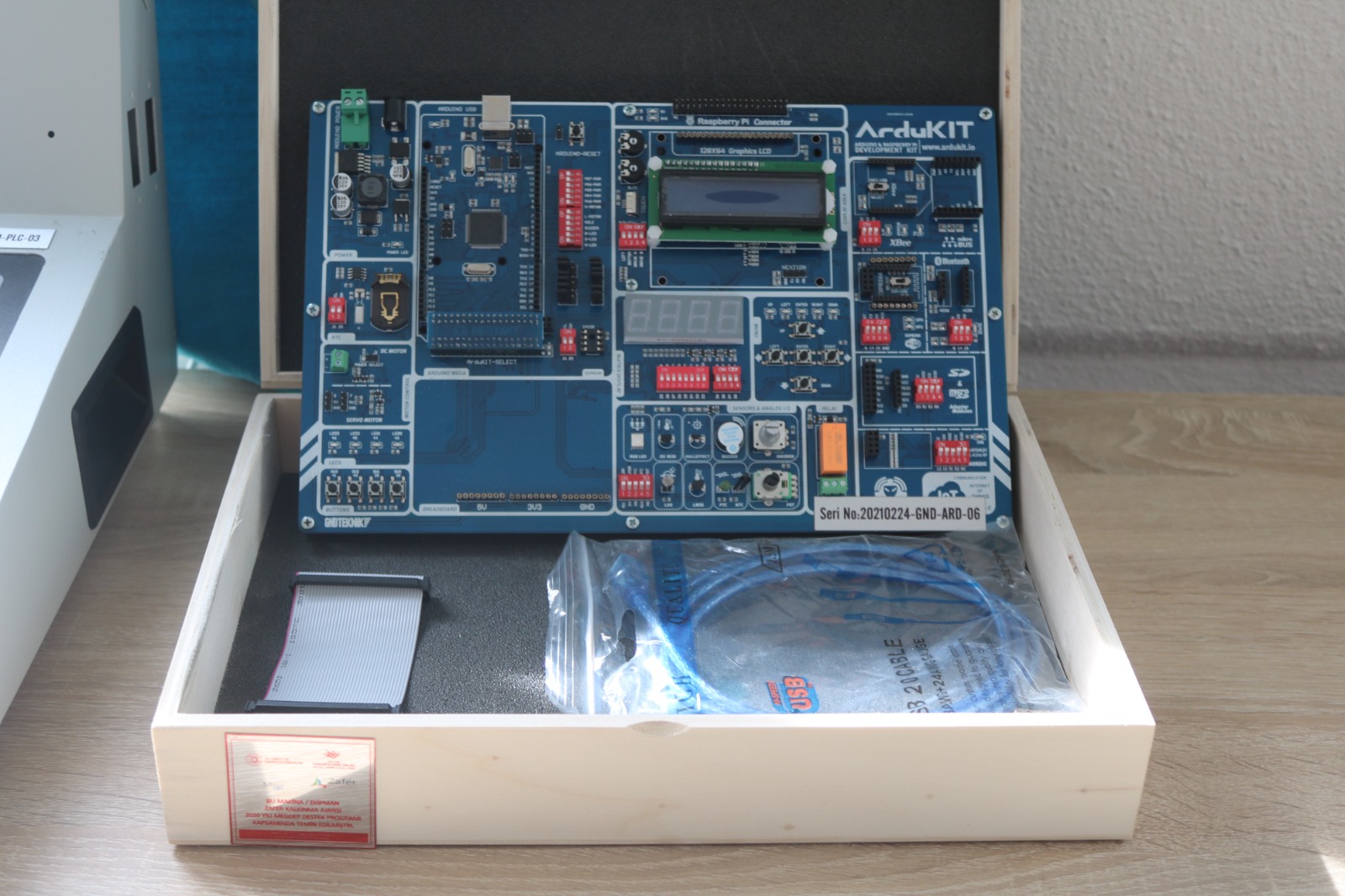 İçerisinde Robot Kol ve Montaj İstasyonu Eğitim Setleri, Endüstri 4.0 Simülasyon Üniteleri, Pnömatik-Elektropnömatik Eğitim Setleri, Proses Kontrol Eğitim Setleri, PLC Eğitim Setleri, Operatör Panelleri, Mikro Denetleyici Eğitim Setleri, 3 Boyutlu Yazıcıların bulunduğu atölyenin tüm iş ve işlemleri biterek makine ve ekipmanlara metal plakaları takıldı.