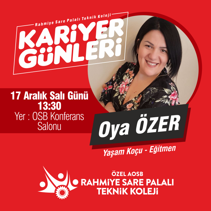 Kariyer günü etkinliğinin bu kez konuğu yaşam koçu, eğitmen, yazar Oya Özer oldu. Afyon Organize sanayi Bölgesi konferans salonunda düzenlenen kariyer gününe Rahmiye Sare Palalı Teknik Koleji Okul Müdürü İbrahim Çakal, okul öğretmenleri ve öğrencileri katıldı. Yoğun bir katılım ile gerçekleşen etkinlik eğitmen Oya Özer’in öğrencilere verdiği önemli ipuçları ve öğrencilerle karşılıklı geçen soru cevap şeklinde tamamlandı.