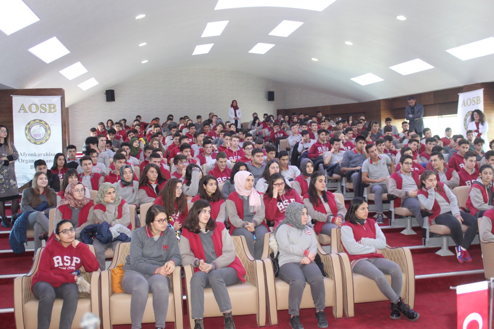 Eğitime ve öğrencilere verdiği değer için Rahmiye Sare Palalı Teknik Koleji Okul Müdürü İbrahim Çakal’a teşekkür ederek sözlerine başlayan eğitmen, yazar Oya Özer: “Afyon’da sizlerle bir arada olmaktan ve bu fırsatı yakalamış olmaktan büyük mutluluk duyuyorum. Sizlerin de bu emeğe vermiş olduğunuz gayretle, hepinizin çok iyi yerlere geleceğinizi öngörüyorum. Tüm öğrencilerin genelde yaşadığı problem sınavlarla ilgili bir kaygıdır; ama şuan da gözlerinize baktığımda böyle bir kaygıyı görmüyorum”dedi.