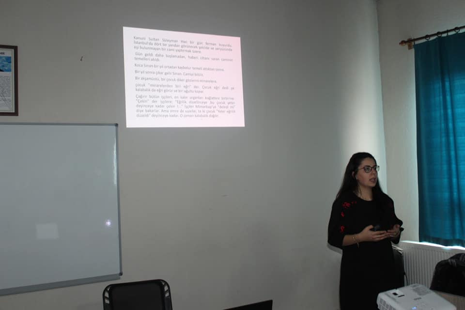 Yüksek Mimar Kocaman İlk olarak öğrencilere mimarlık mesleğinin tanımını ve görevlerini anlattı. Kocaman : “Mimar Her çeşit yapının, kullanıcıların ihtiyaçlarına ve olanaklarına göre tasarımını yapan ve yapımını denetleyen kişidir. Mimarlık, insanın içinde yaşamını sürdüreceği yapıların estetik ve kullanışlılık ilkelerini göz önüne alarak tasarlama sanatıdır. Mimar bu amacı gerçekleştirmek için; Yapılacak binanın şehir imar planına uygun olup olmadığını inceler, gerekli alt yapı çalışmalarını yapar.” dedi.