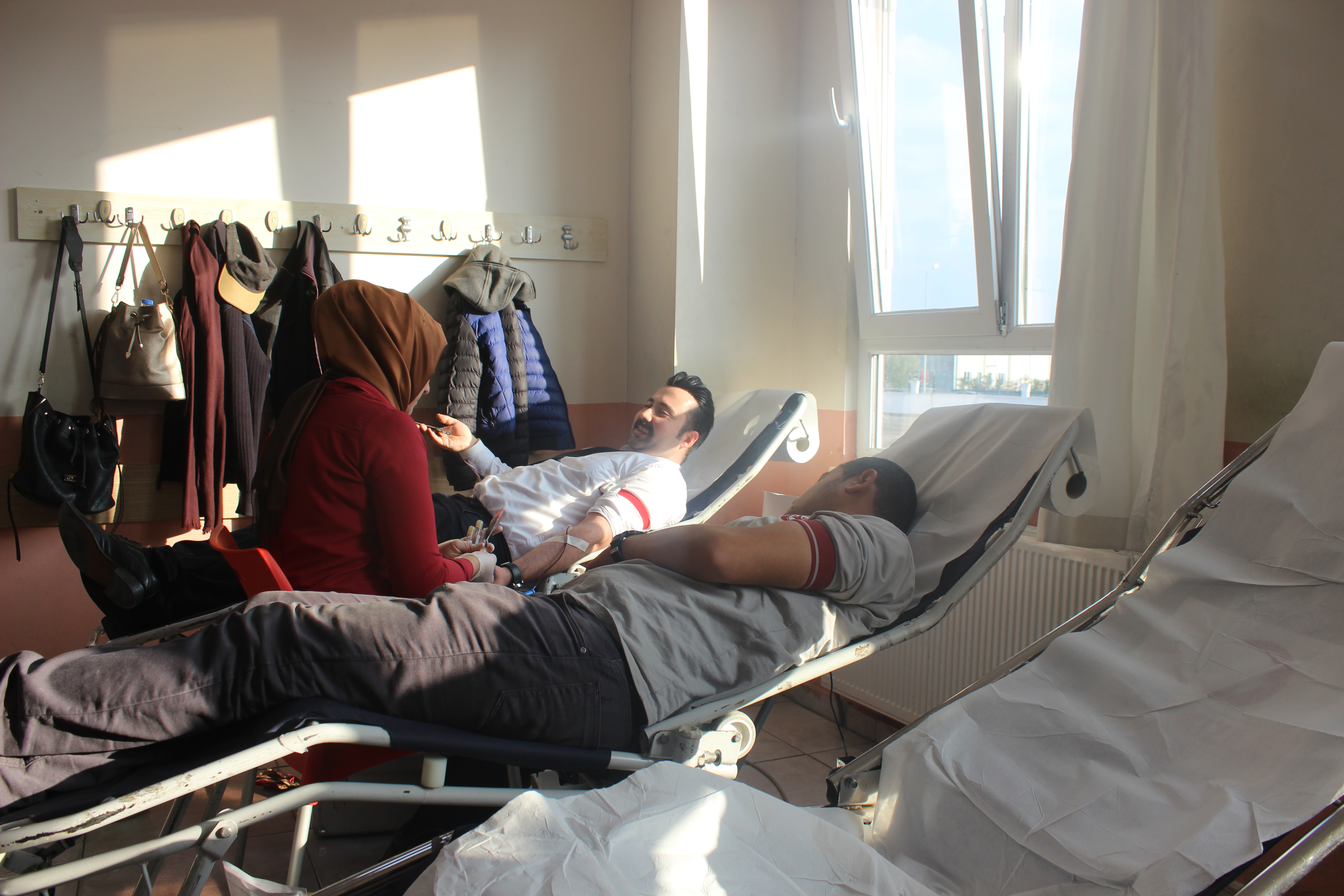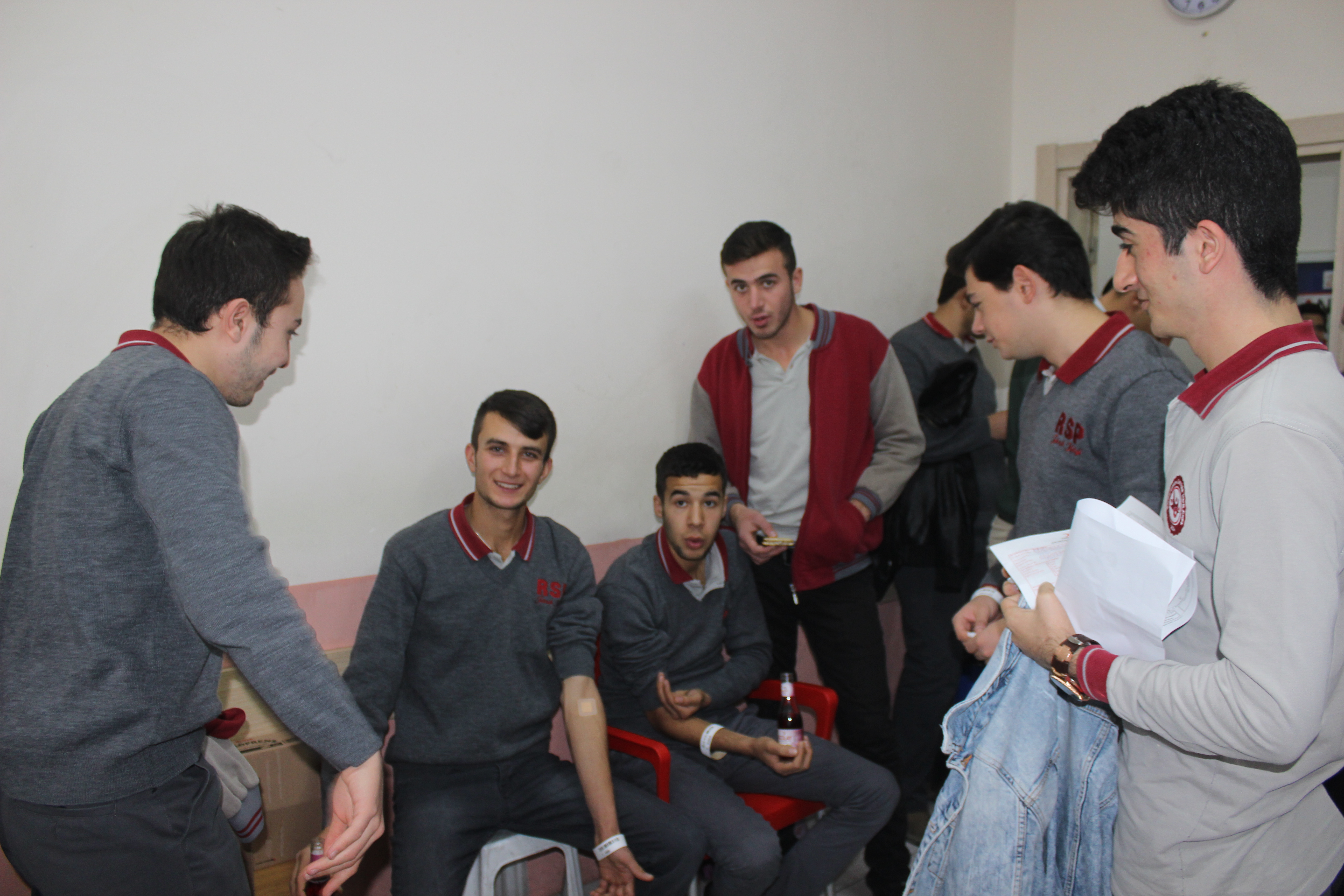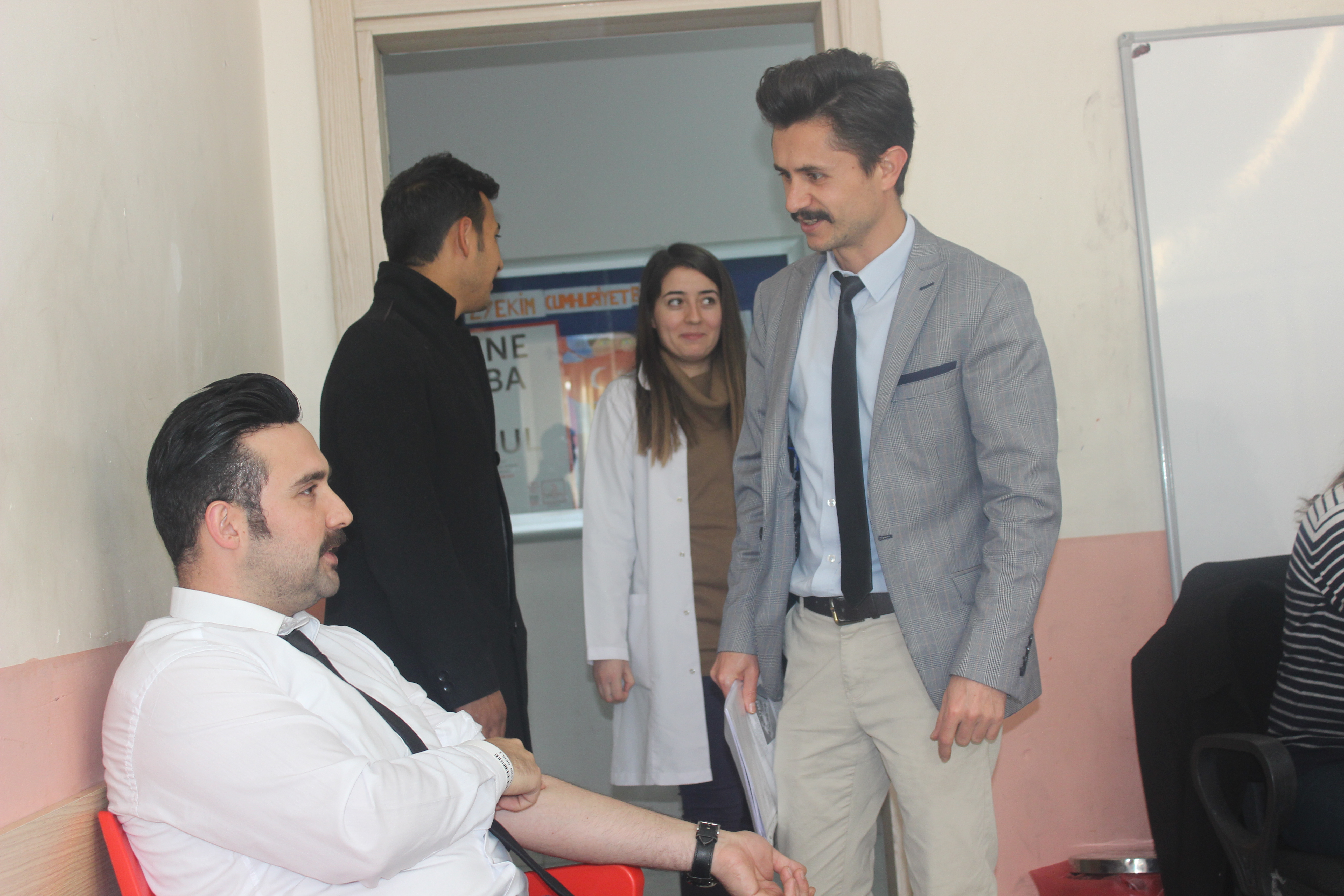 Kızılay ile MEB değerler eğitimi çercevesinde öğretmenlerimiz 18 yaş üstü öğrencilerimiz kan bağışında bulundular. Kan bağışının ardından bu kadar kutsal bir görev yapan Dr. Kubilay AKMAN ve Erdal TAN'a plaketlerini Okul Müdürümüz İbrahim ÇAKAL takdim etti.