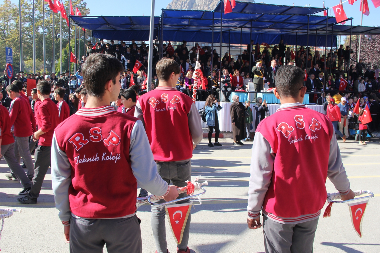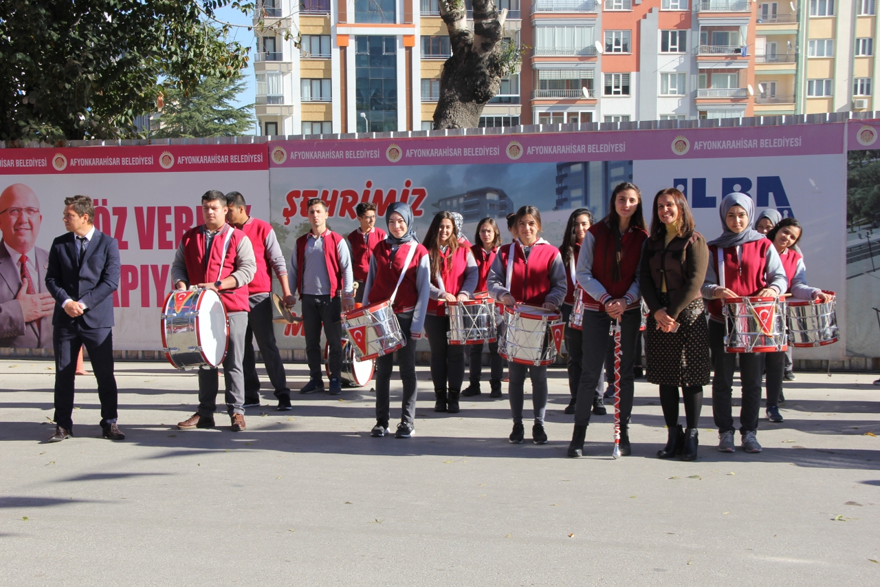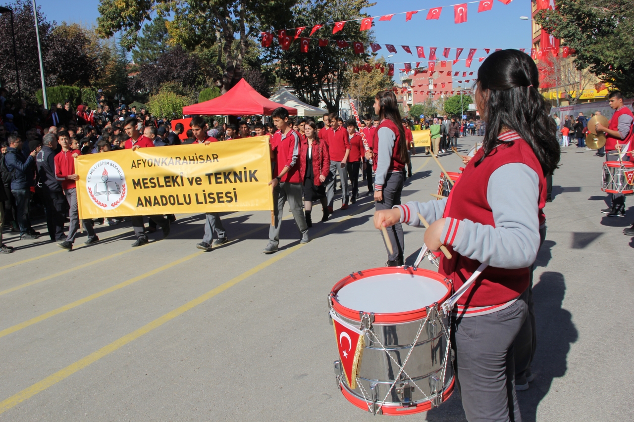 Anıtpark’ta düzenlenen 29 Ekim Cumhuriyet Bayramı törenlerine Afyon OSB Rahmiye Sare Palalı Teknik Kolejimizin Bando Takımı’da katıldı. Bando takımımızın gerçekleştirdiği gösteri vatandaşlardan büyük ilgi gördü. Kutlamanın başlamasıyla kısa sürede bölgeye akın eden vatandaşlar aynı zamanda coşkulu bir şekilde Bando Takımı’na eşlik etti. Milli duyguların yoğun yaşandığı kutlamada vatandaşlar ellerindeki Türk bayraklarıyla güzel görüntüler oluşturdu. Bazı vatandaşların cep telefonları ile kaydettiği Teknik Kolejimizin Bando Takımıyla Ordu Bulvarından Yeşilyol’da bulunan Afyon Batı Kurs Merkezi’nin önüne kadar takip ettiler.