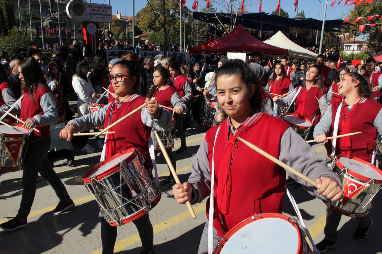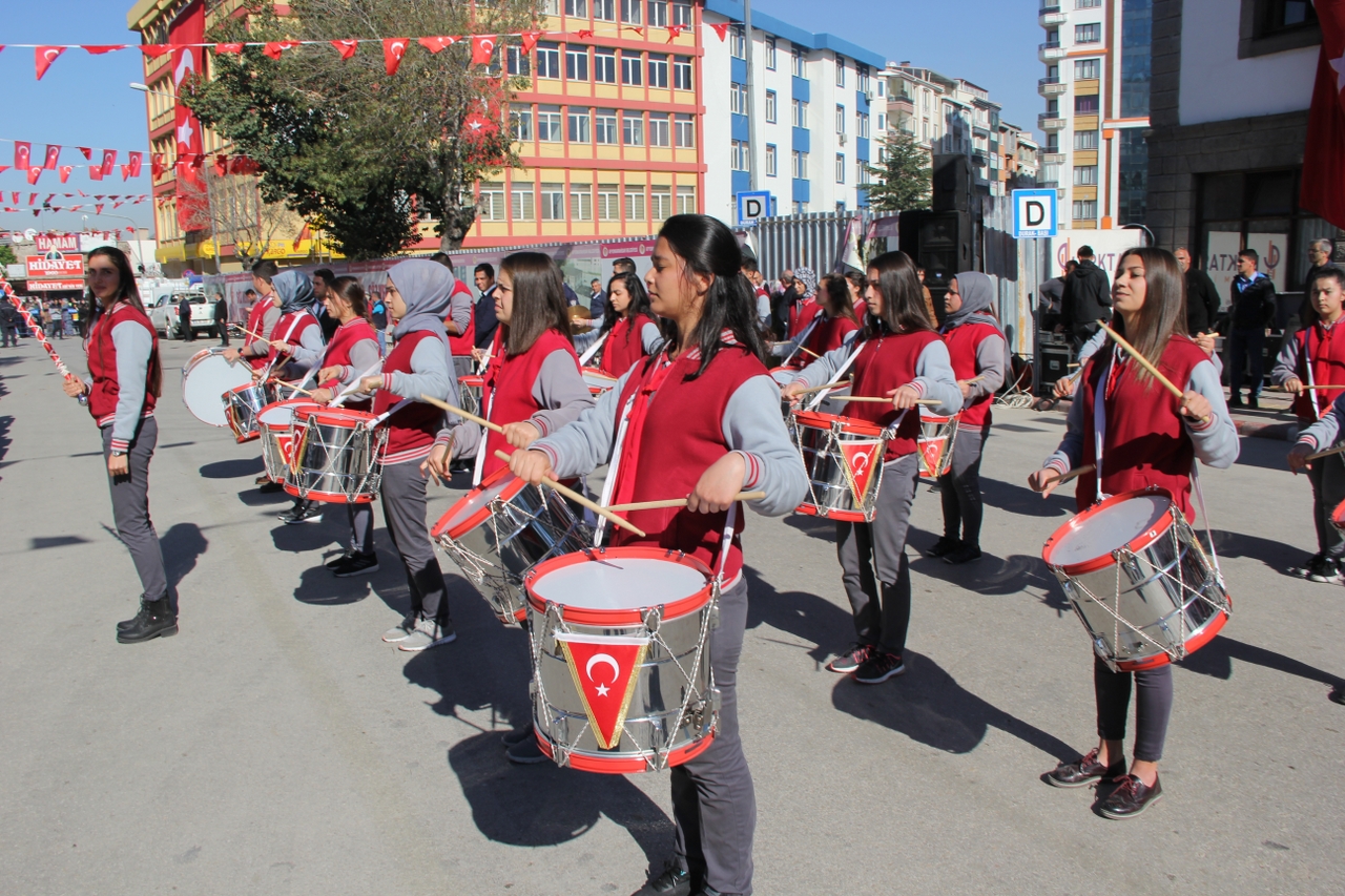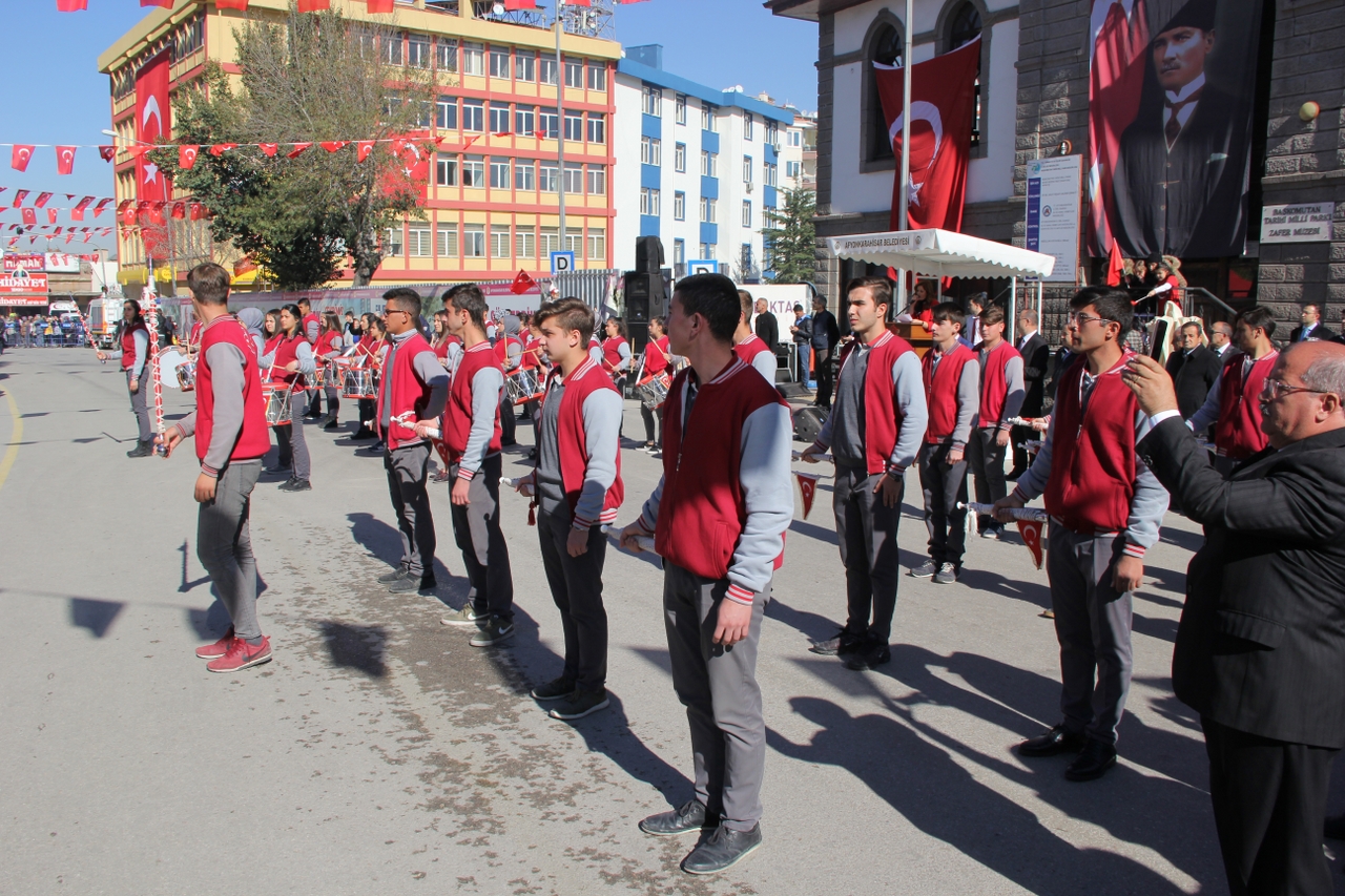 Anıtpark’ta düzenlenen 29 Ekim Cumhuriyet Bayramı törenlerine Afyon OSB Rahmiye Sare Palalı Teknik Kolejimizin Bando Takımı’da katıldı. Bando takımımızın gerçekleştirdiği gösteri vatandaşlardan büyük ilgi gördü. Kutlamanın başlamasıyla kısa sürede bölgeye akın eden vatandaşlar aynı zamanda coşkulu bir şekilde Bando Takımı’na eşlik etti. Milli duyguların yoğun yaşandığı kutlamada vatandaşlar ellerindeki Türk bayraklarıyla güzel görüntüler oluşturdu. Bazı vatandaşların cep telefonları ile kaydettiği Teknik Kolejimizin Bando Takımıyla Ordu Bulvarından Yeşilyol’da bulunan Afyon Batı Kurs Merkezi’nin önüne kadar takip ettiler.