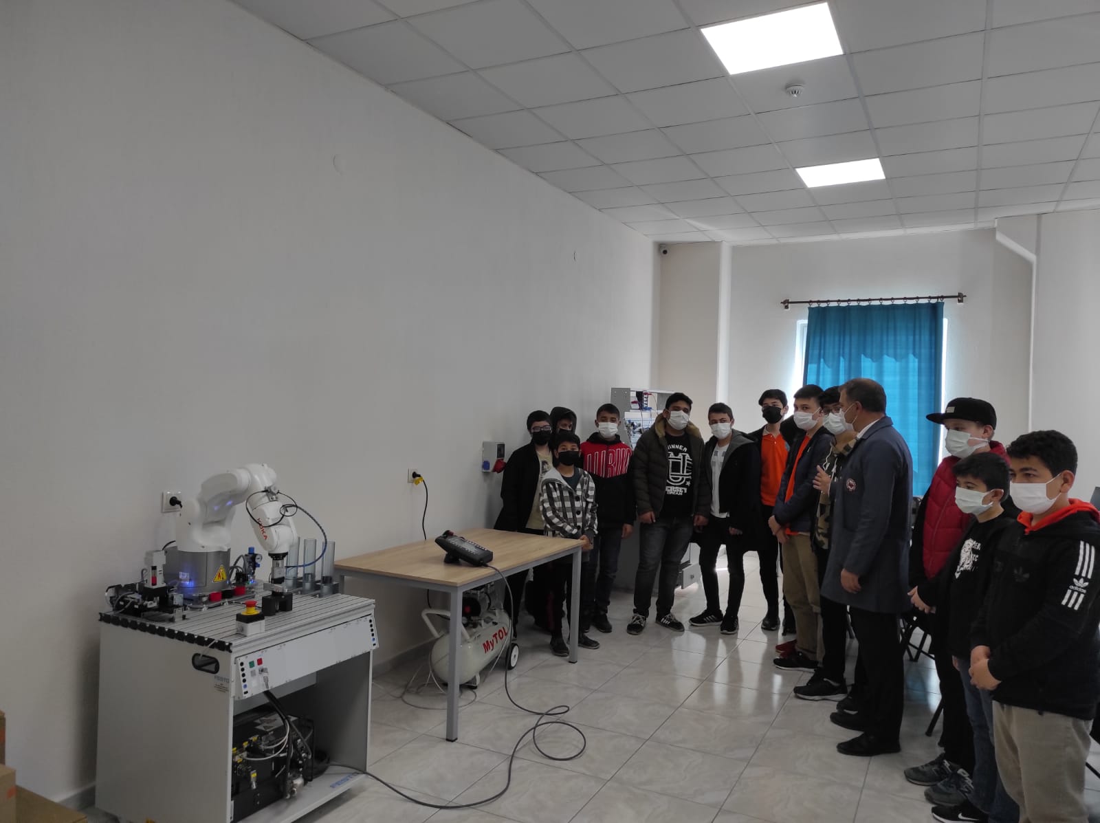 Zafer Kalkınma Ajnası İle Ortaklaşa gerçekleştirdiğimiz Teknik Okul Endüstri 4.0 İle buluşuyor projesi kapsamında atölyemizi kurduk. Endüstri 4.0 uygun bir fabrika gibi çalışan atölyemiz misafirlerini ağırlamaya devam ediyor.