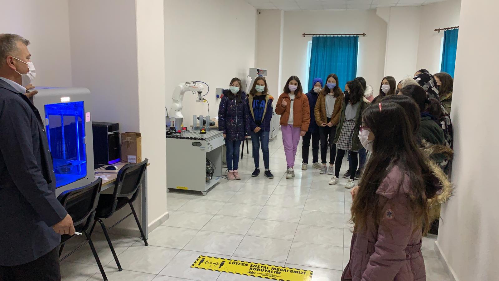 Bu kapsamda ilimizde eğitim veren Sülümenli Ortaokuluna atölyemizi tanıtık ve gezdirdik