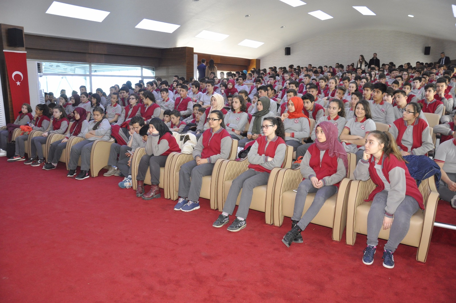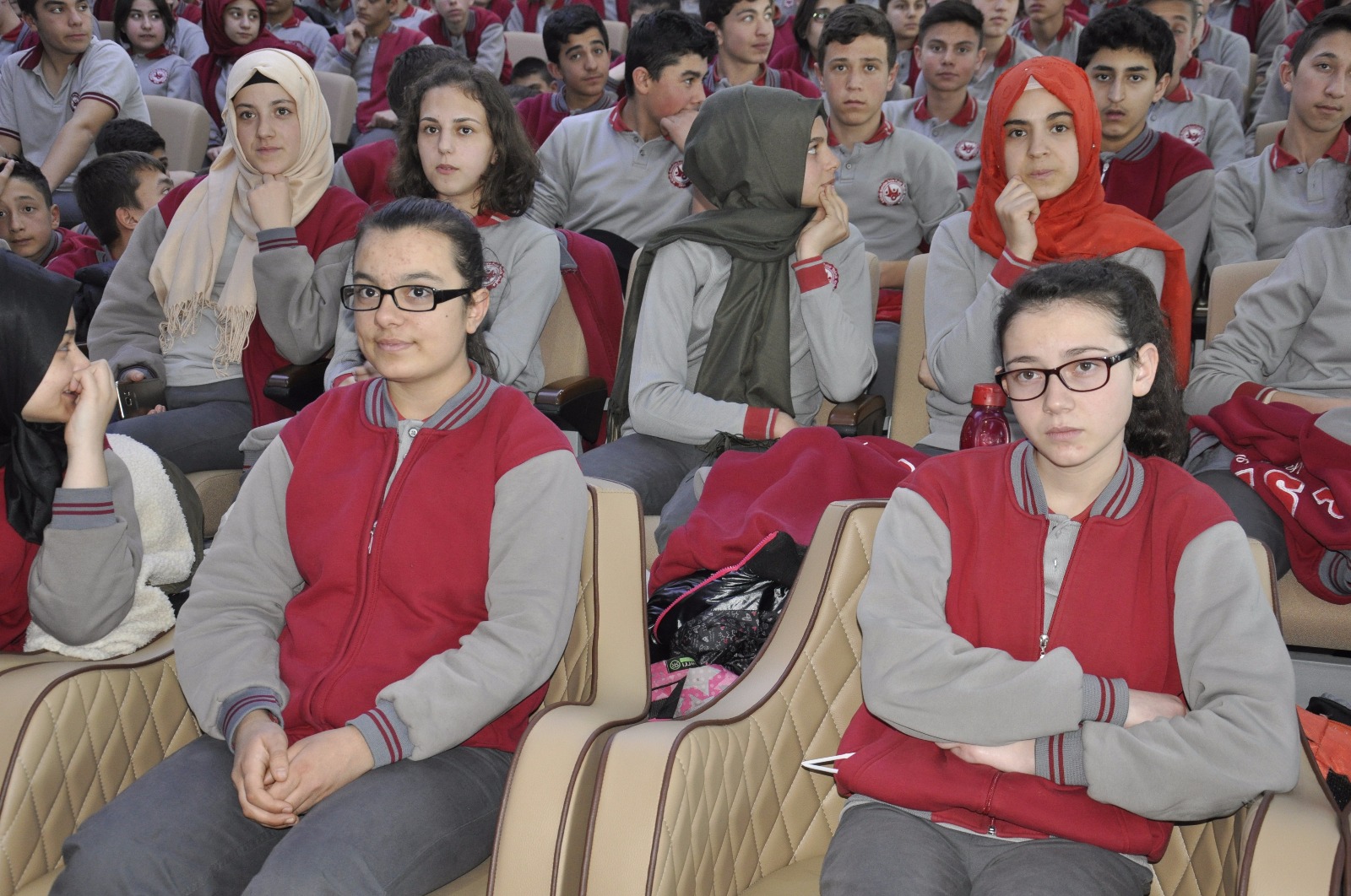 “Öğrenci her zaman kendini geleceğe hazırlamalı” Okul öğretmenlerinin ve çok sayıda öğrencinin katıldığı programda konuşan Okul Müdürü İbrahim Çakal, programa konuşmacı olarak katılan Milli Eğitim Bakanlığı Talim Terbiye Kurulu Daire Başkanı Bekir Şirin’e teşekkür etti. Çakal şunları kaydetti: “Öğrenci şahsını ve ailesini doğru temsil etmeli. Okula ne için geldiğinin farkında olmalı. Öğrenci amaçları doğrultusunda kendini geleceğe hazırlamalı. Öğrenci olarak bizim mutlaka bir hedefimizin olması lazım. Buda ancak disiplinli ve sorumluluk taşıyan bir çalışma sonucu olacaktır.”