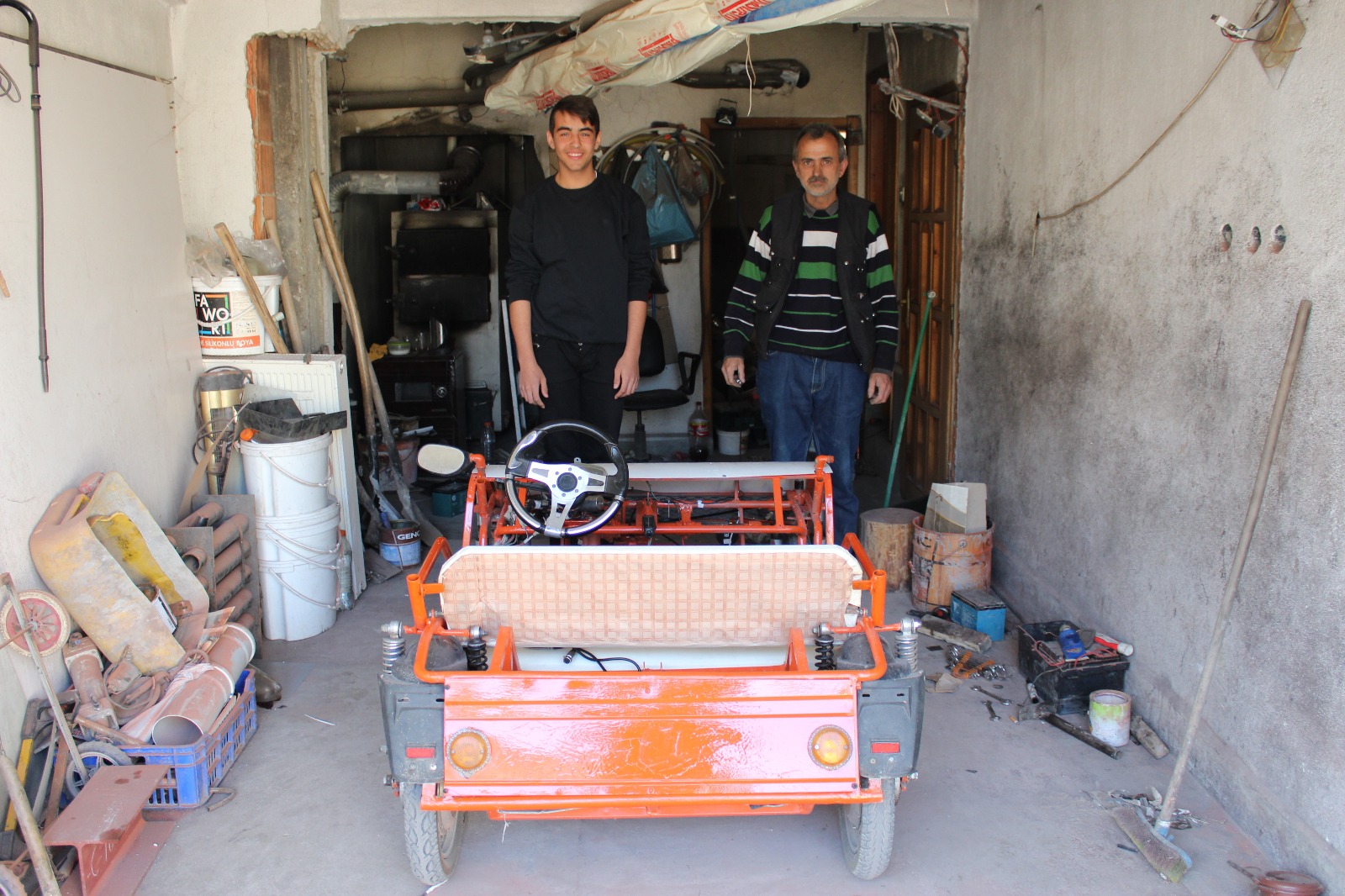 İlimizde yaşayan 16 yaşındaki lise öğrencisi sadece 150 lira harcayarak üç ay gibi bir sürede 80 km mesafe gidebilen bir elektrikli araç yaptı.