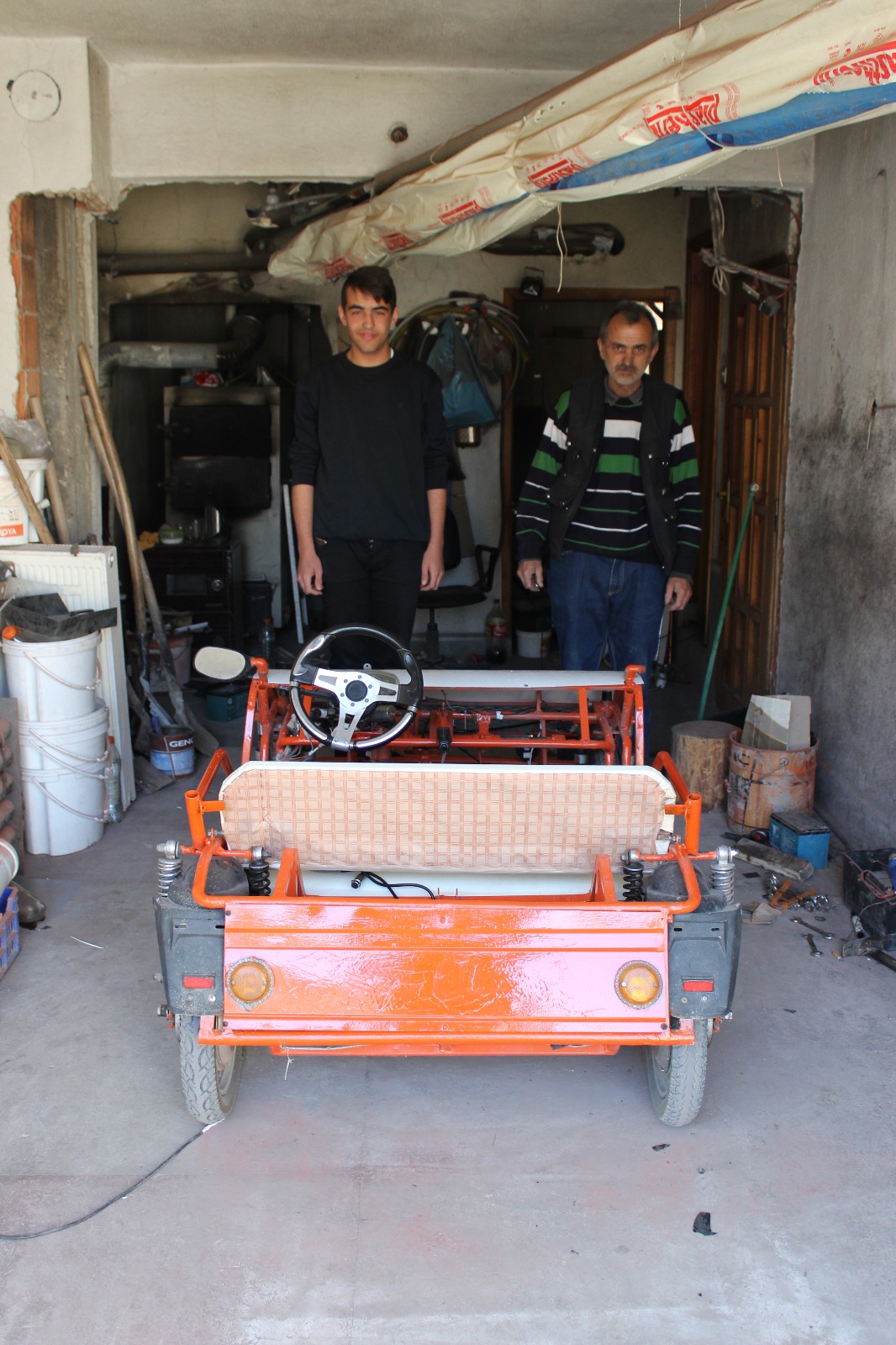 “Babam elektrikli bisiklet tamircisi” diyen Işık, “Burada çıkan hurdalarla onları birleştirdik ve böyle bir araba yaptık. Aracım iki kişiyi çok rahat taşıyor. 80 kilometre mesafeye gidebilen bu araç yaklaşık 40 kilometre de hız yapıyor. 1000 wattlık motor var” şeklinde konuştu.