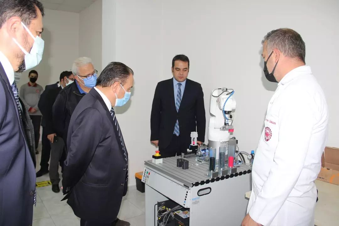 Afyon Kocatepe Üniversitesi (AKÜ) Rektörü Prof. Dr. Mehmet Karakaş ve Zafer Teknopark Genel Müdürü Prof. Dr. Tuğrul Kandemir AOSB Rahmiye Sare Palalı Teknik Okullarını ziyaret etti. Karakaş, son teknoloji atölyeleri de inceleyerek bilgiler aldı.