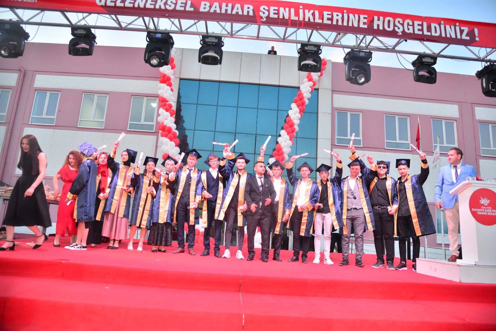 Mezuniyet töreninde 4 yıllık eğitimin sonunda okulu birincilikle tamamlayan Büşra Özçelik’e plaketi takdim edildi. Mezun olan öğrenciler için diploma takdim töreni gerçekleştirildi. Öğrenciler diplomalarını almak için sahnedeki yerlerini alırken veliler ise en az çocukları kadar heyecanlıydı. Öğrenciler sahneye davet edildiği sırada havai fişekler de mezuniyet coşkusuna renk katarak öğrenciler için gökyüzünde şenliğin bir parçası oldu. 2022-2023 eğitim öğretim yılında mezuniyet hak eden 390 öğrenci diplomalarını alarak mezun oldu.