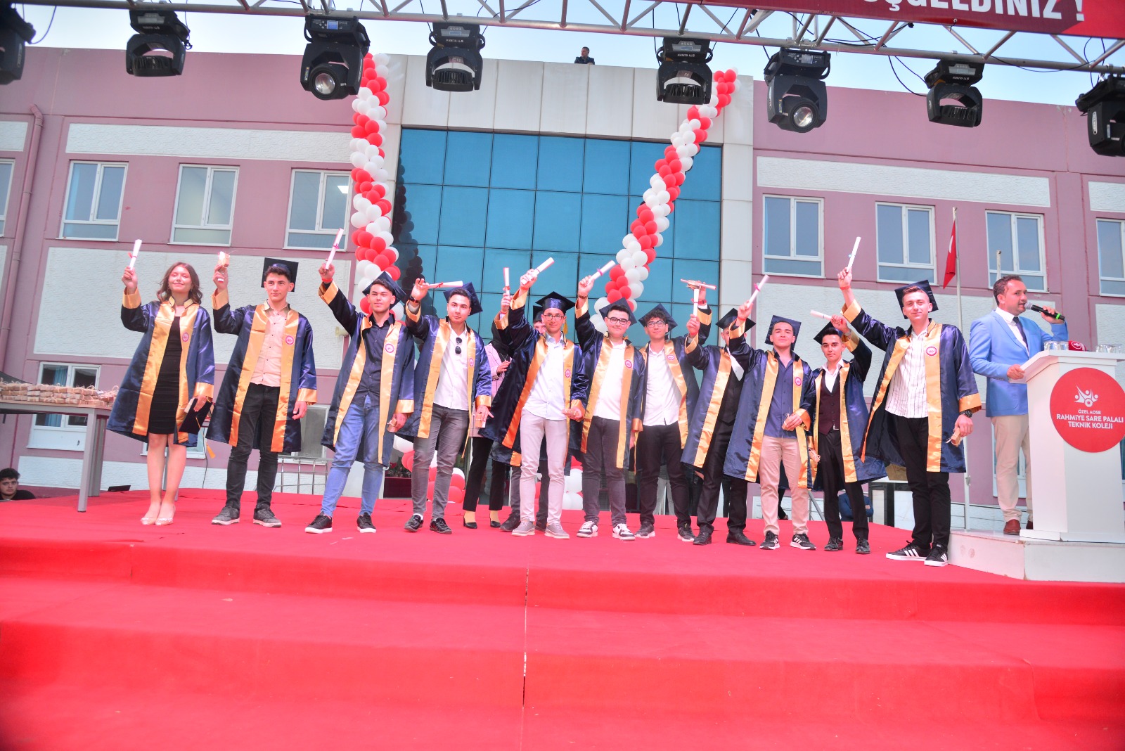 Özel AOSB Rahmiye Sare Palalı Teknik Koleji mezun olan 395 öğrencisi için unutulmaz bir mezuniyet töreni düzenledi.