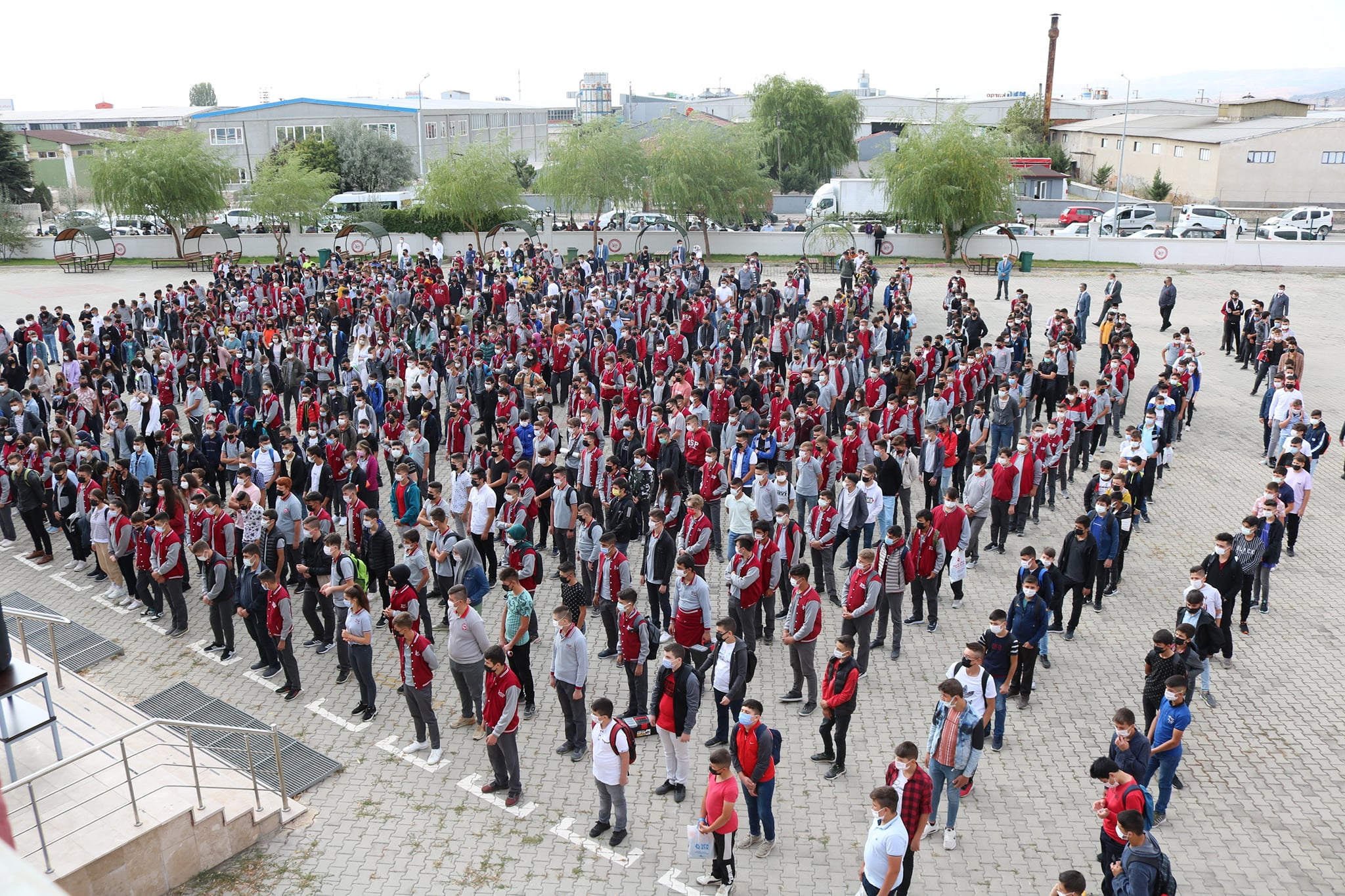 Tören de konuşan Okul Müdürü İbrahim ÇAKAL; 1,5 yıldır pandemi nedeni ile siz öğrencilerimiz okuldan bizde siz öğrencilerimizden uzakta kaldık. Aşının da katkıları ile pandemi süreci bitmek üzere ve bizde eğitim öğretime tekrar başlayabildik. Bu yıl 9.sınıflarda da kayıtlarımız doldu. Bize güvenen ve inanan herkese çok teşekkür ederiz. 9.sınıflara aldığımız yeni 420 öğrenci ile birlikte 1718 öğrencilik koca bir çınara dönüştük. 2021 yılında mezun olan öğrencilerimiz Marmara Üniversitesi, Yıldız Teknik Üniversitesi, Busa Uludağ Üniversiitesi gibi Türkiye’nin önde gelen üniversitelerinin çok iyi bölümlerini kazandılar. bu sene 12.sınıf olan öğrencilerimizden de aynı başarıları beklemekteyiz. “dedi