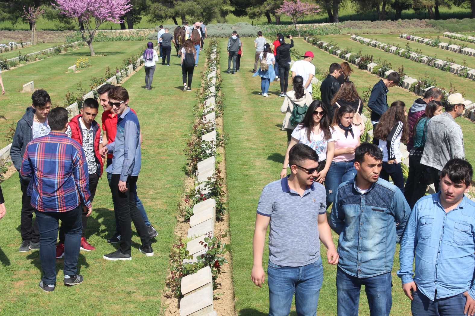 “Gezi rehberimiz Coşkun Dinçer’in muhteşem anlatımı ile 103 yıl önce yaşanan savaşın tekrar gözlerimizin önünde canlanması neden oldu. İkinci durağımız Şahindere Sargı Yeri Şehitliği oldu. Şehitlikte bazı tümenlere mensup ve bu hastanede şehit olmuş askerlerin baş taşları bulunuyor. Alt kısmında 25 şehidin bulunduğu alanda öğrencilerimizle dua ettikten sonra üçüncü durağımız Alçıtepe’de Sahra Hastane Müzesi oldu. Dünyanın en kanlı savaşının yaşandığı Gelibolu Yarımadasında savaş devam ederken hastanelerin o dönem ki anları Alçıtepe’de yapılan açık hava müzesiyle birebir yaşatılıyor. O dönemki hastane şartlarını bal mumu heykelleri ile duygusal anlar yaşadık. Daha sonra Çanakkale Şehitler Abidesi’ni ziyaret ettik. Burada öğrencilerimizle 40 metre yükseklikte ki tarihi anıtın önünde toplu fotoğraf çekindik. Alan rehberimiz Coşkun Dinçer beyle, İngiliz mezarlığı olarak da bilinen Lala Baba mezarlığında çoğunun Anzak askerlerine ait 163 kişinin öldüğü mezarlığını da görme imkânına sahip olduk. Ziyaretimiz sırasıyla Anzak Koyu, Anafartalar, Conkbayırı ve Atatürk Anıtı oldu. Öğrencilerimize tarihi yaşatan, onları duygulandıran bu eşsiz mekânların sonrasında gezimiz Truva Atı ve şehir merkezinde ki Aynalı Çarşı oldu.”