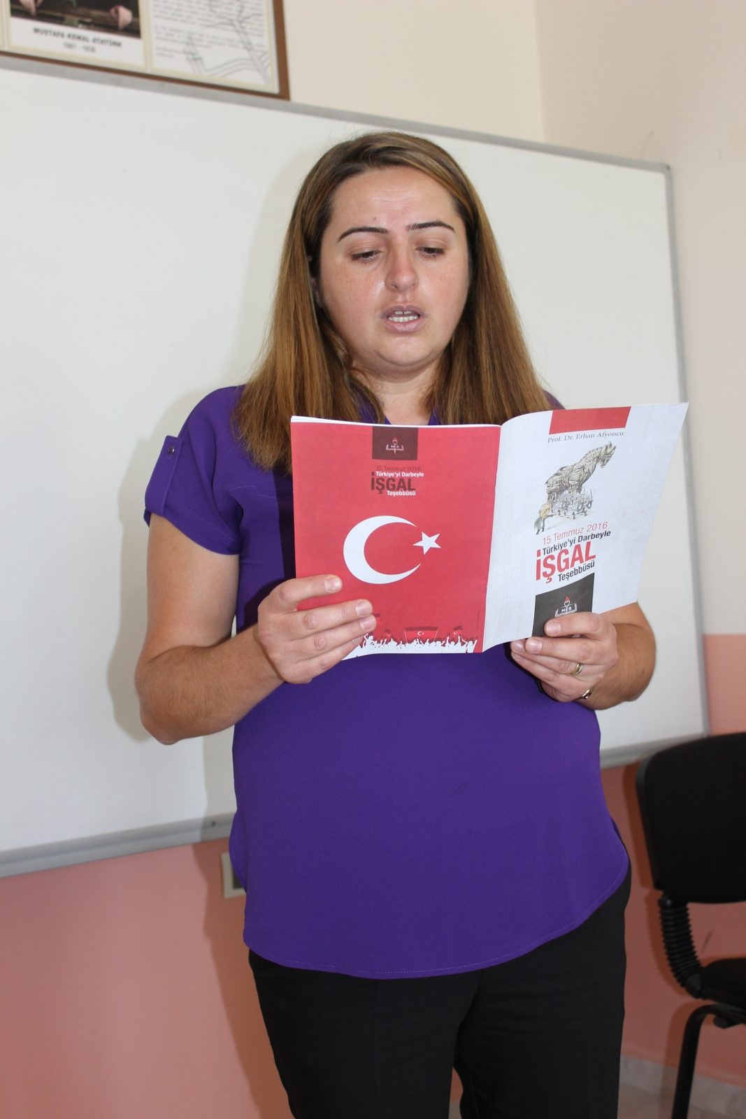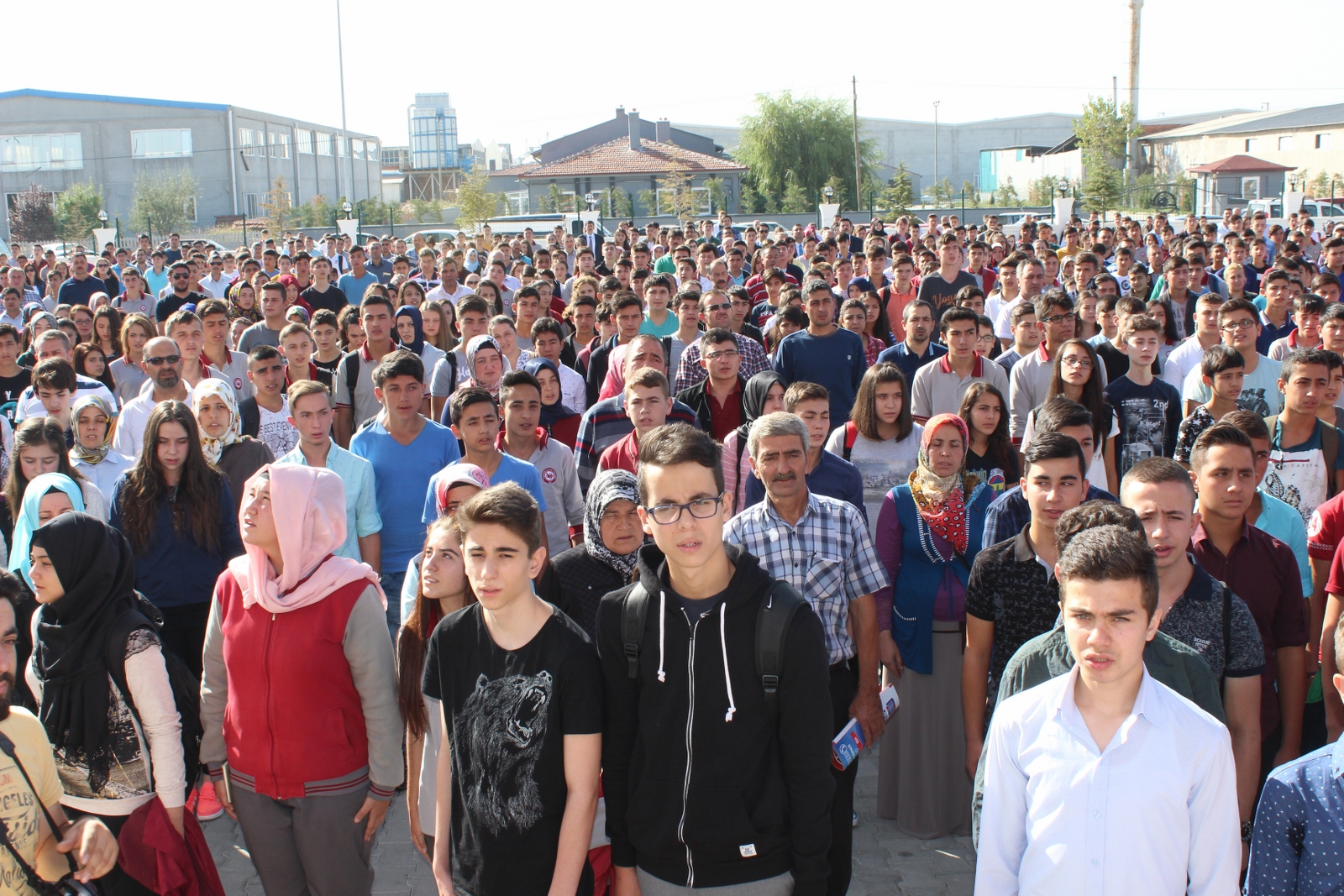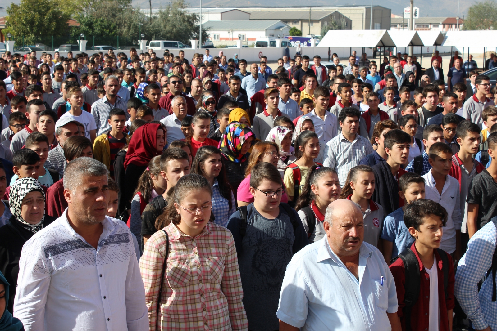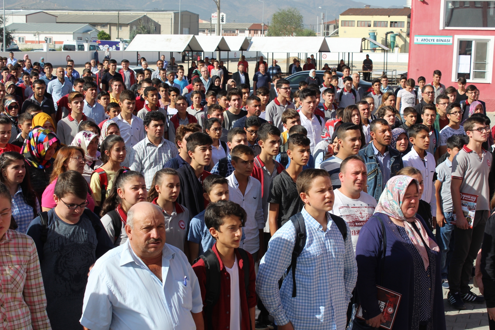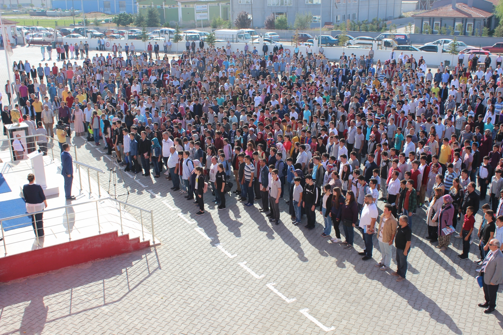 Daha sonra konuşan Okul Müdürü İbrahim Çakal, Türkiye genelinde 17 milyon 589 bin öğrencinin eğitim öğretime başladığını söyledi. Bununla beraber 994 bin öğretmenin görev alacağını kaydeden Çakal: “Ülkemiz ve milletimizin bölünmez bütünlüğüne, bağımsızlığına kast eden iç ve dış düşmanları 15 Temmuz darbe girişimini şiddetle ve nefretle kınıyoruz. Bu uğurda canlarını veren şehitlerimizi rahmet ve minnetle anıyoruz. Bu öğretim yılında yapımı tamamlanan atölyeler ve derslik binasıyla okulumuzda 9-10-11’inci sınıflar olmak üzere bu sınıflarda bin 200 öğrenciye 65 öğretmenimiz eğitim, öğretim faaliyeti gerçekleştirecektir” ifadelerini kullandı.