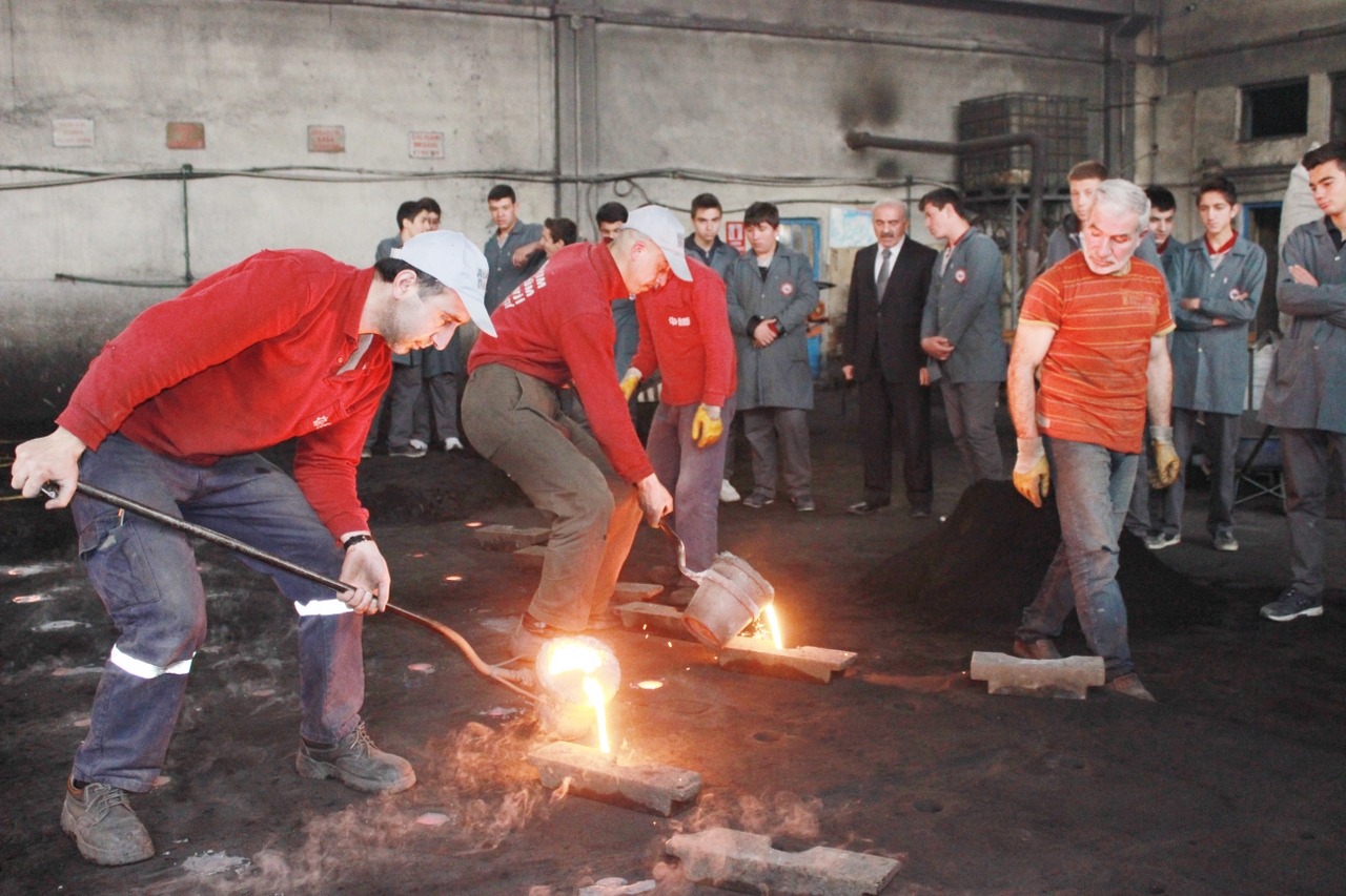Üretimin bütün aşamalarını yerinde ilgiyle izleyen öğrenciler, 1300 santigrat derecede ısıtılıp, su gibi akışkan hale getirilen hurda malzemelerin yeniden şekillenmesine tanık oldu. Teknik gezide öğrencilere ayrıca işletmenin yetkilileri tarafından mesleki ve teknik konular hakkında bilgiler verildi. Sanayi sektöründe, özellikle teknik alanda kendini yetiştirmiş eleman sıkıntısı yaşadıklarını belirten Alaşım Döküm Sanayi yetkilileri, mesleki alanda kendini geliştirmiş meslek lisesi mezunlarına her zaman kapılarının açık olduğunu ifade ederek, öğrencileri yanlarında meslektaş olarak görmekten mutluluk duyacaklarını belirtti.