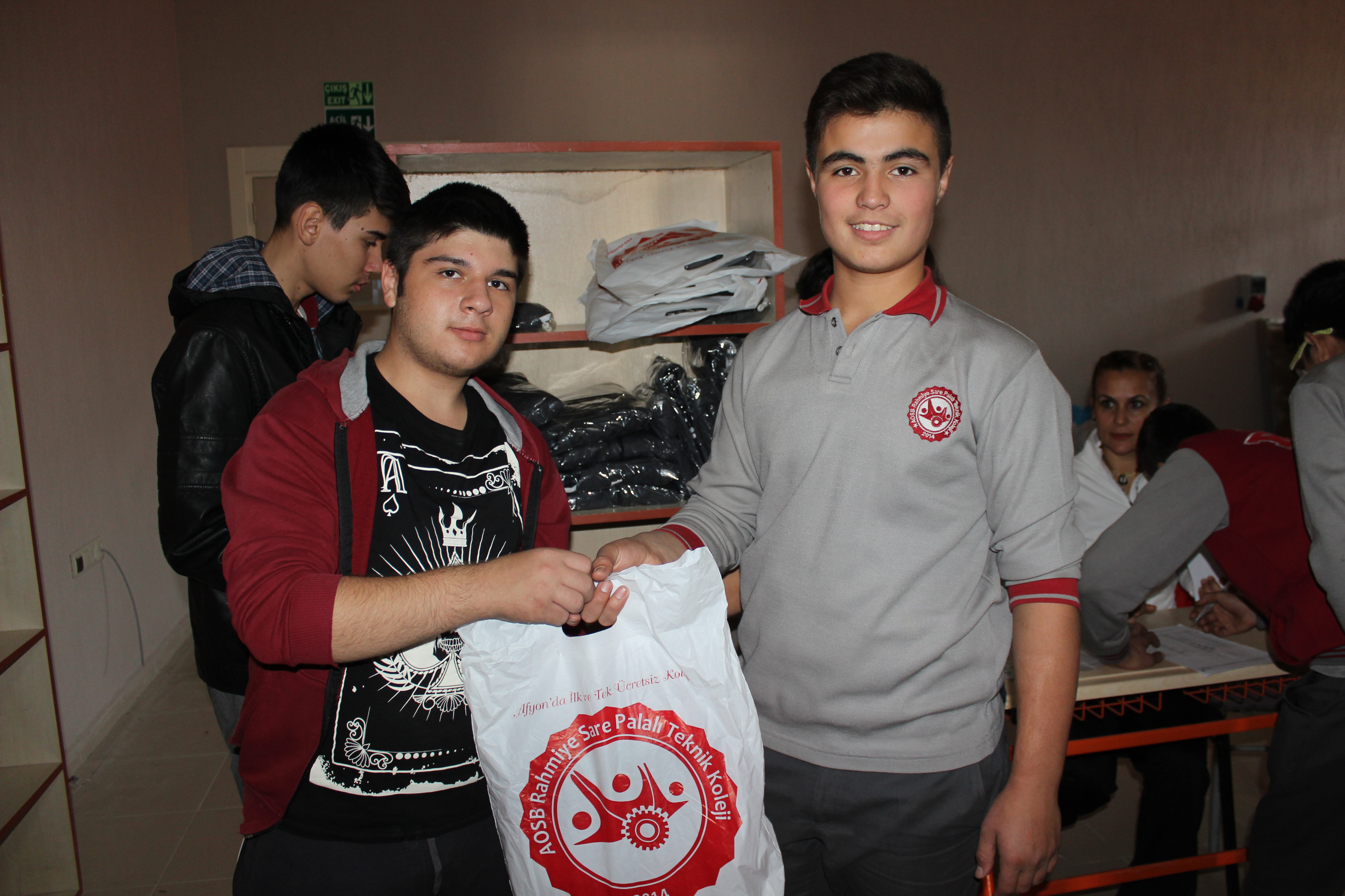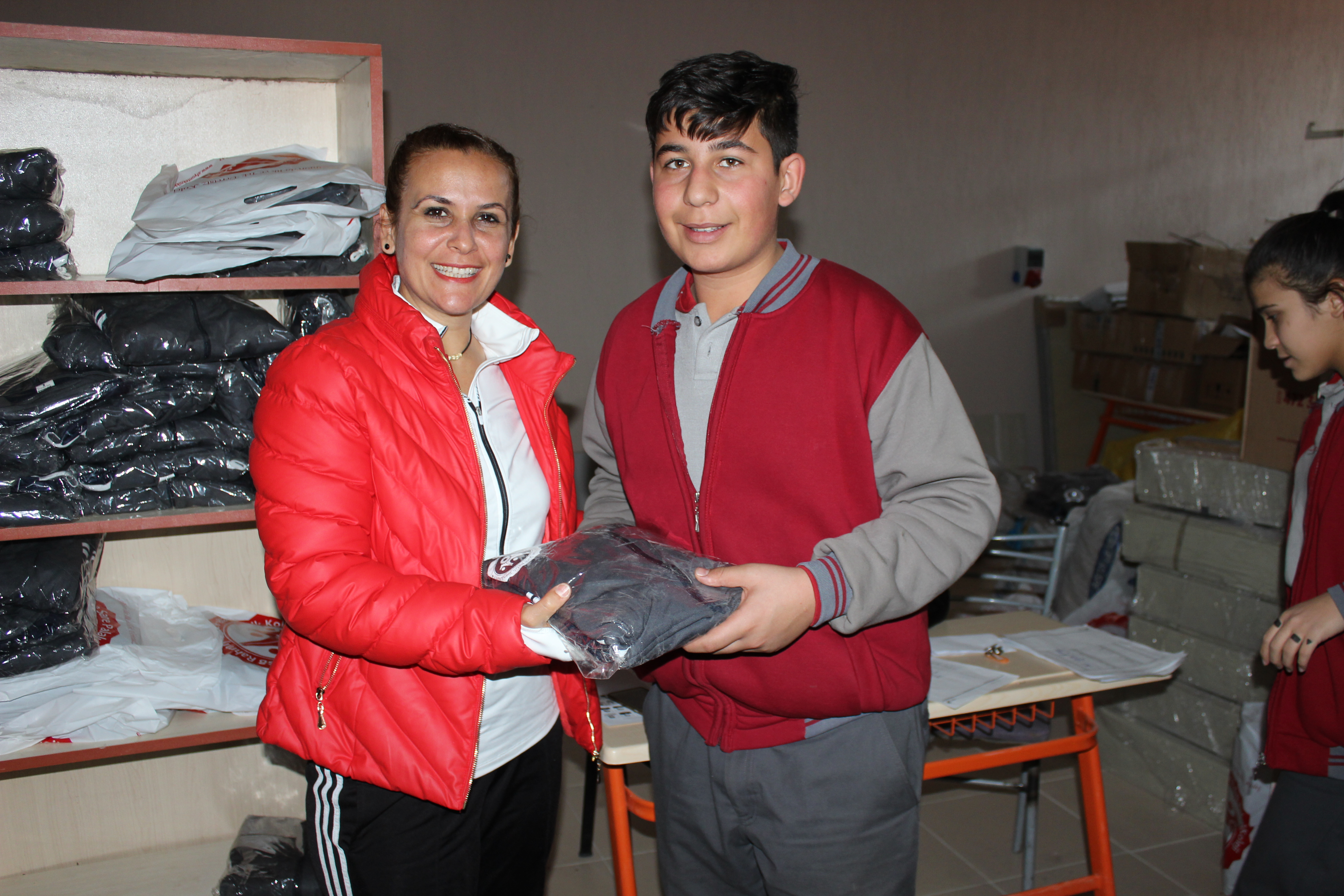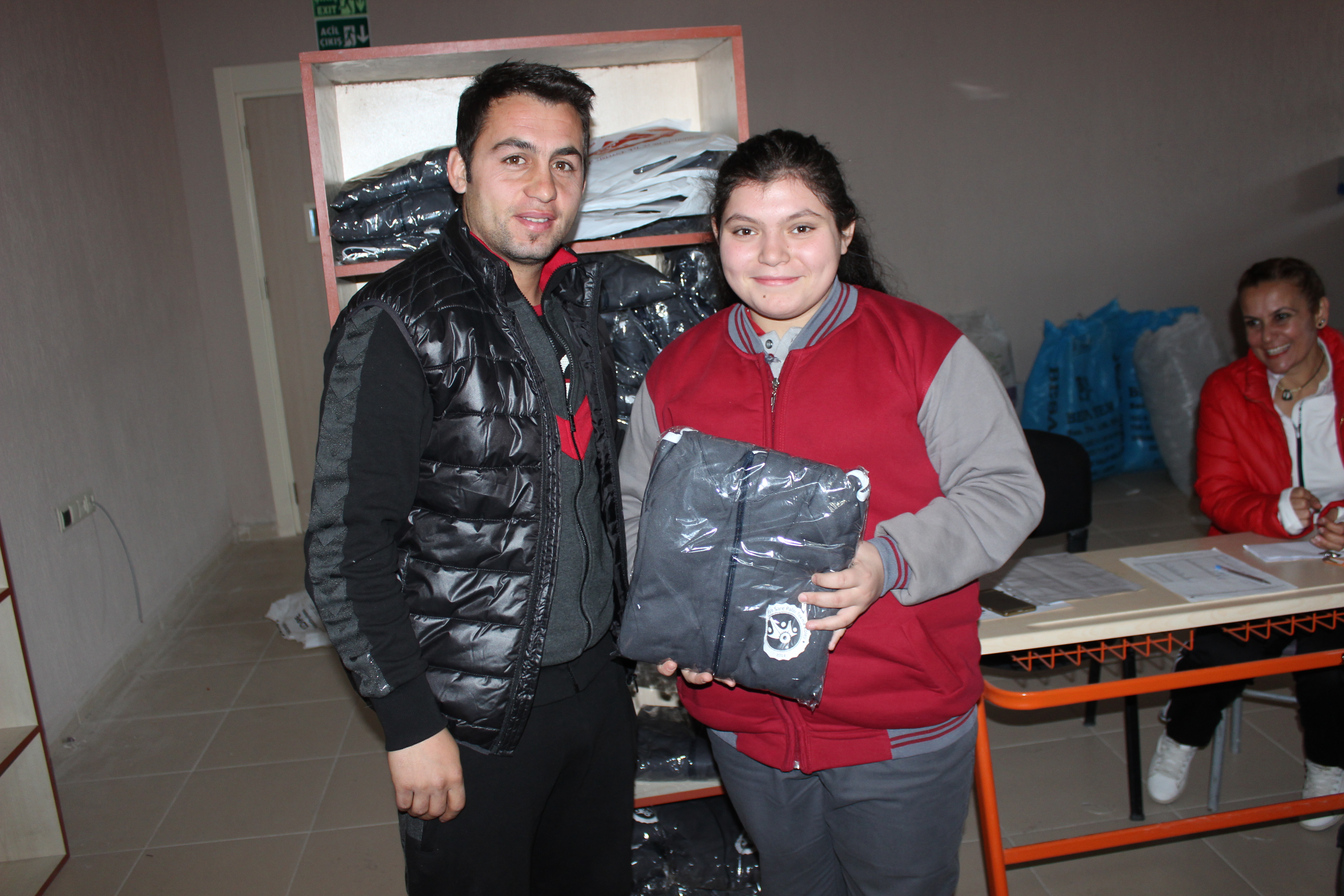 Beden Eğitimi öğretmenlerinin öğrencilere dağıttığı eşofmanlar öğrenciler tarafından büyük mutluluk ile alındı.