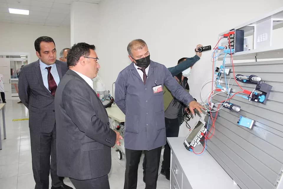 AFYONKARAHİSAR(İHA)-Afyonkarahisar’ın Organize Sanayi Bölgesi’nde eğitim veren ilk, Türkiye’nin ise Alan bazında en büyük teknik lisesi Rahmiye Sare Palalı Mesleki ve Teknik Anadolu Lisesi’ni gezen Vali gökmen Çiçek, burada atölyeleri inceleyerek yetkililerden bilgi aldı. Vali Çiçek, bu okulda gelecekte Türk sanayisine katkı sunacak öğrenciler yetiştirildiğini kaydetti.