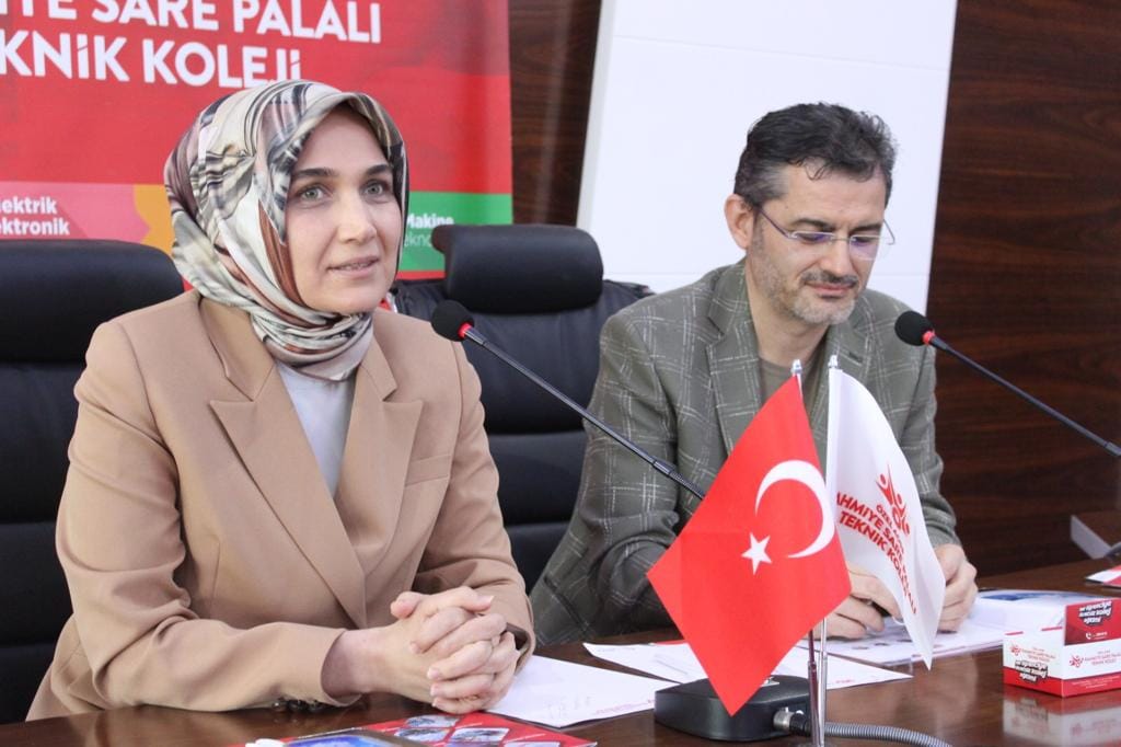 Samimi bir ortamda gerçekleşen söyleşide Vali Yiğitbaşı gençlere tam donamlı bir teknik kolejde okumanın büyük bir şans olduğunu söyledi. Vali Yiğitbaşı : “Çok yerde programa katılıyoruz, çok yerde konuşma yapıyoruz ama bugün bu salona girince üniversitede öğretim üyeliği yaptığım eski günlerimi tekrardan hatırladım. Gençlerle sohbet ve iletişim halinde olduğumuz yıllar aklıma geldi. Bana tekrar gençlerle bir arada olmanın önemini hissettirdiğiniz için sizlere çok teşekkür ediyorum, iyi ki geldiniz iyi ki buradasınız hepiniz. Bu söyleyişe özellikle eşimle birlikte katılmak istedim çünkü gençlere birlikte edindiğimiz tecrübeleri aktarmak istiyoruz. Ben Ankara doğumluyum, babamın mesleği dolayısıyla birçok yerde bulunduk. Babam Mülki İdare Amiri yani kaymakamdı. Belirli bir görev süresini doldurduktan sonra Türkiye’nin pek çok yerinde bulunduk. Ankara’da bende sizler gibi meslek lisesi mezunuyum. İmam Hatip Lisesi’nden mezun oldum. O zamanlarda bu tercihimi ben kendim yapmıştım. O dönemlerimde başarılı bir öğrenciydim. İnsanlarla sürekli iletişim halinde olduğum, masa başı bir iş istemediğimi biliyordum. Sizin okulunuzda da idealist öğretmenlerinizin olduğunu görüyorum. Bugün atölyelerinizi gezerken de bu durumu fark ettim. Bu yönden de çok şanslı olduğunuzu söyleyebilirim.” Dedi.