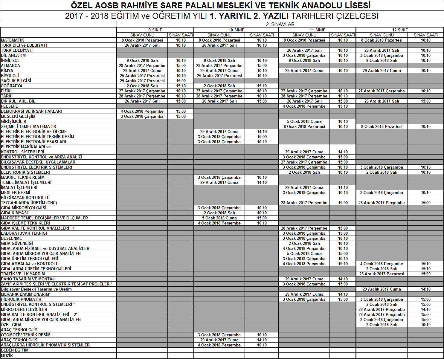*YENİ* 2017 – 2018 Yılı 1. Dönem 2.Yazılı Tarihleri Açıklandı