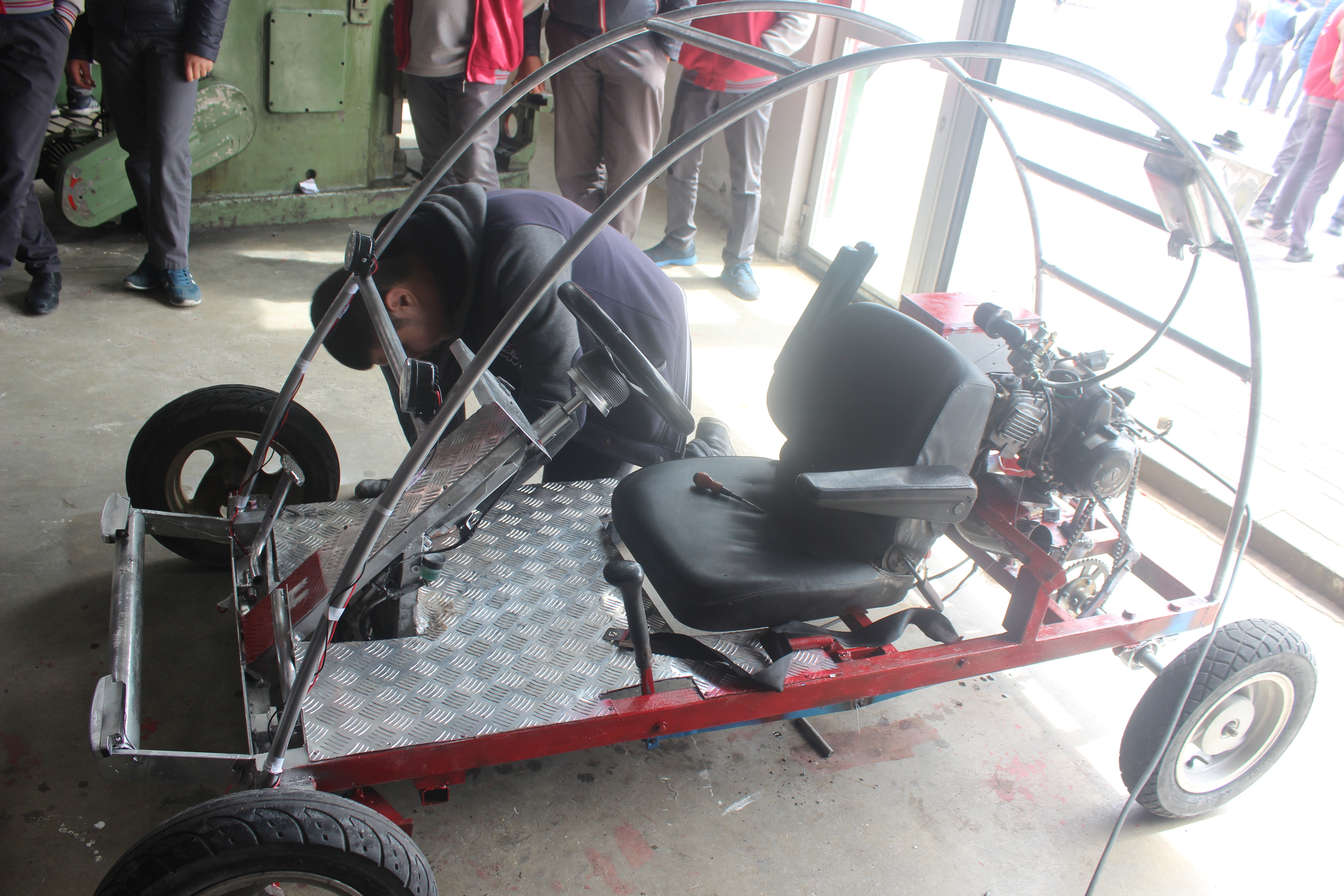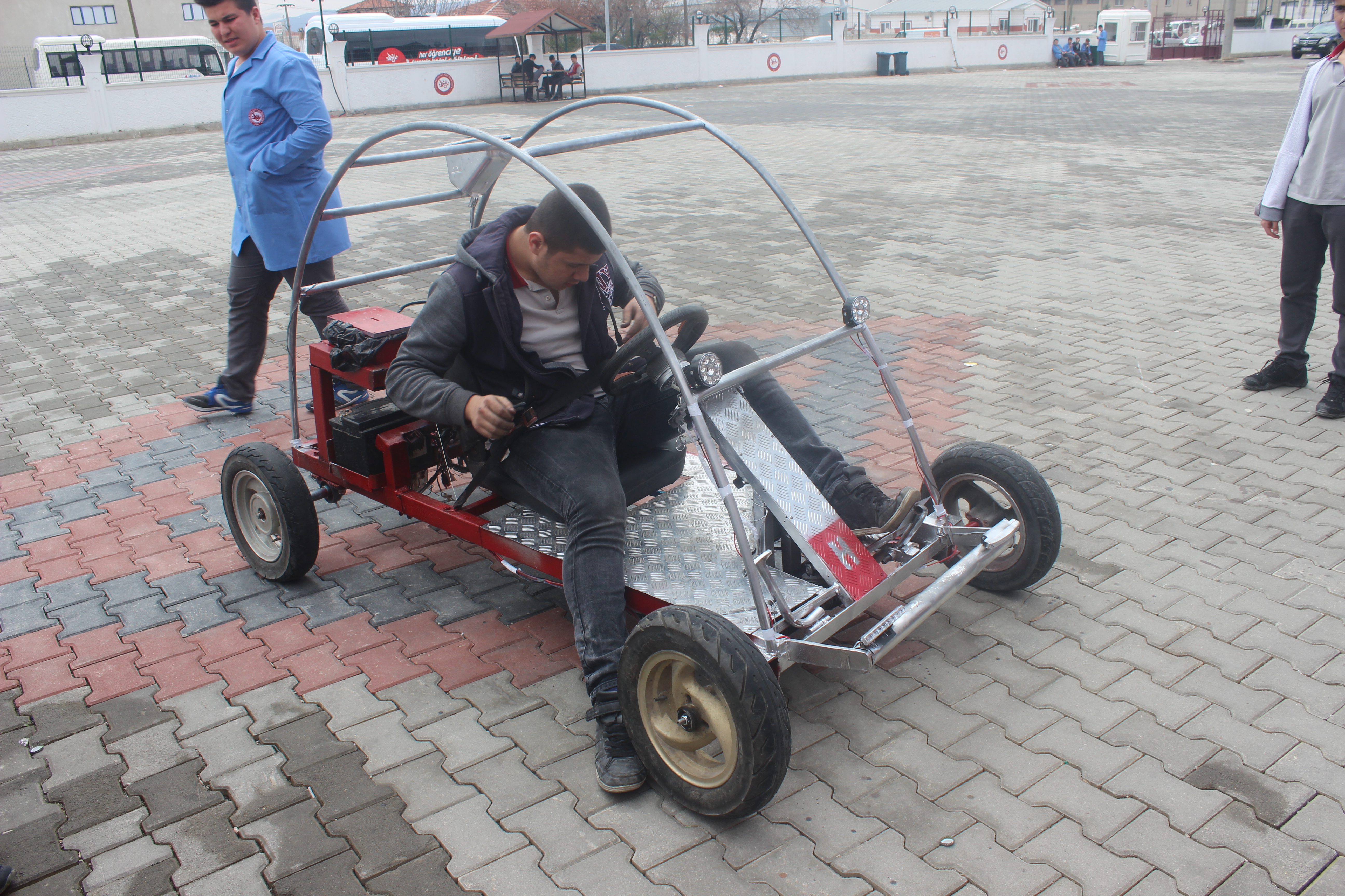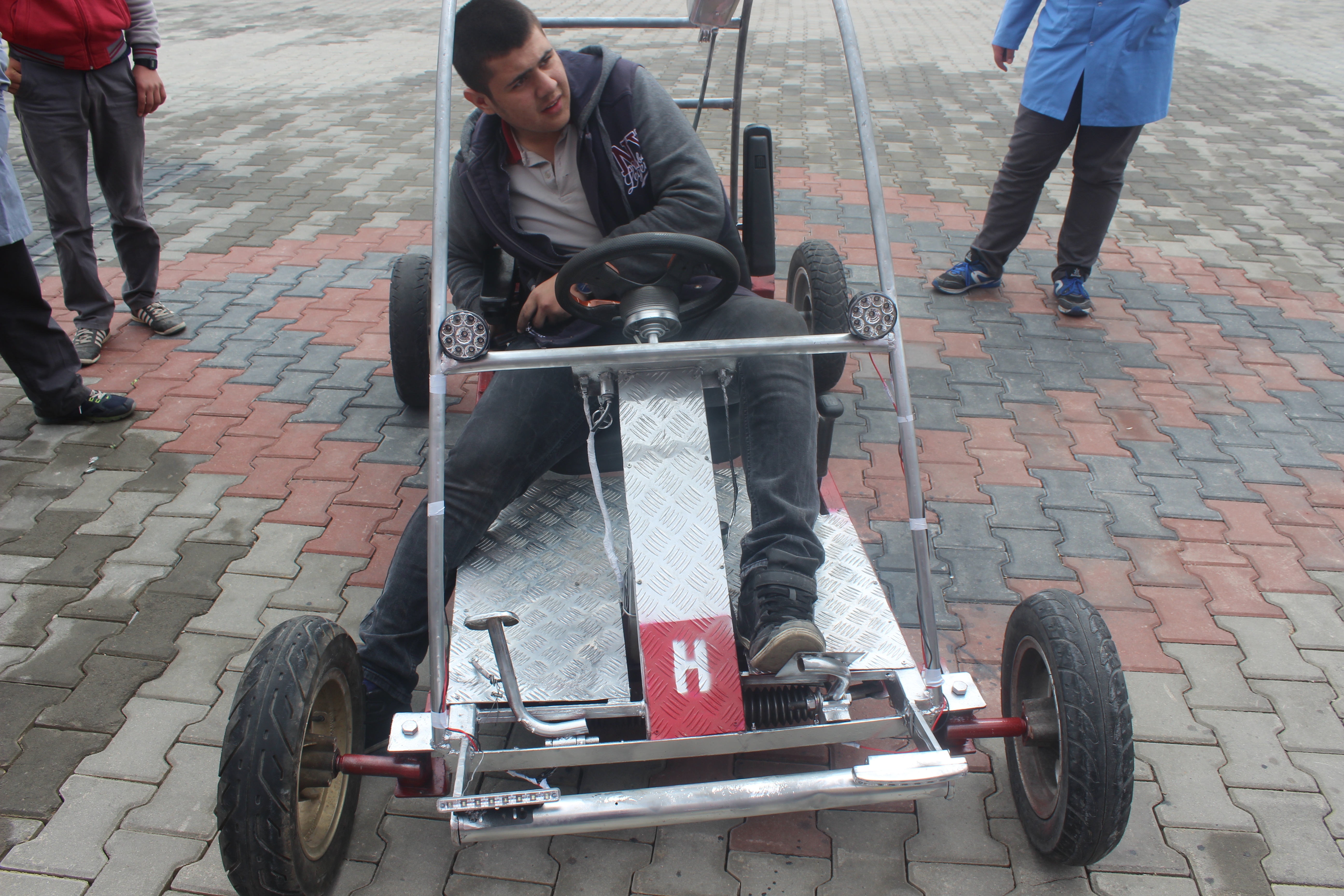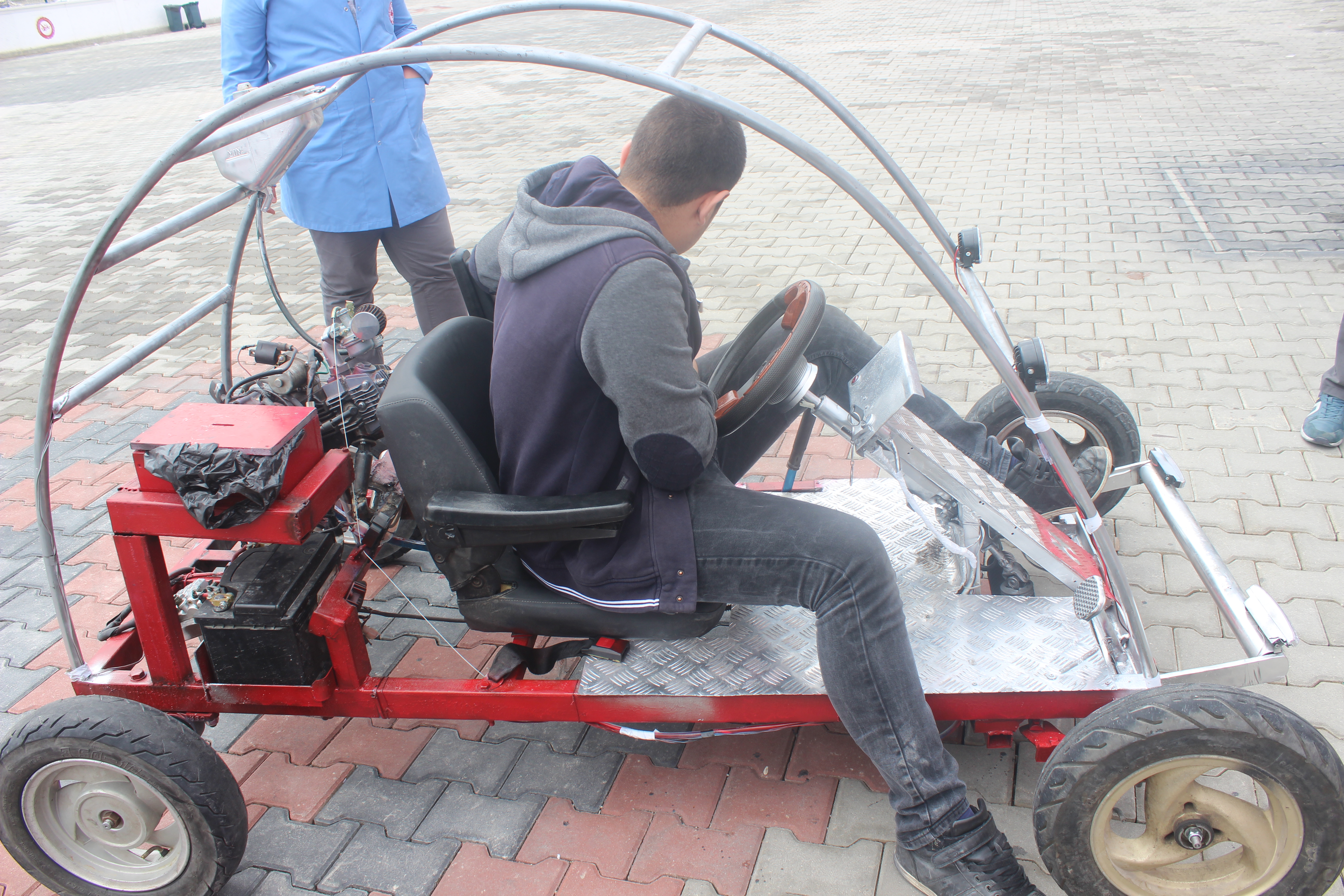 150 TL'ye ürettiği elektrikli araba ile ulusal basına ve TRT Habere konu olan öğrencimiz Mikail IŞIK'tan sonra öğrencimiz Hüseyin KARADENİZ'de yaptığı benzinli go - kort aracı ile beğeni topladı.