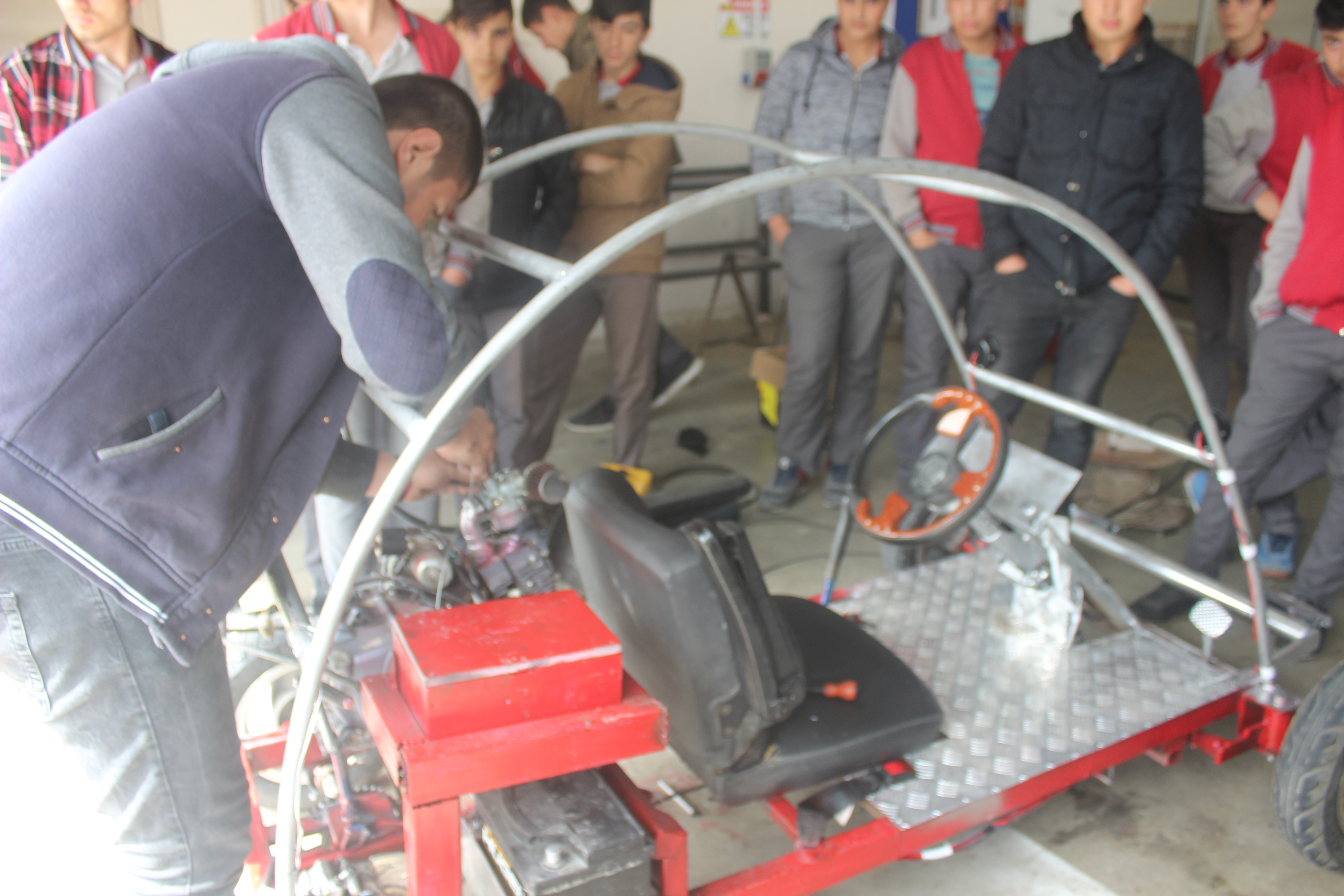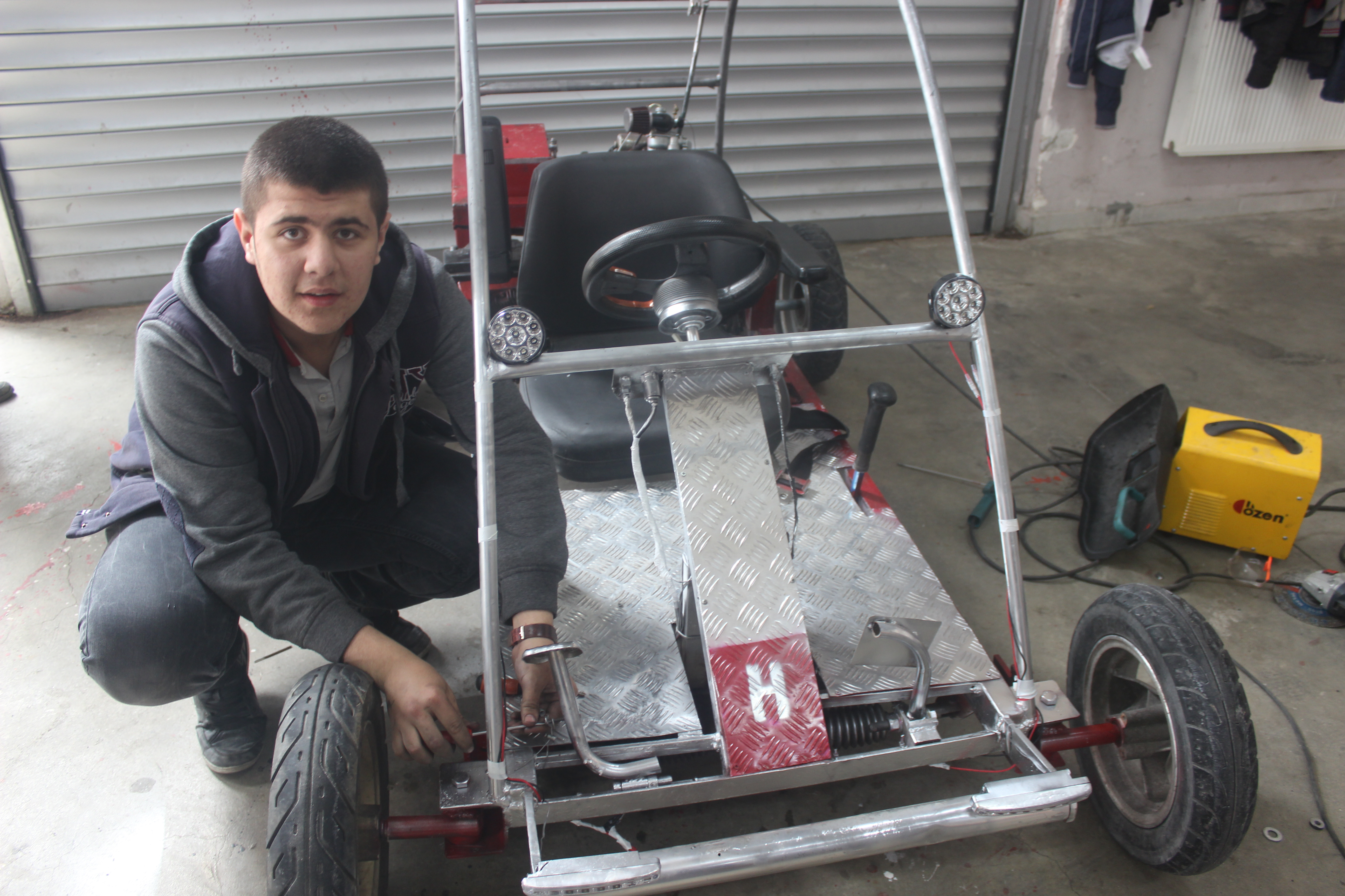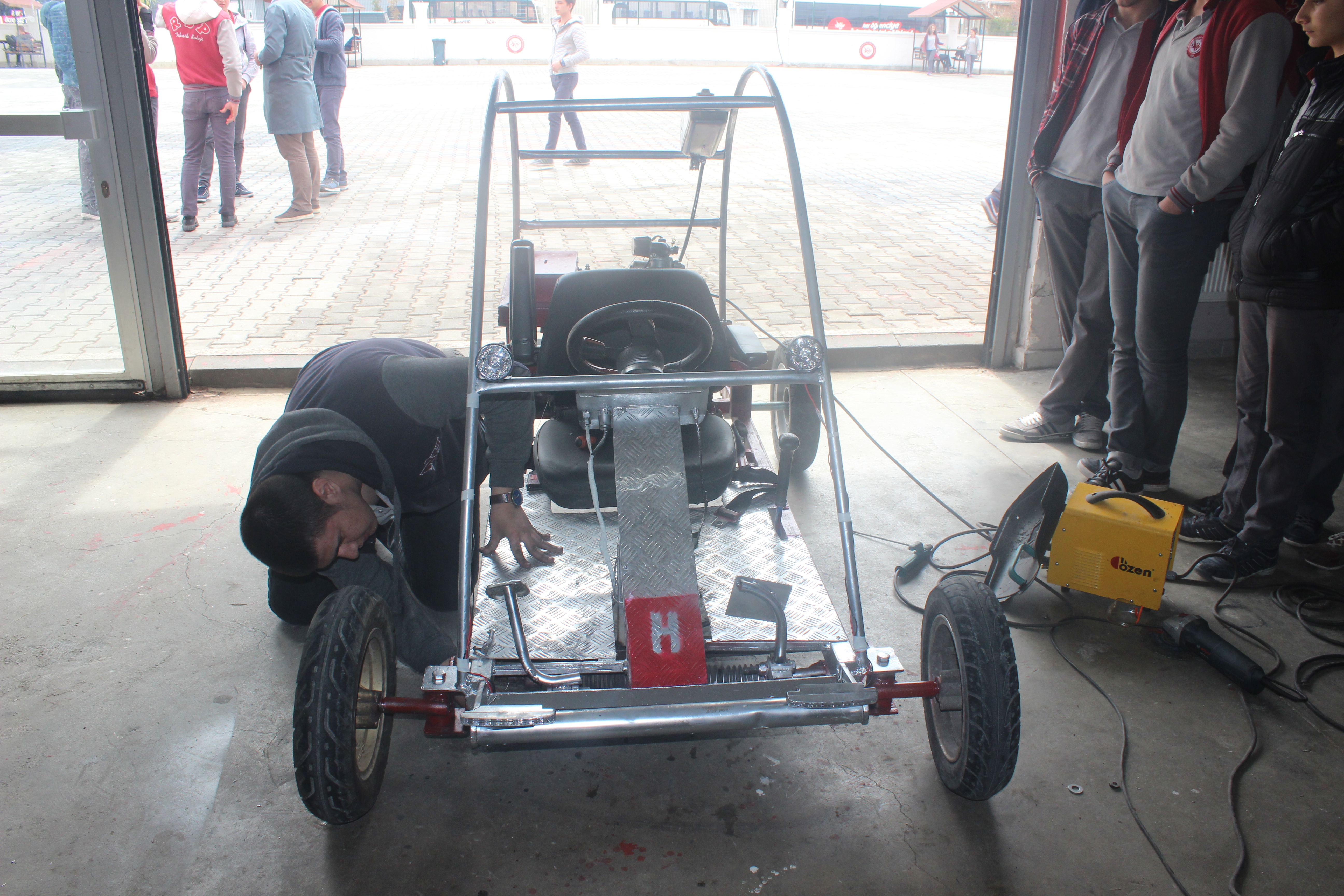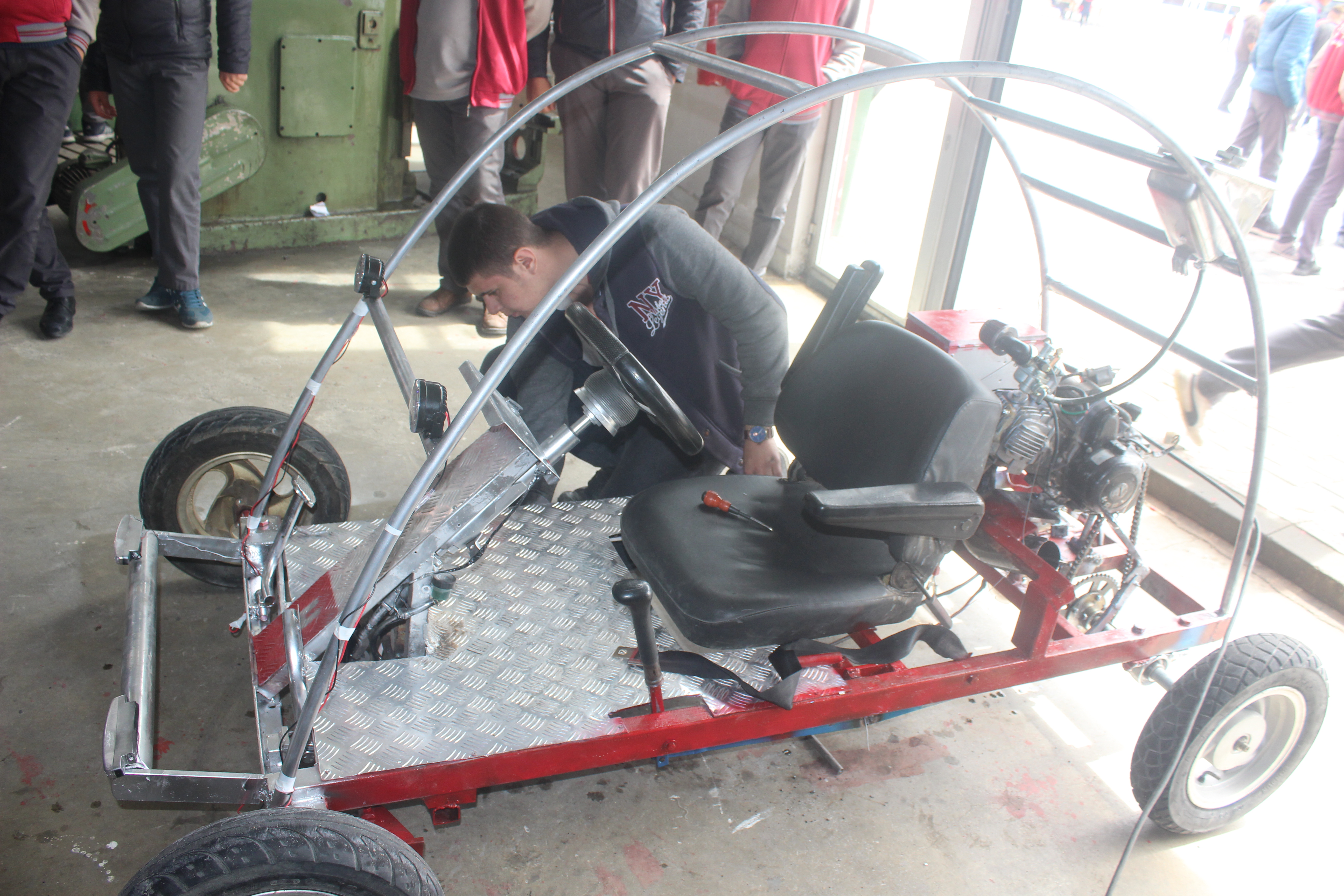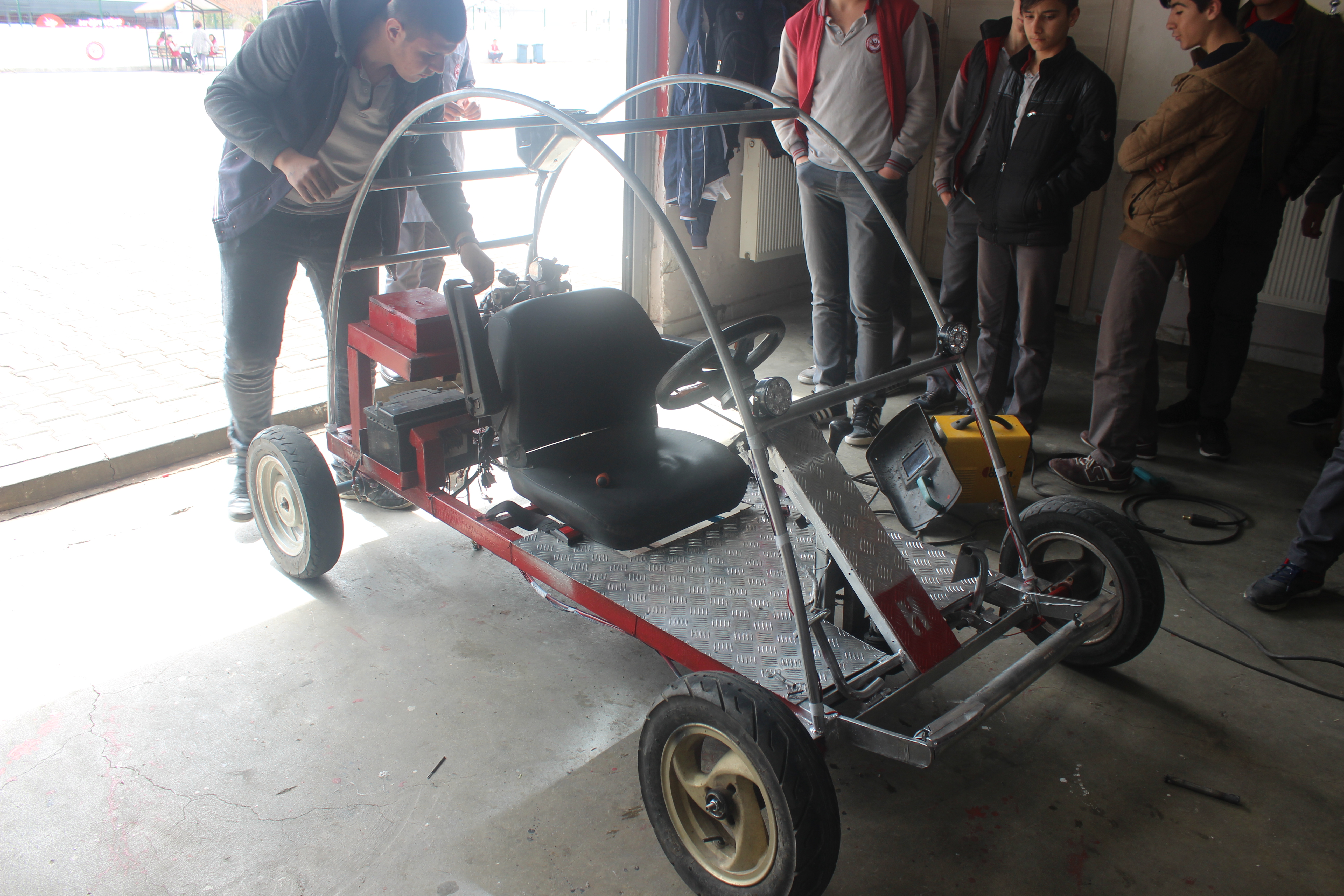 150 TL'ye ürettiği elektrikli araba ile ulusal basına ve TRT Habere konu olan öğrencimiz Mikail IŞIK'tan sonra öğrencimiz Hüseyin KARADENİZ'de yaptığı benzinli go - kort aracı ile beğeni topladı.